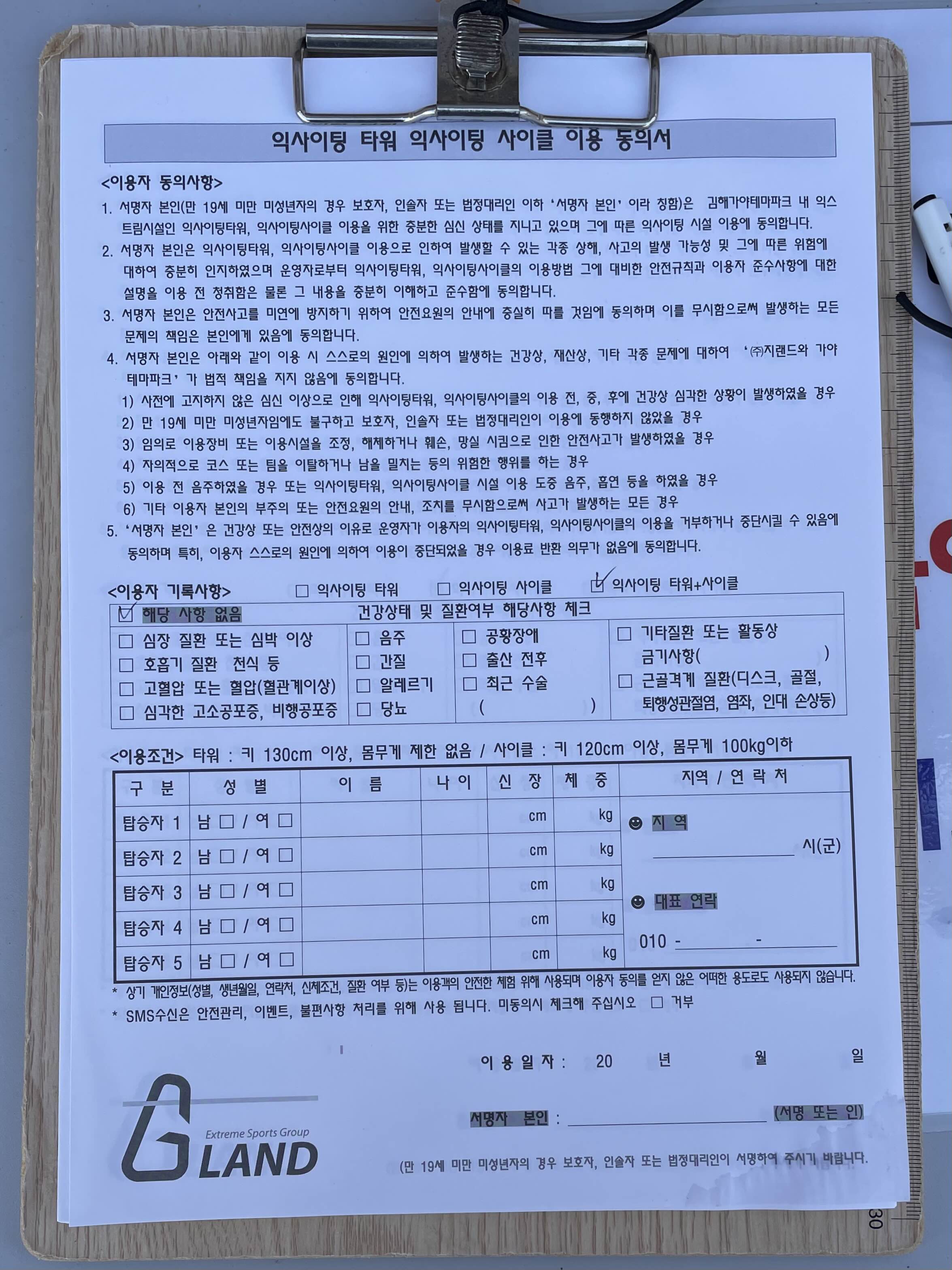 동의서를 작성하고 안전 장비를 착용한 다음 기본 교육을 받고 위로 올라갑니다.