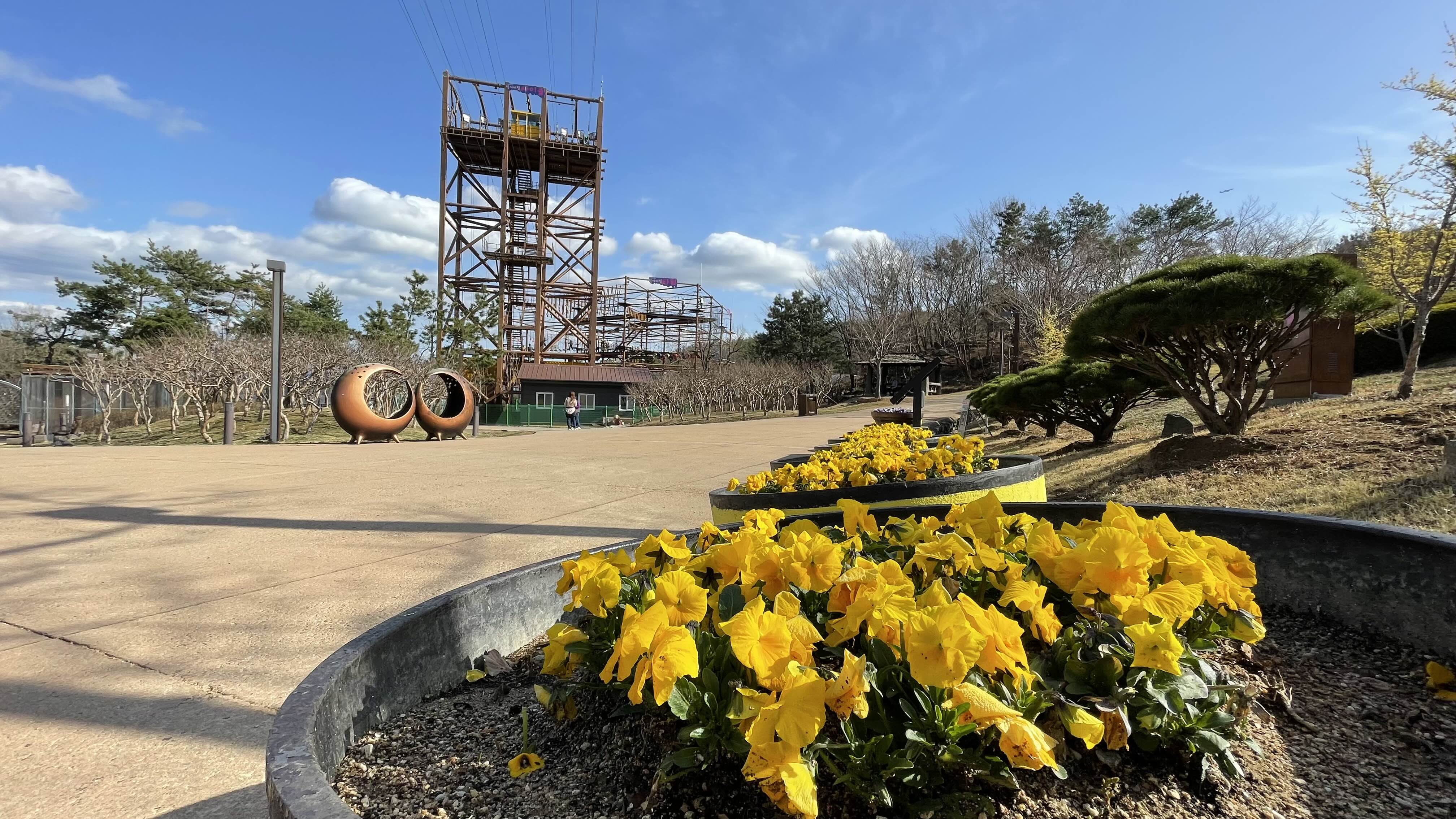남쪽으로는 줄 하나에 매달려 하늘을 달리는 자전거 '익사이팅 싸이클'과 멀리 '가락왕궁의 모습이 보입니다.