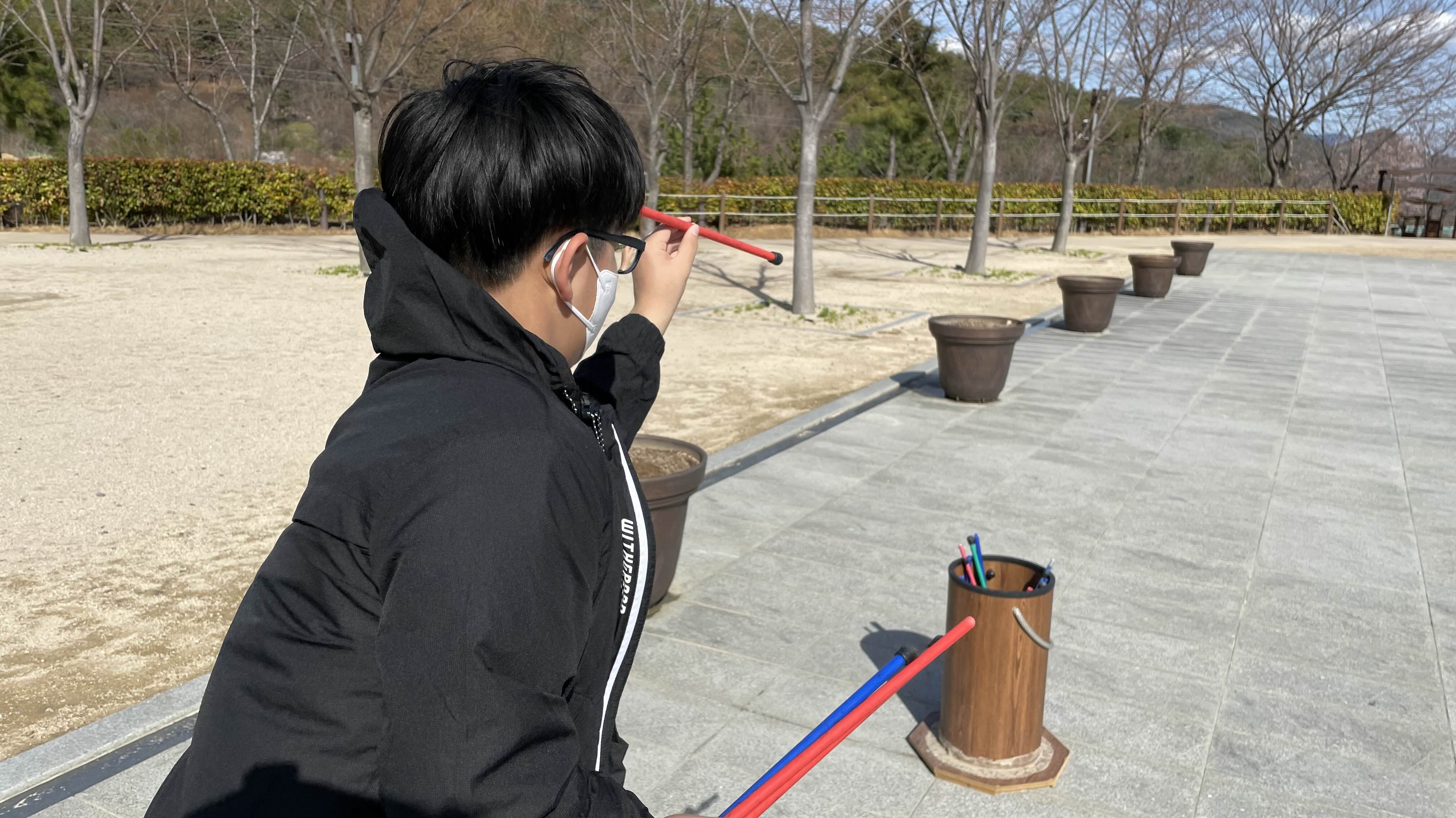 가야왕궁 마당에는 투호놀이를 할 수 있는 통이 몇 개 놓여져 있어,
