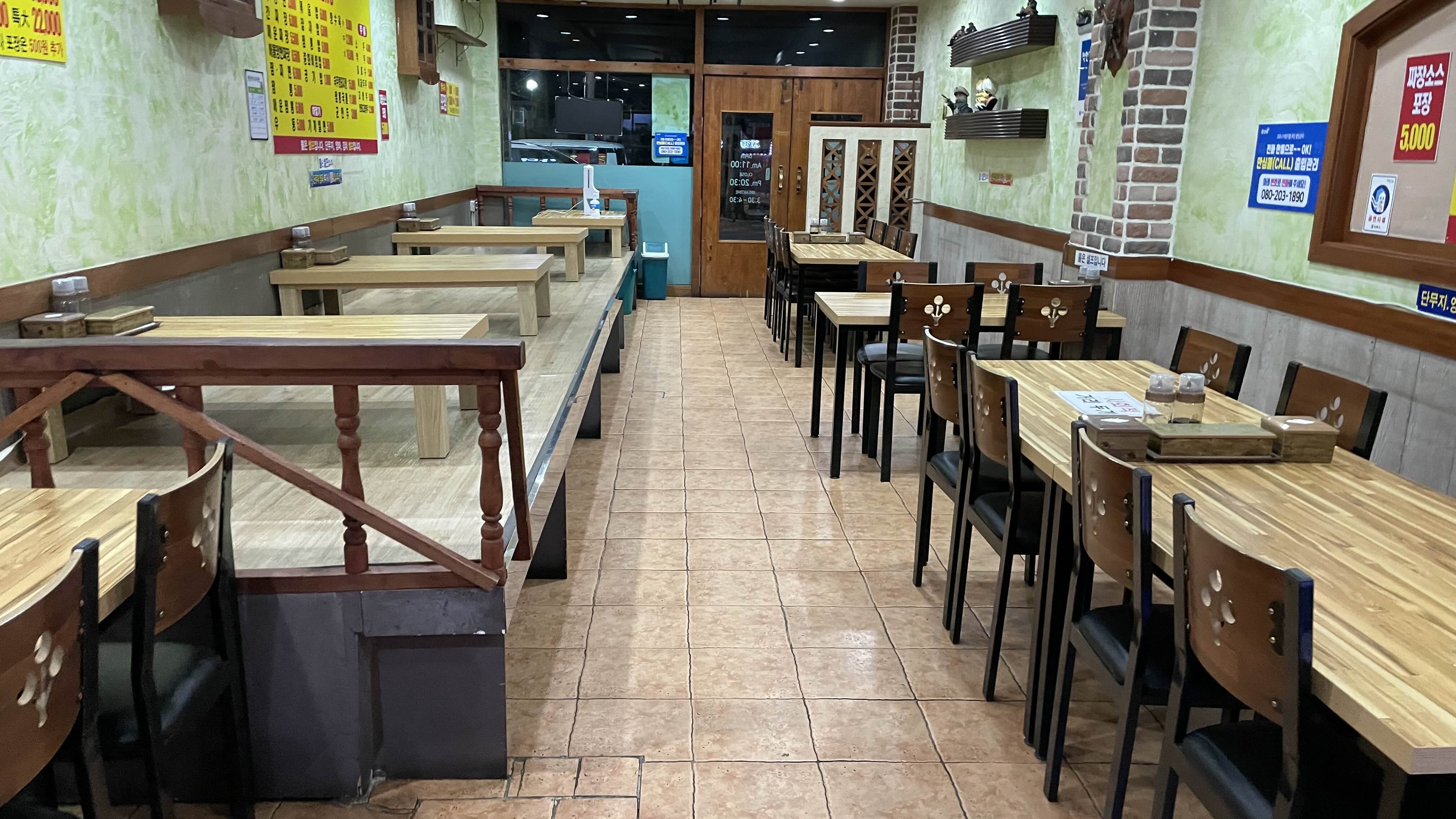 하루각 매장 내부는 그리 넓지 않으며, 약 10개의 입식 테이블과