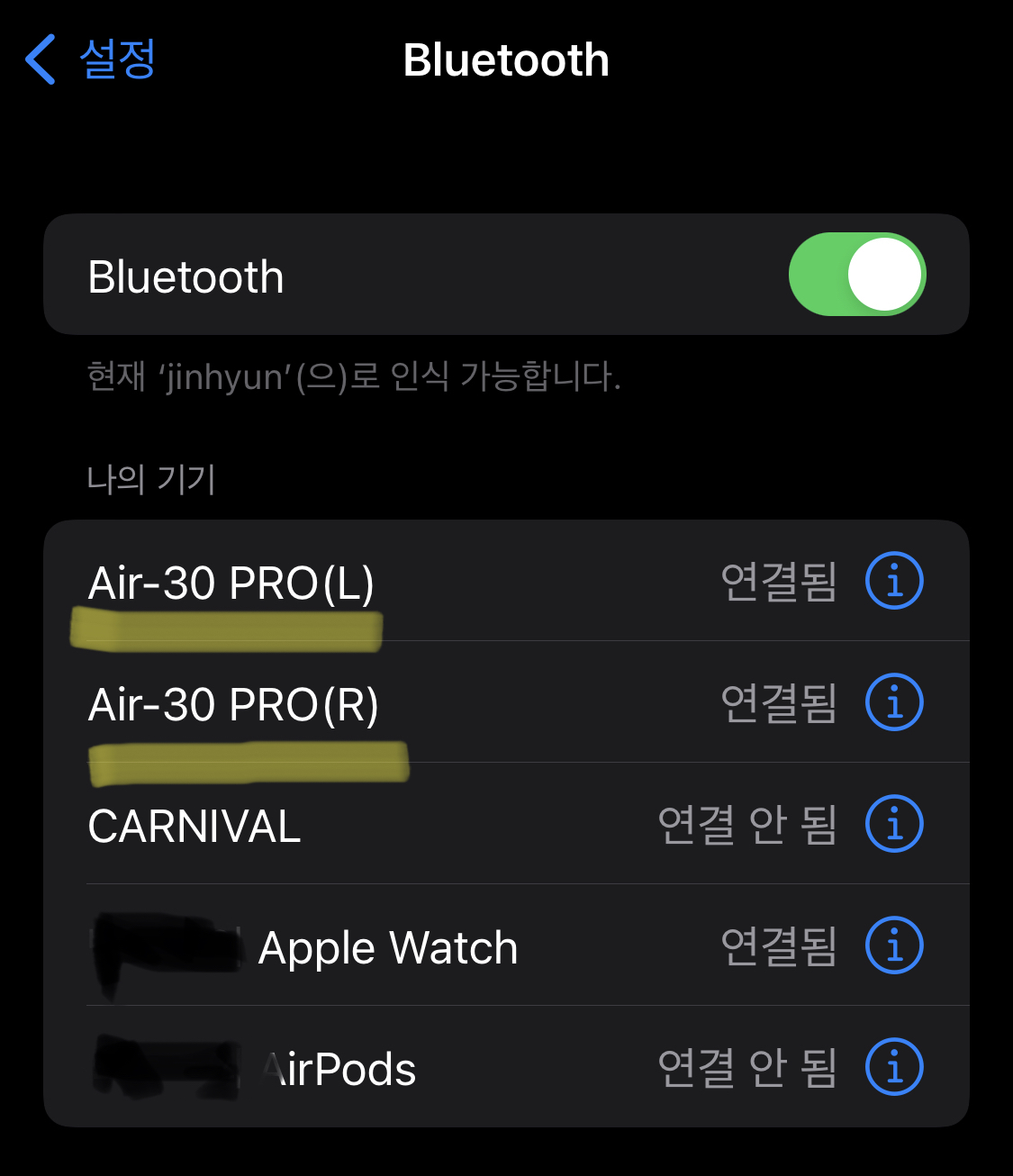 폰의 블루투스 연결에서 찾을 수 있습니다.
