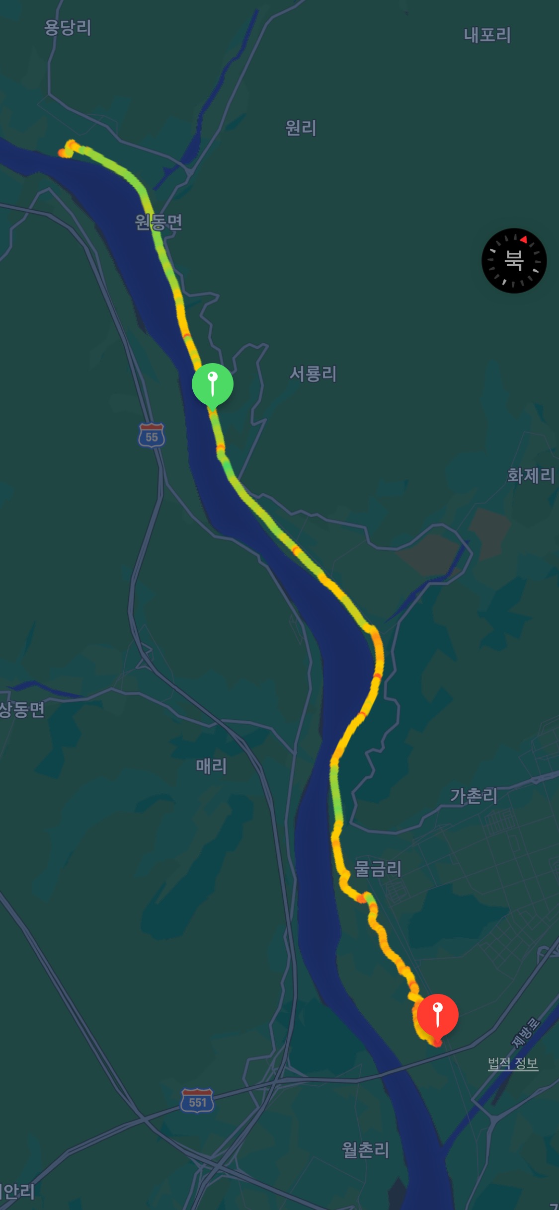 원동 화제천을 지납니다. 대약 6km 정도 달렸네요.