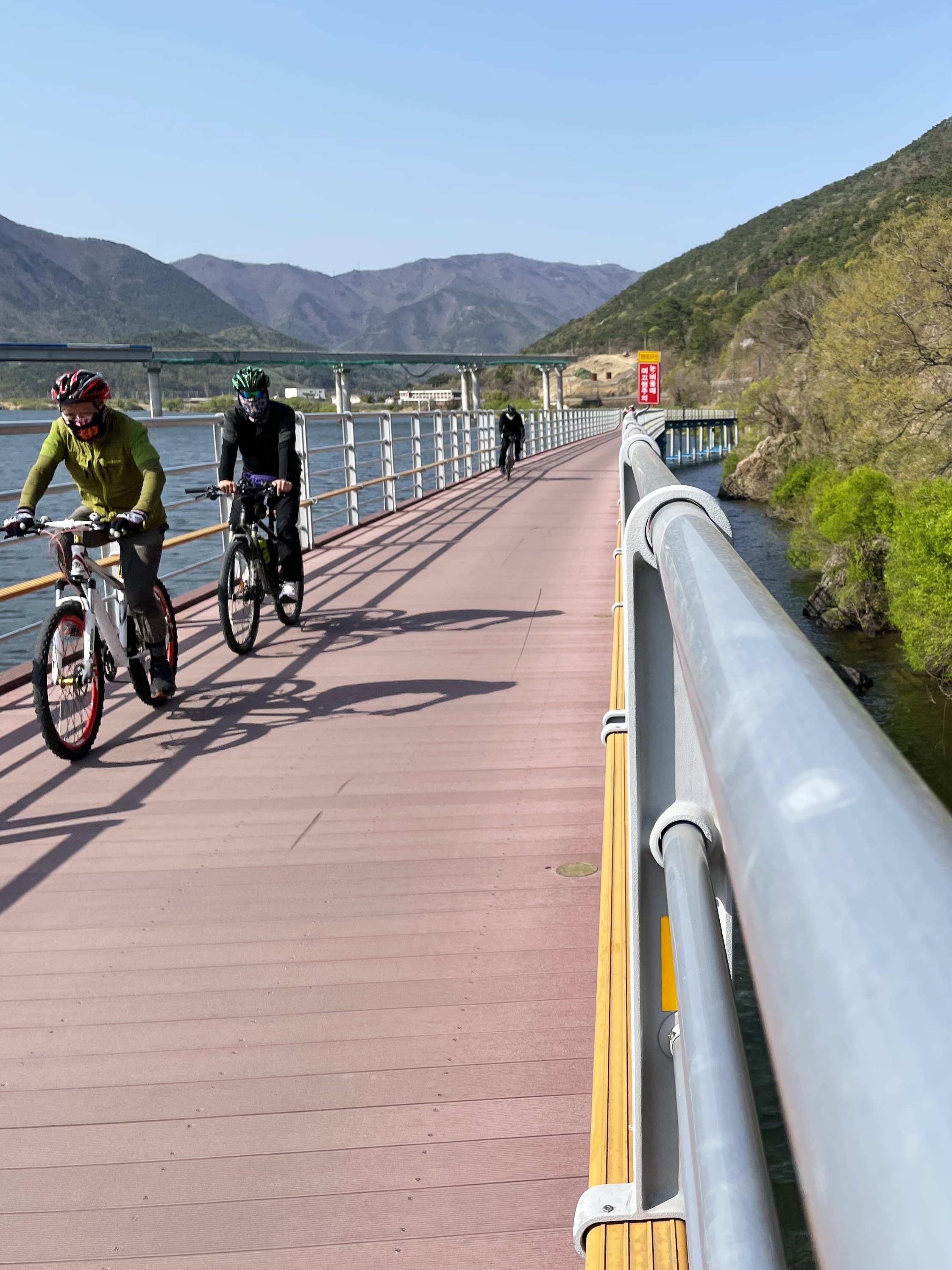 바닥 보면서 달리니 아래 물이 보여서 은근히 무섭습니다.