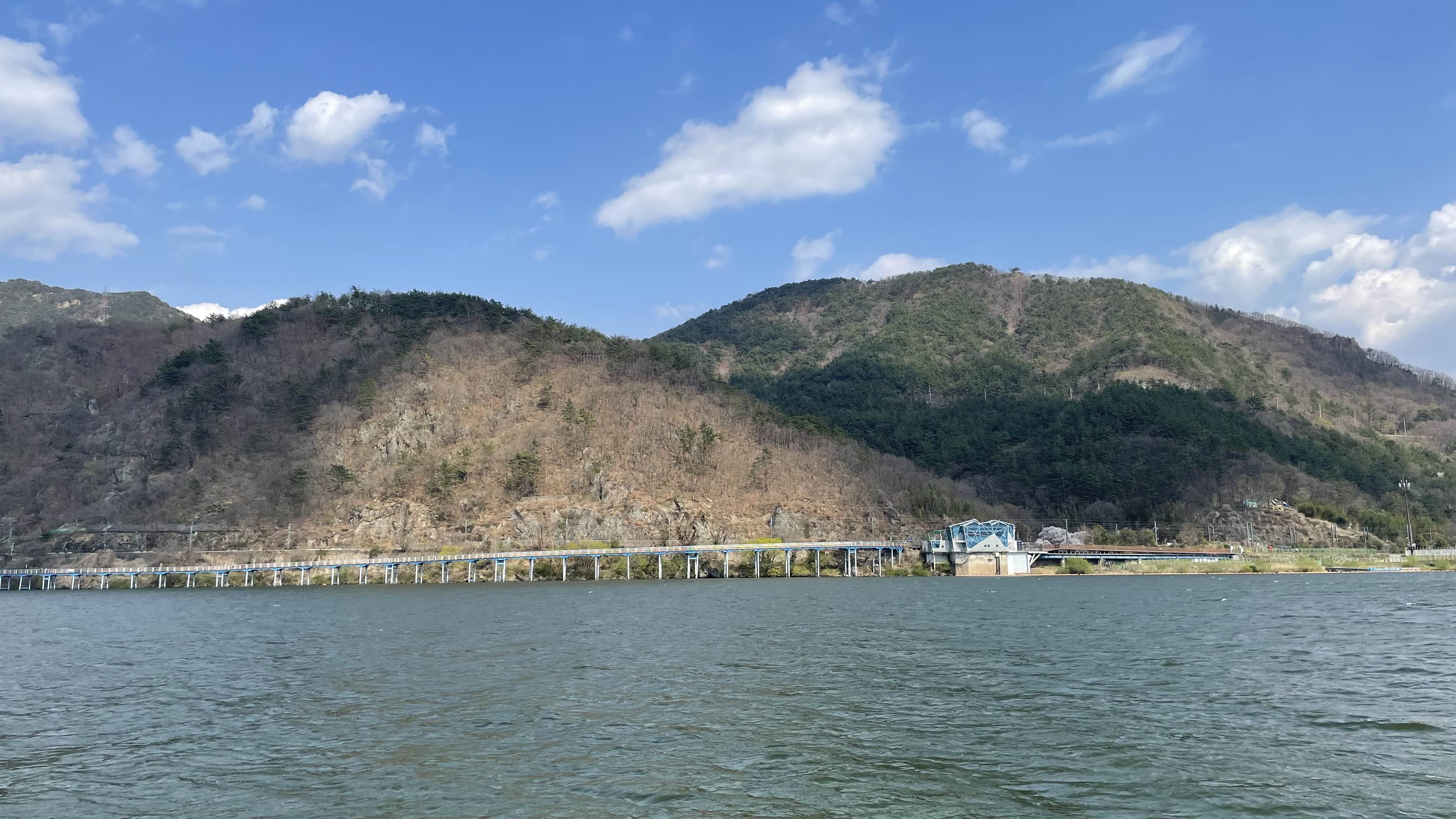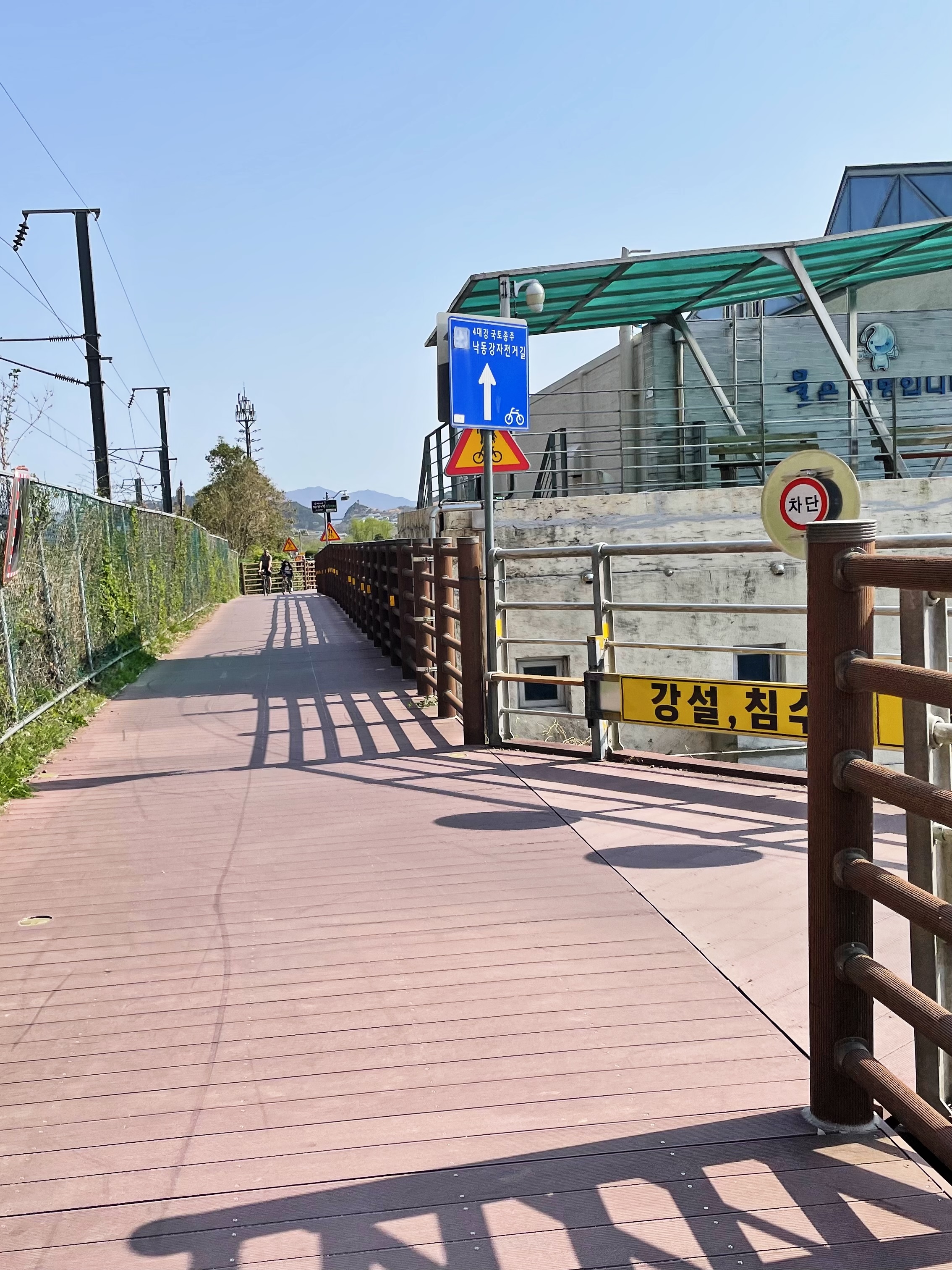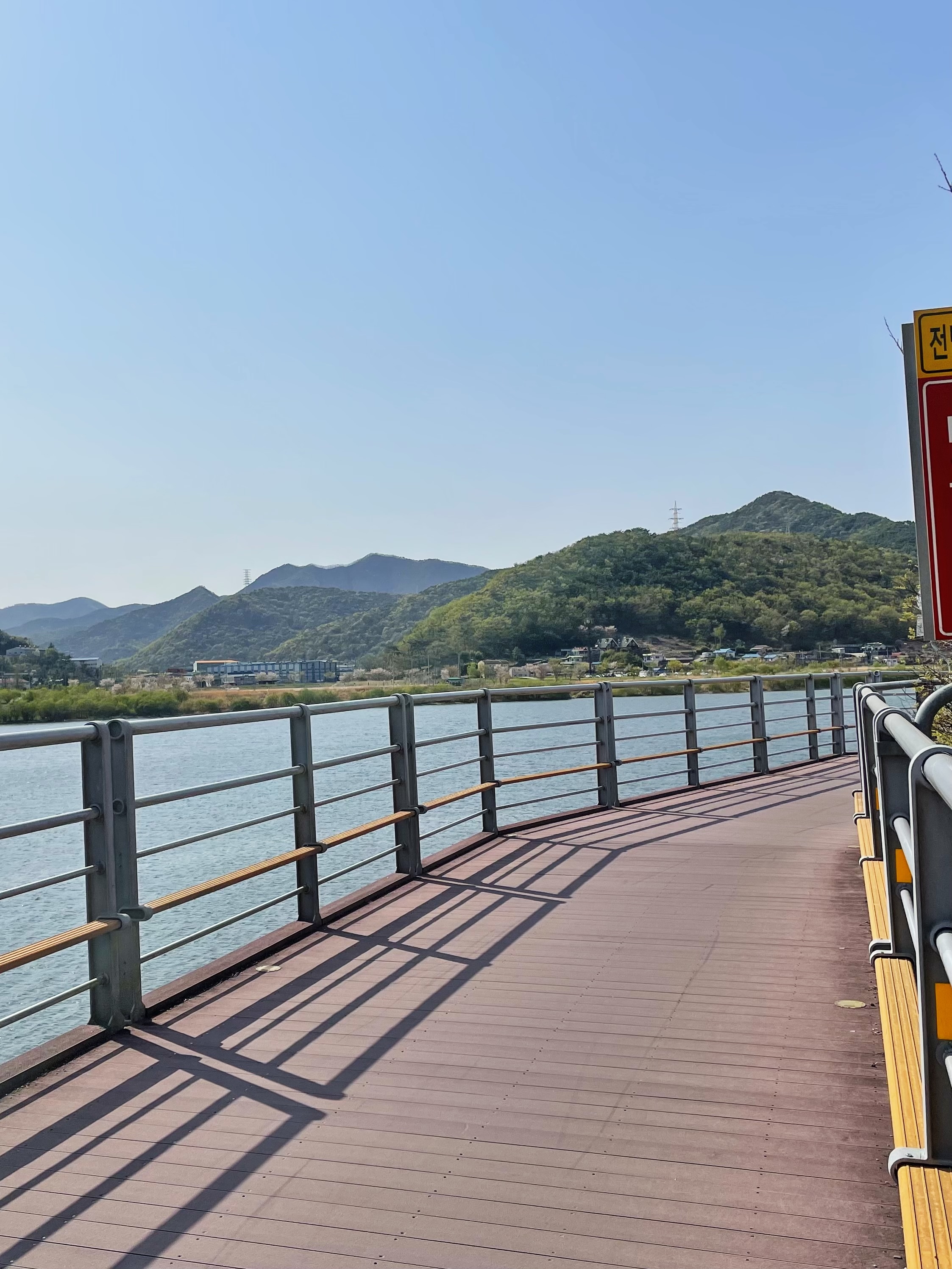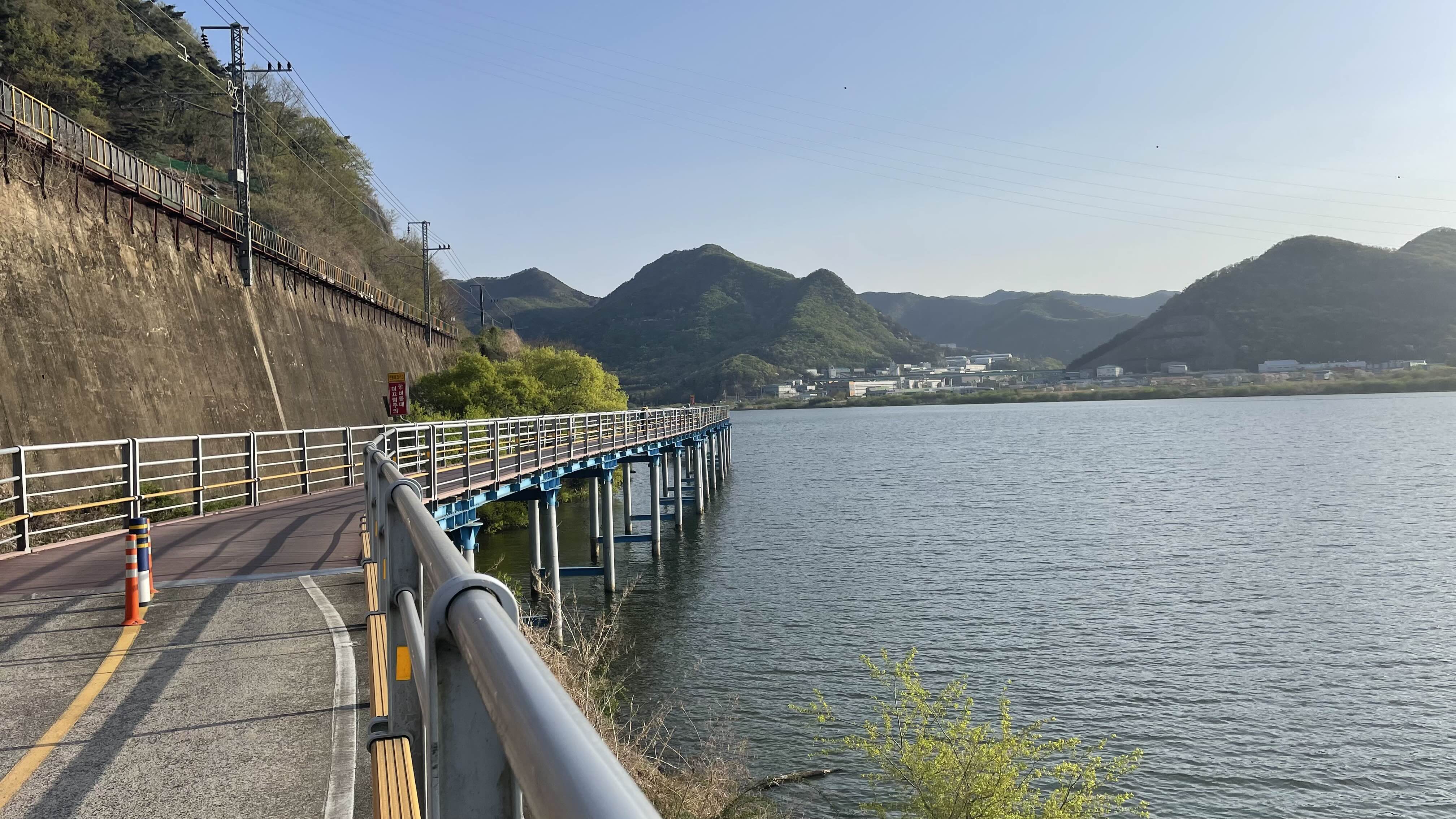 이 구간은 육지에 데크를 설치하지 않고, 강 위에 교각을 세워 데크를 설치하였습니다.