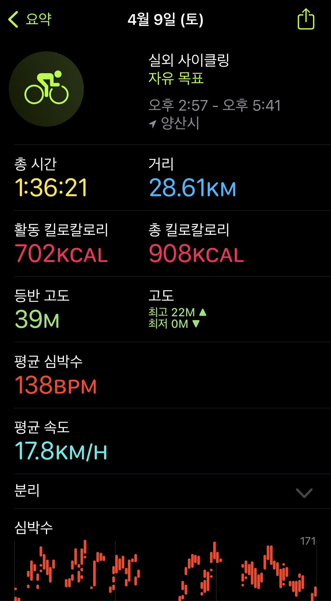 총 거리 28.61km를 무거운 주인 태우고 열심히 달려준 자전차