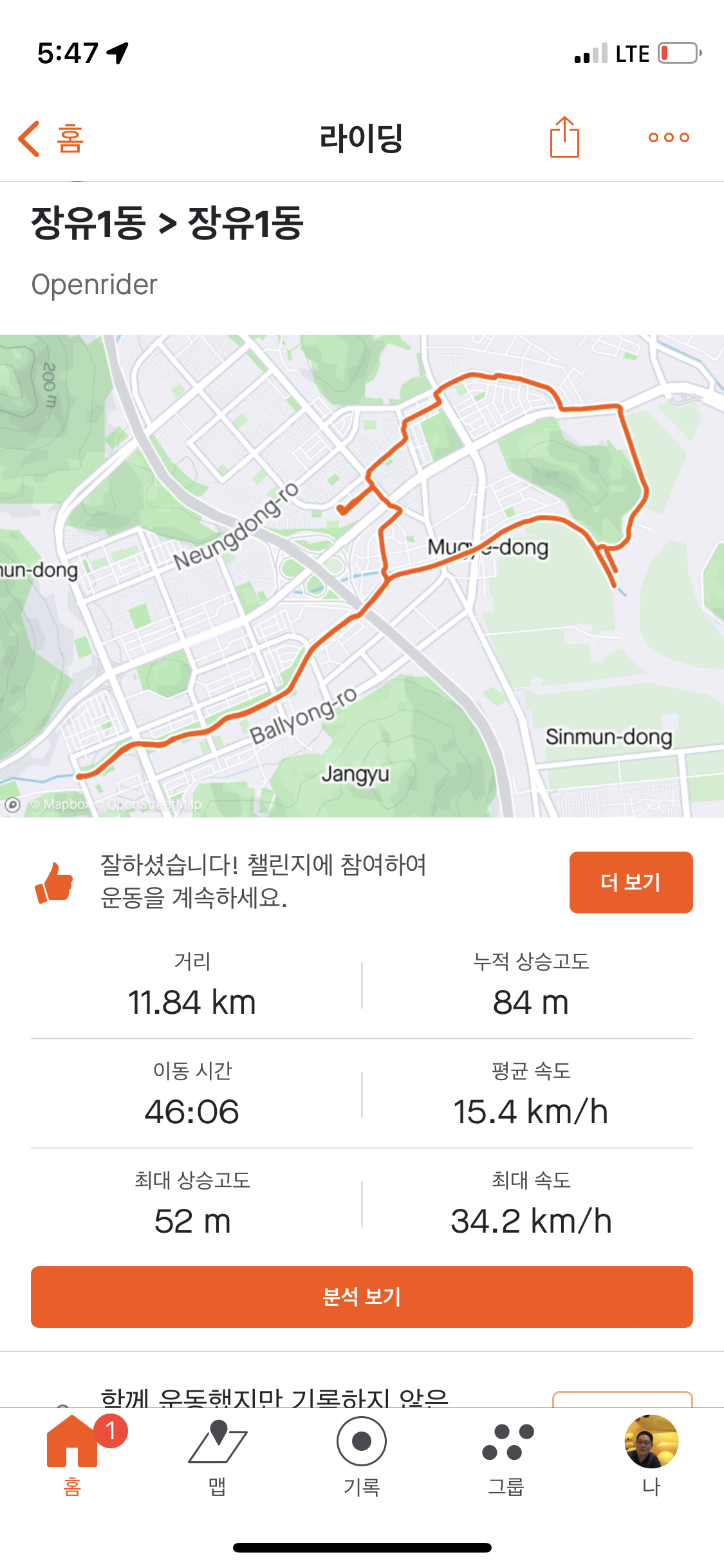 이상 동네 한바퀴 기록과 라이딩 관련 어플 소개였습니다 ㅋ