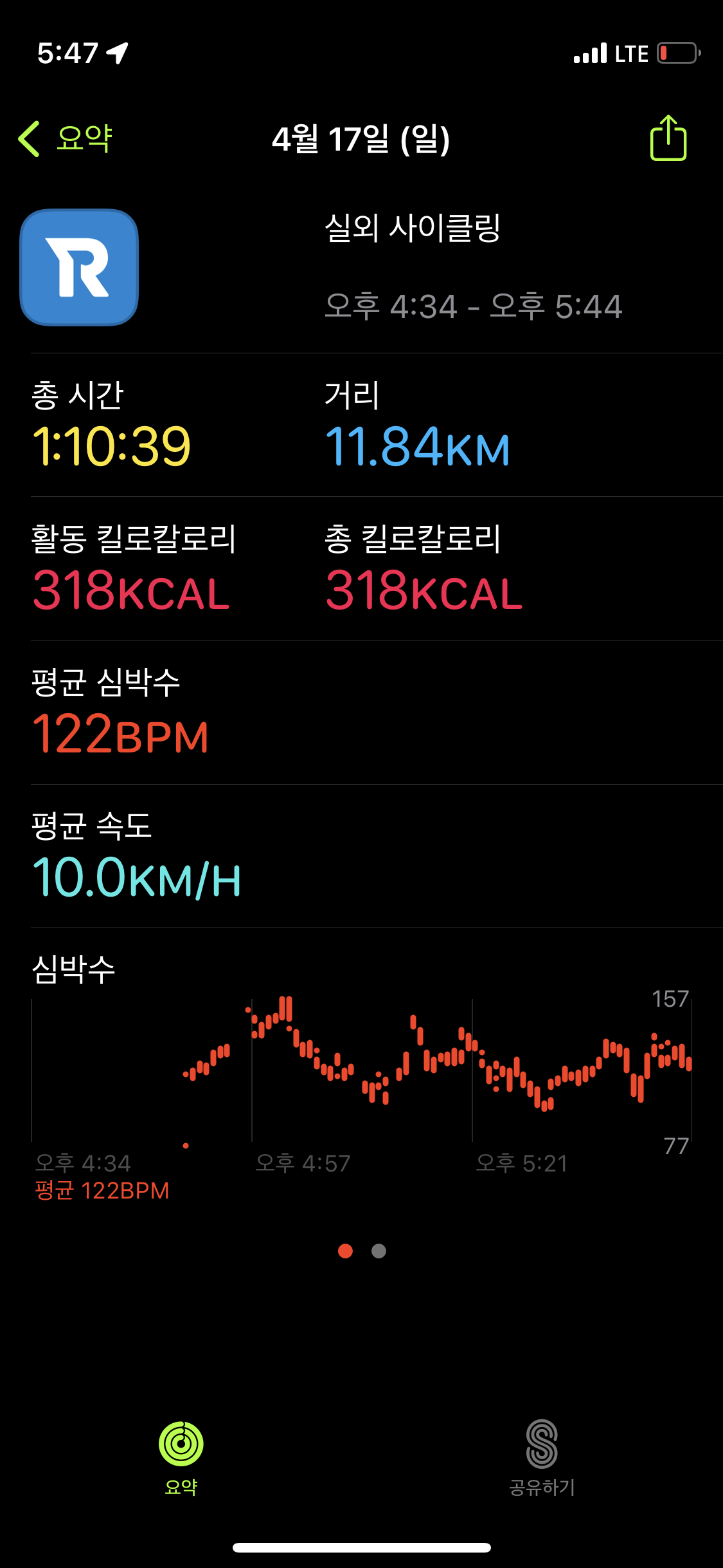구간 요약, 고도, 속도 등은 확인이 되는데 애플워치와 연동해 심박수까지 동기화하려니 그건 유료로 구매를 하라고 하네요.