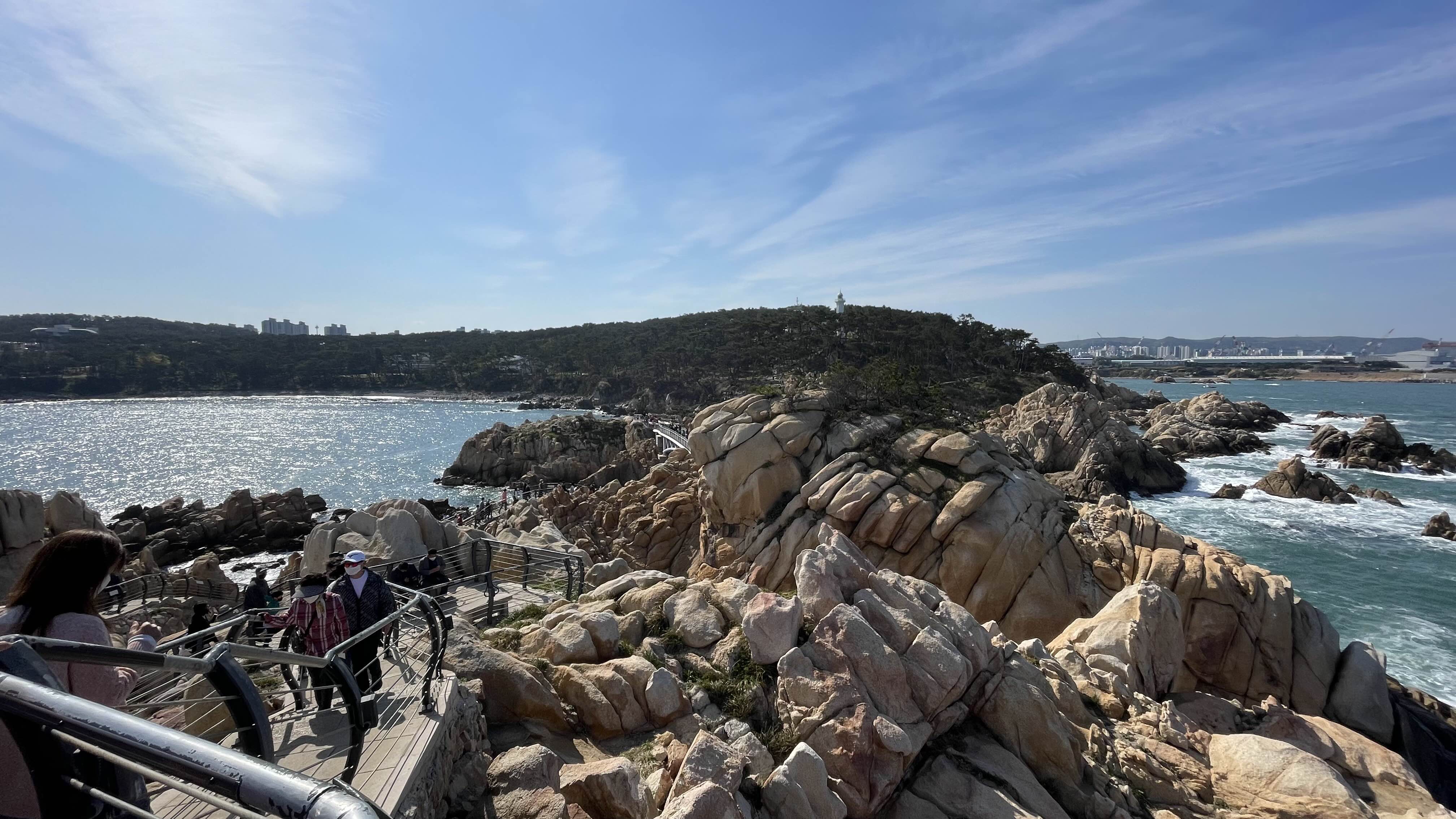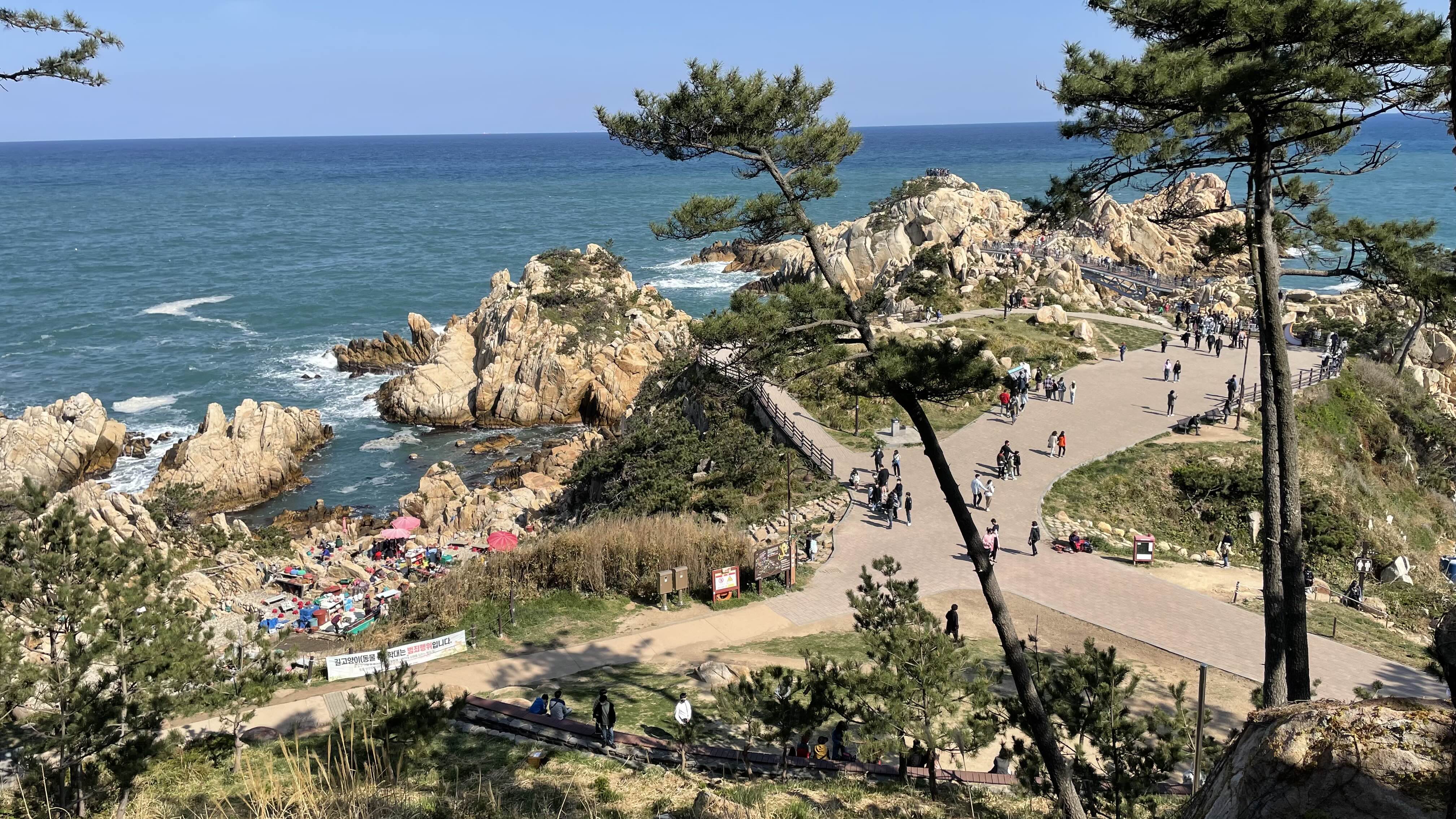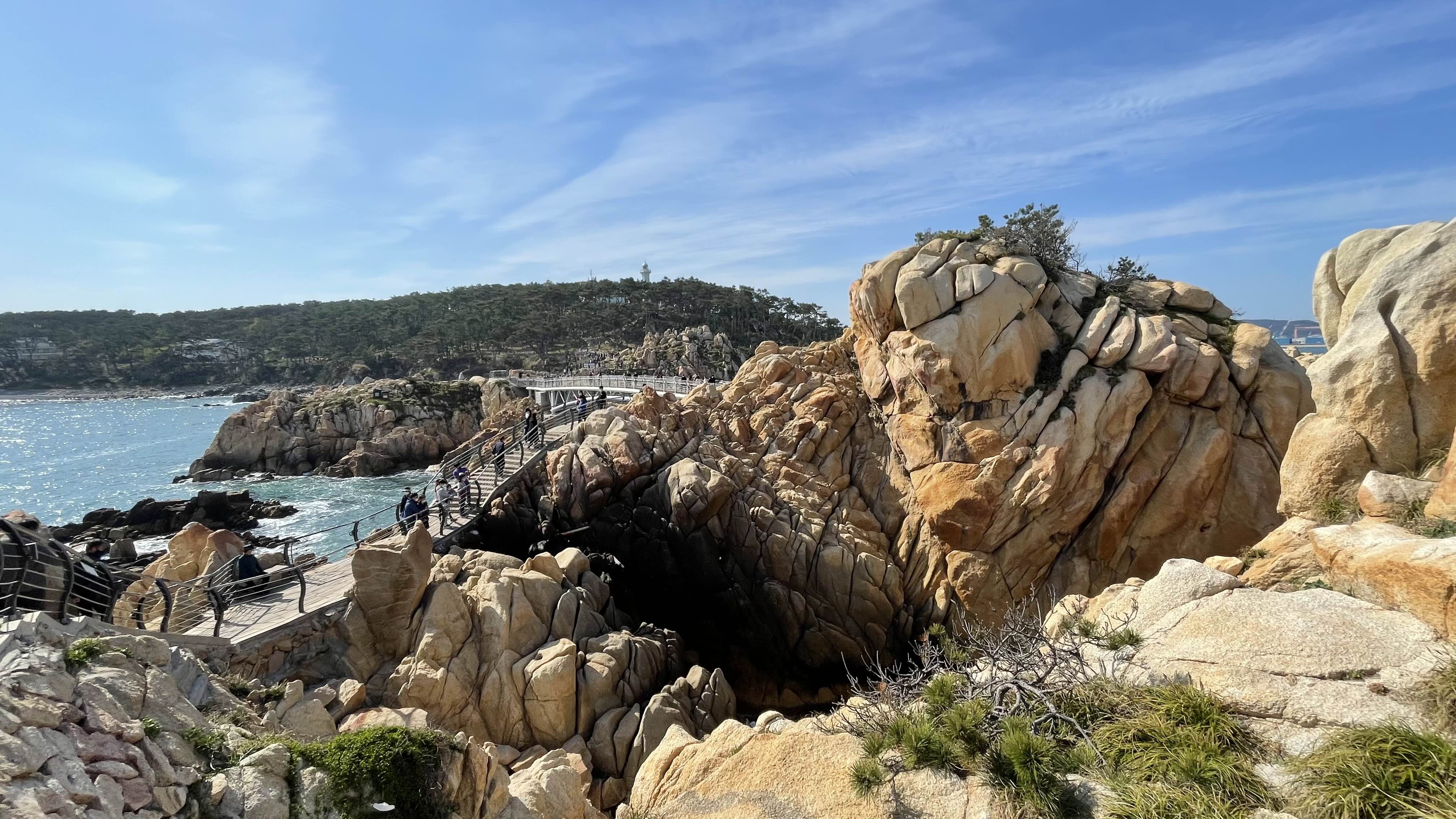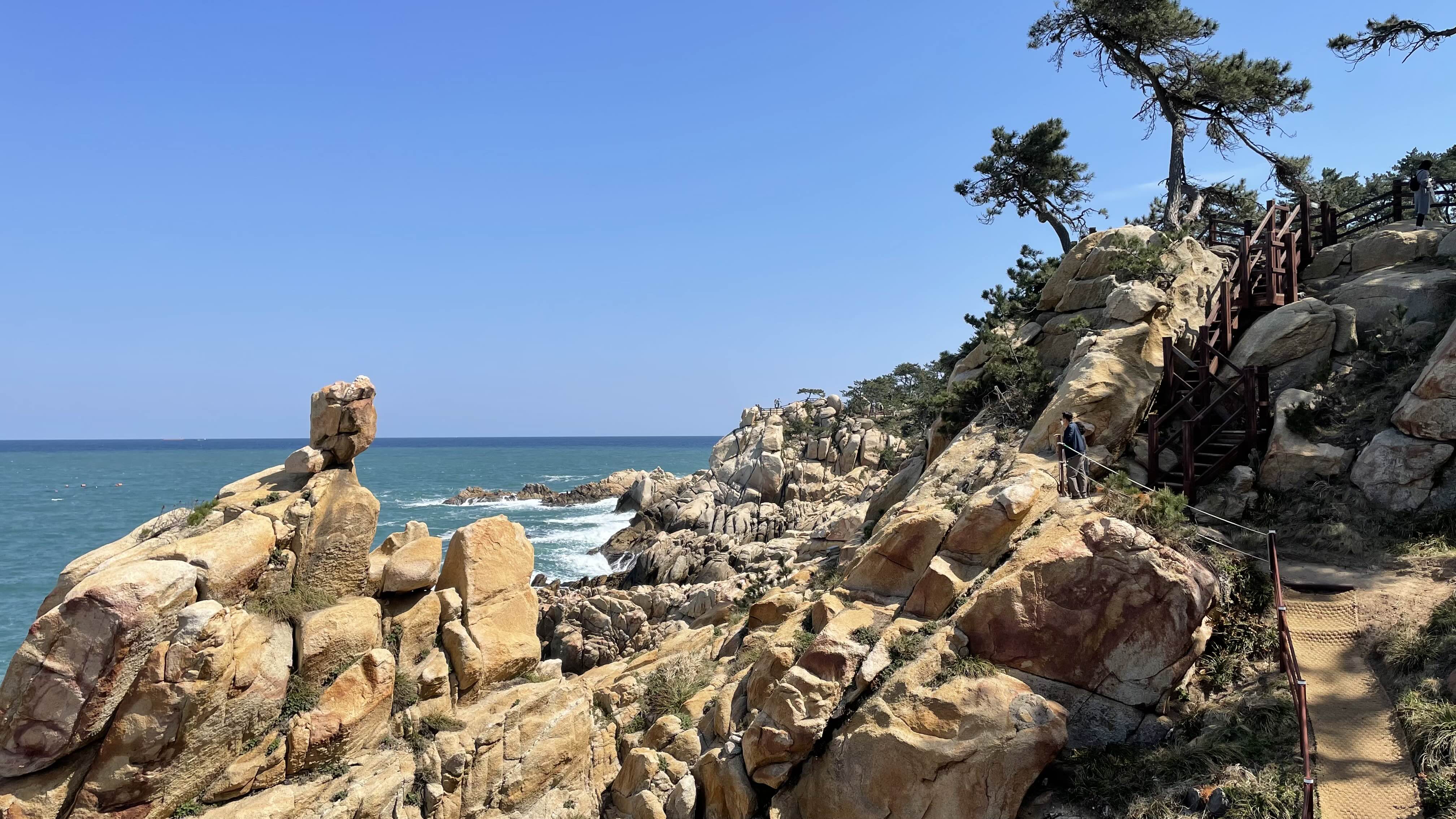 산책로는 해안가를 따라 대왕암까지 이어져 있는데, 중간중간 전망대와 특이한 모양의 바위들이 있어