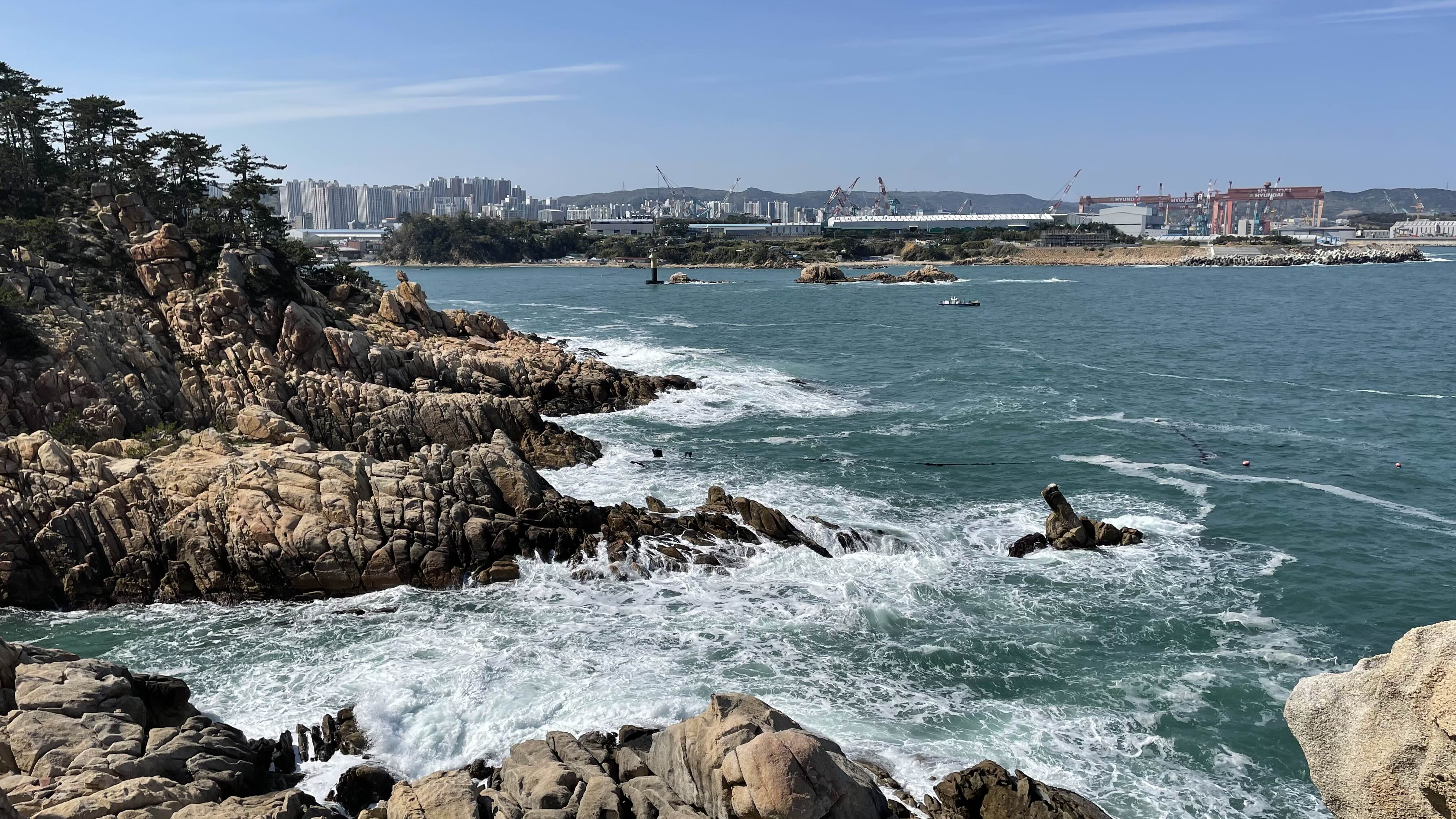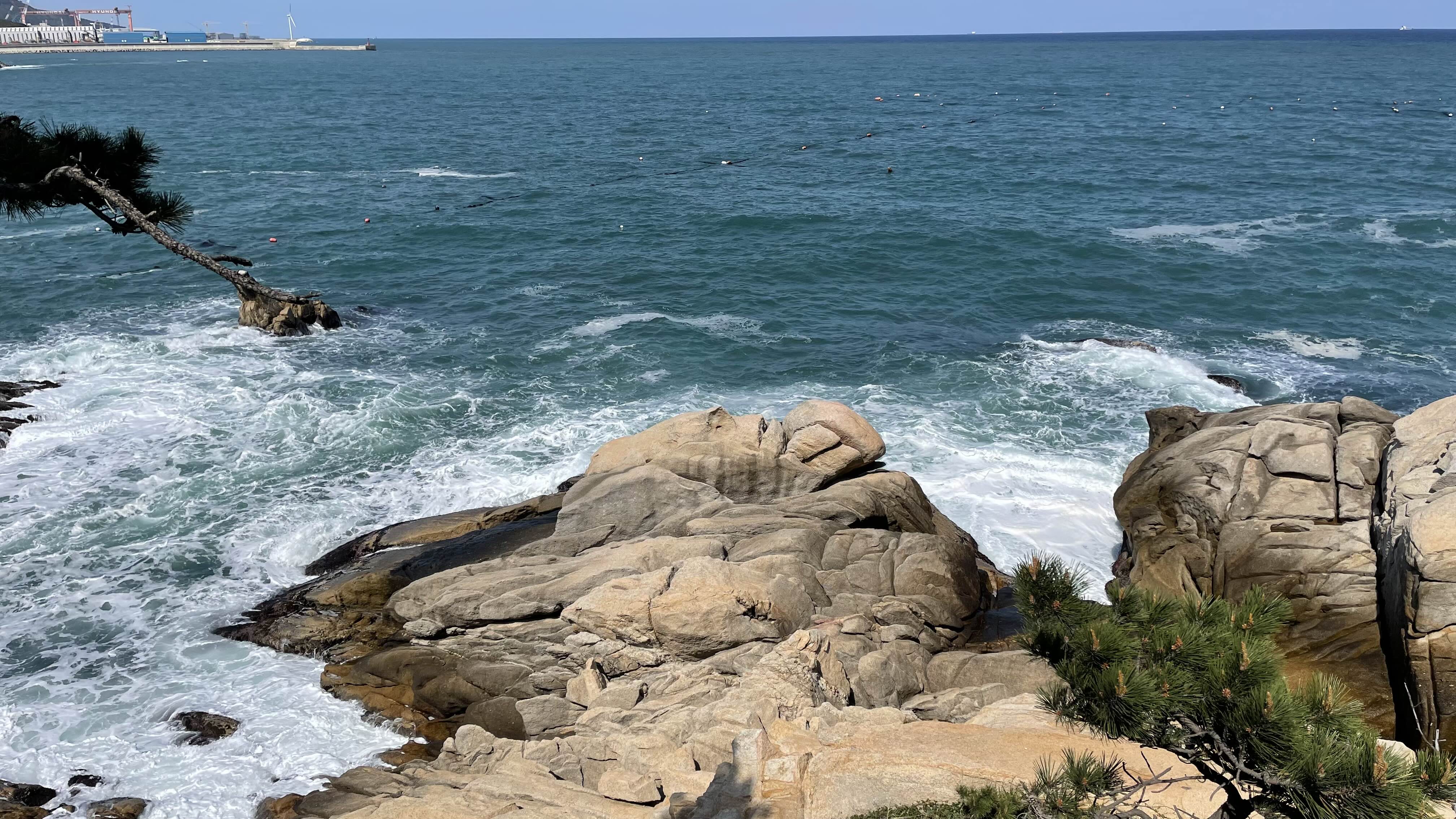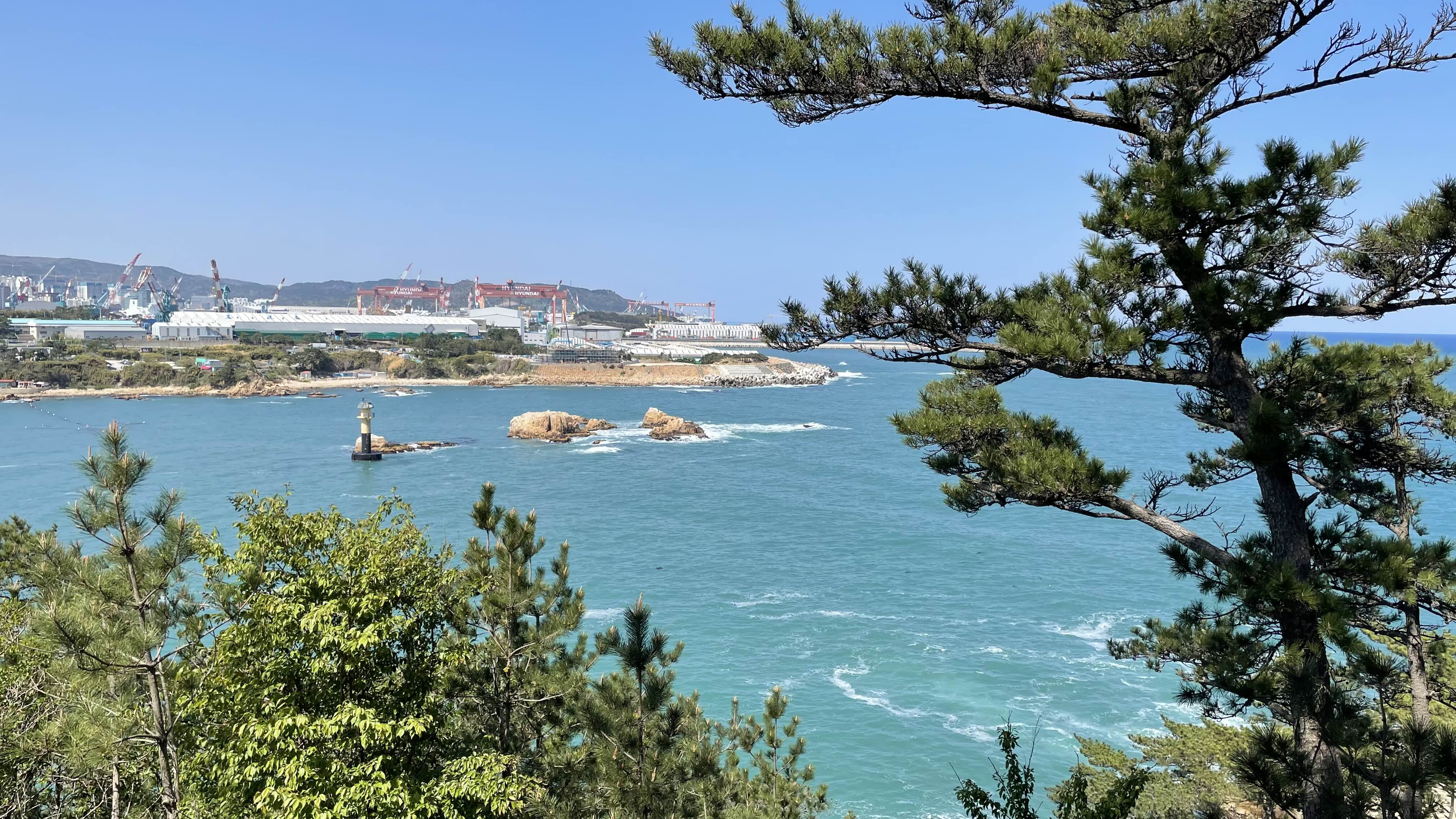 현대중공업 방면으로 고개를 돌려보면 바위섬인 '민섬'을 제일 먼저 볼 수 있습니다.