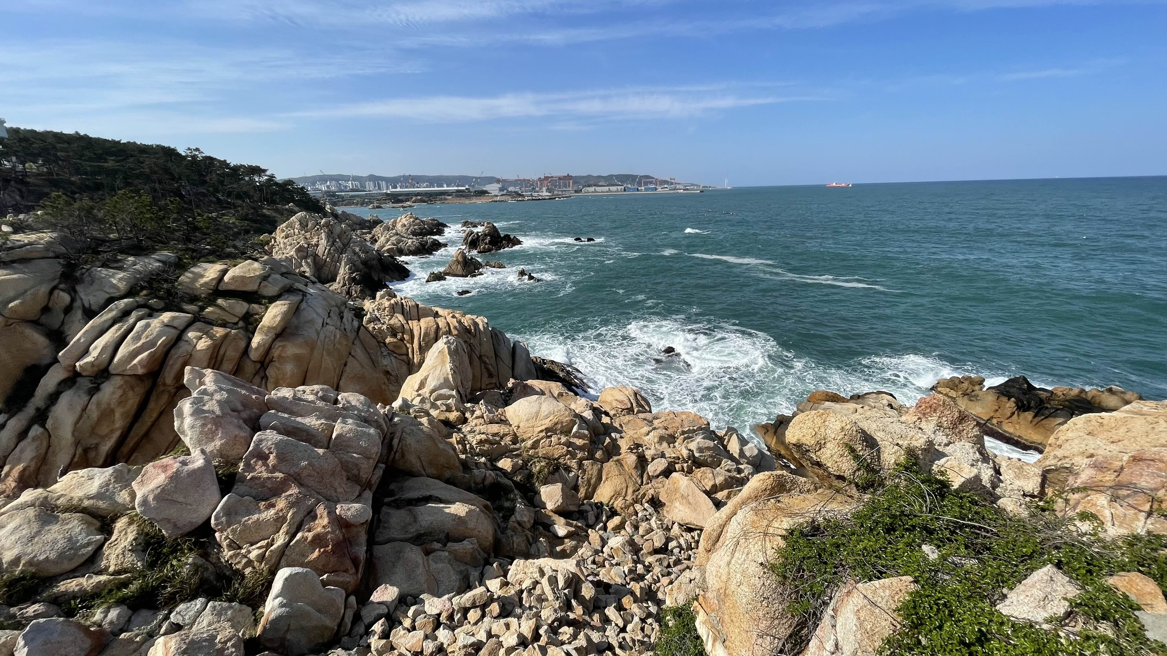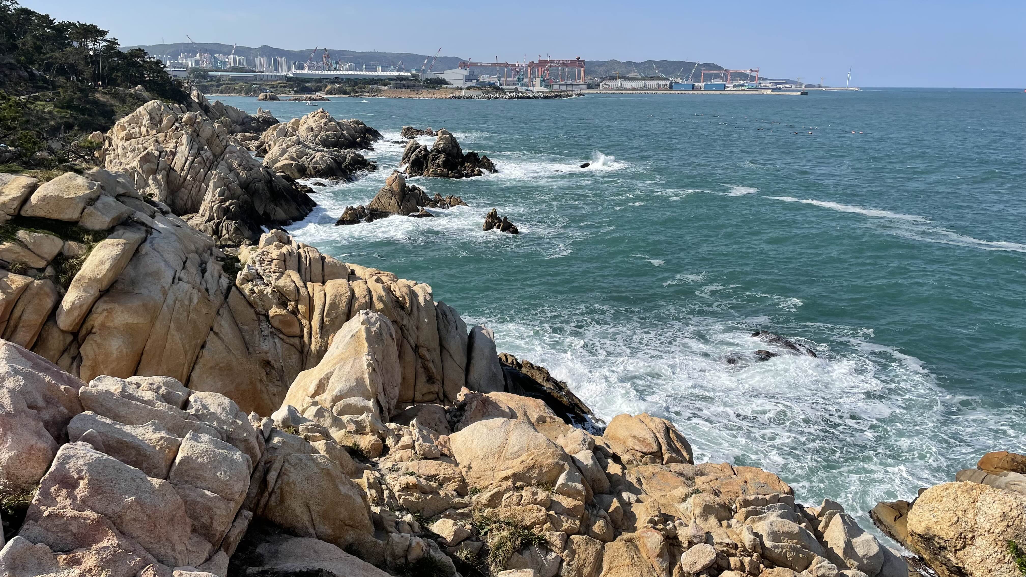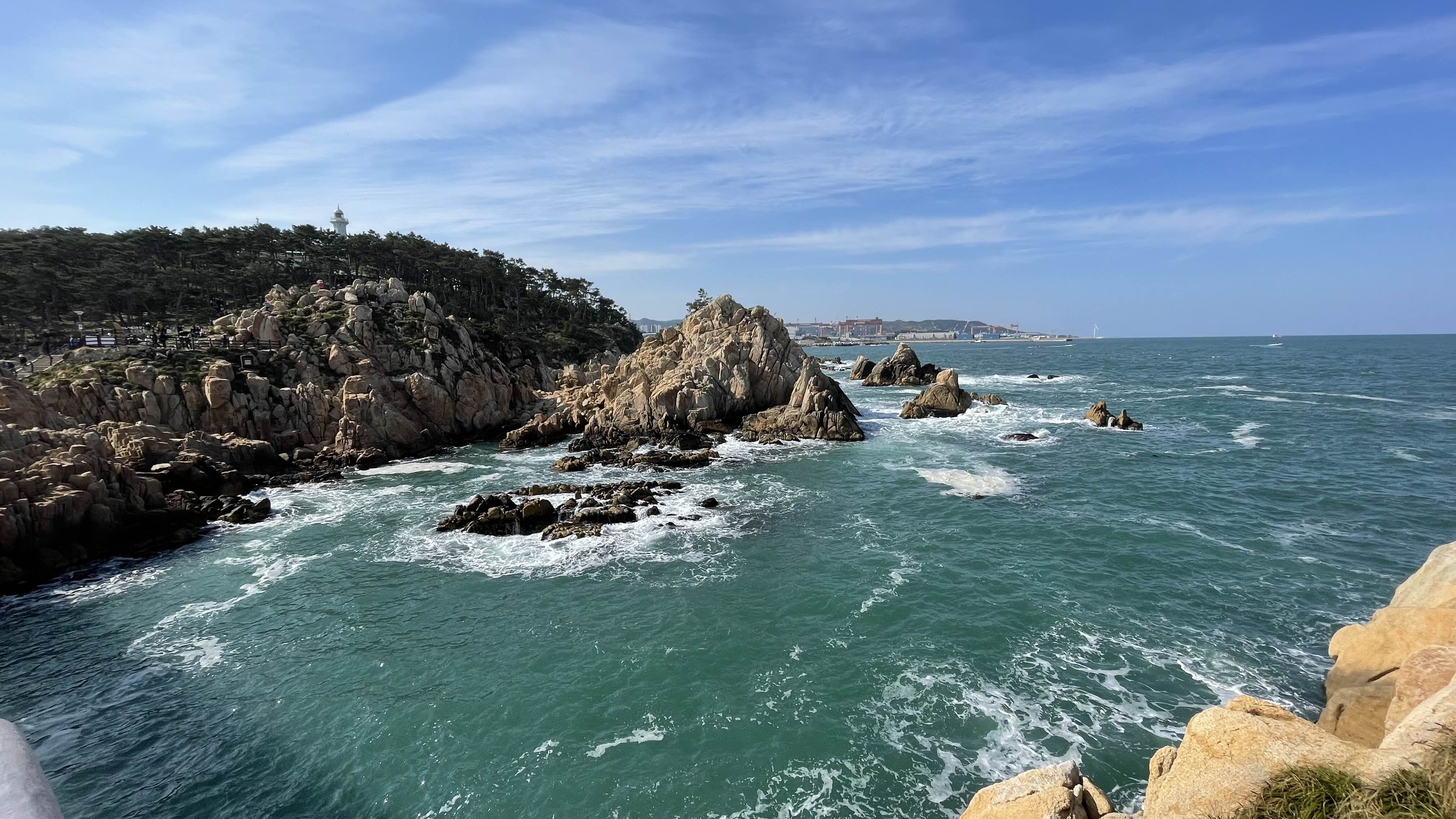 대왕암공원에서 남쪽으로는 저 멀리 방어진항의 슬도공원도 어렴풋이 보입니다.
