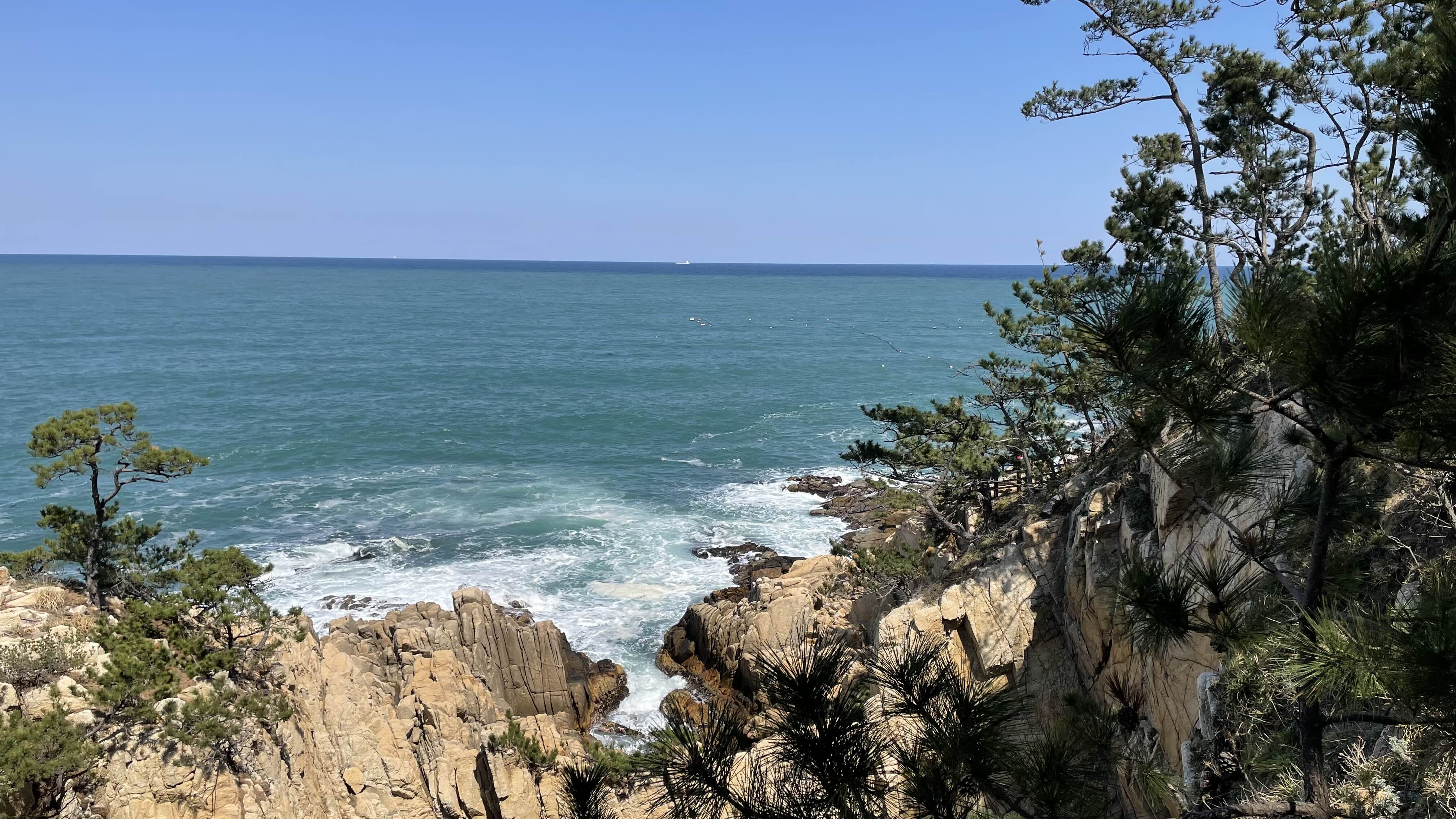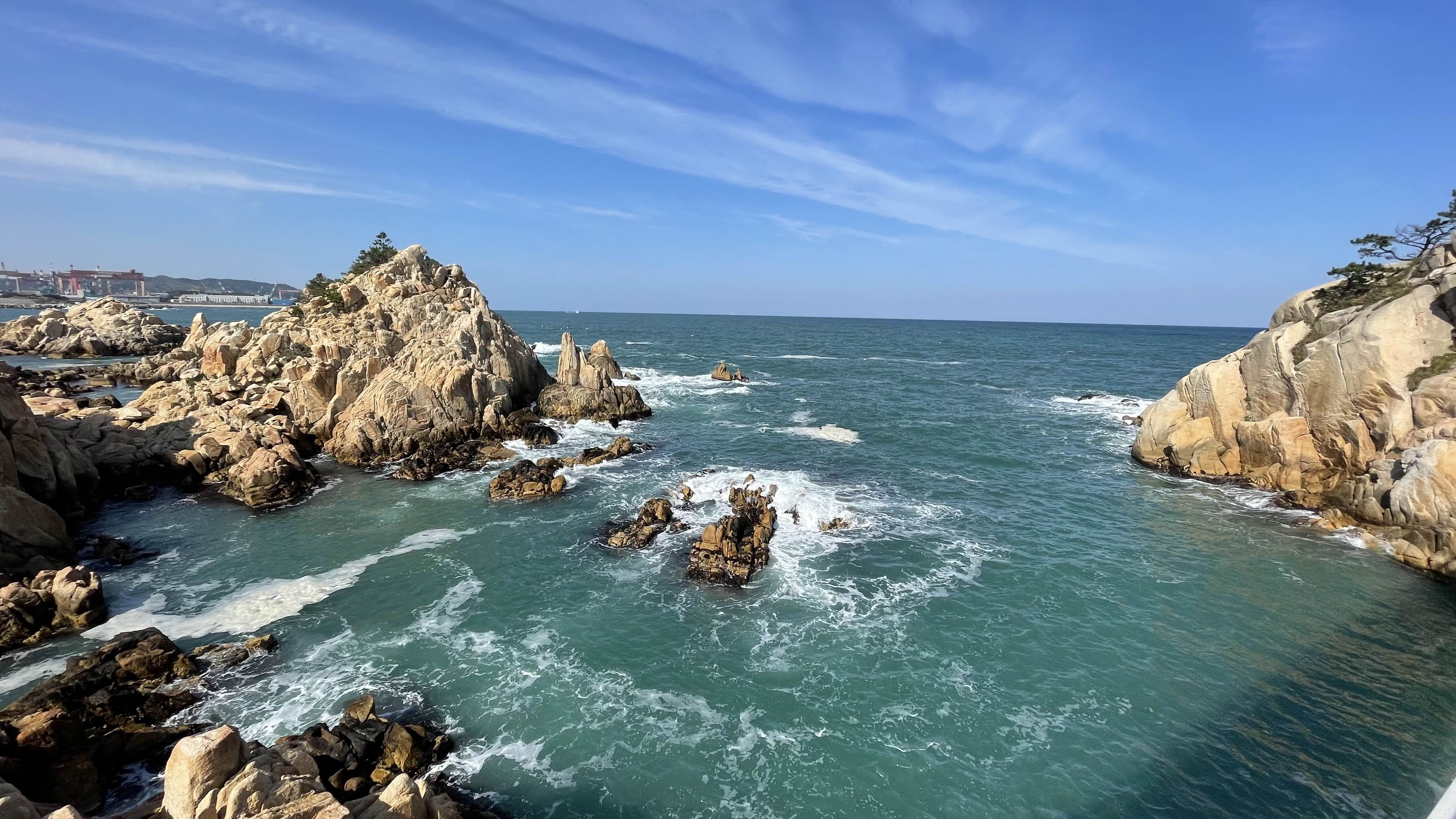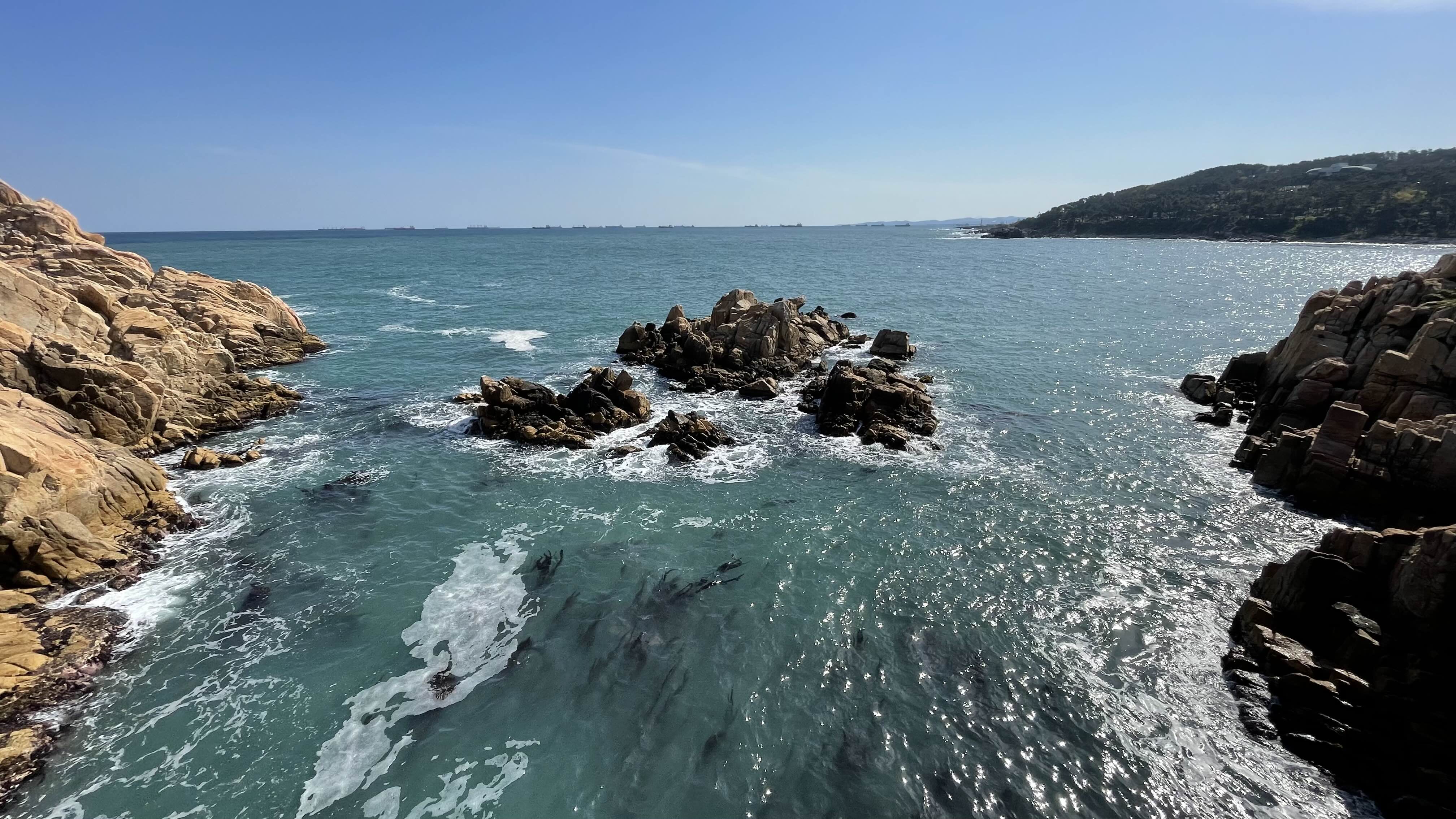 대왕암공원에서 남쪽으로는 저 멀리 방어진항의 슬도공원도 어렴풋이 보입니다.