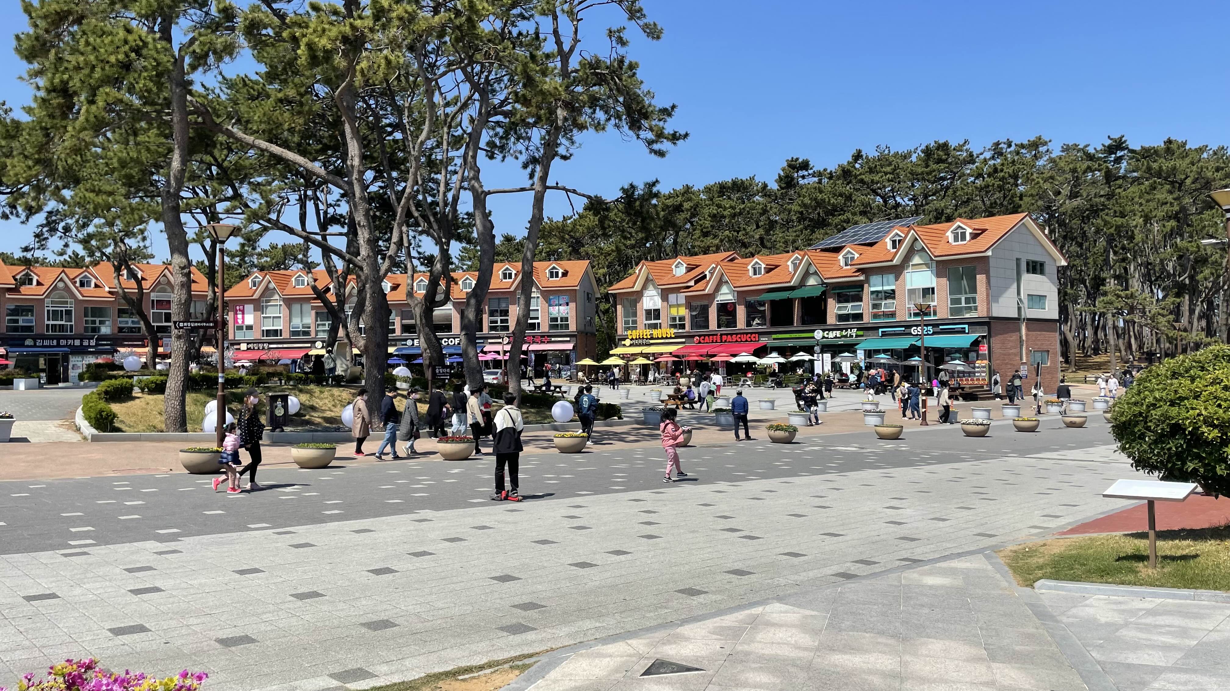 주차장에 차를 주차하고 주황색 지붕의 건물들이 모여 있는 상가지역으로 걸어가다 보면