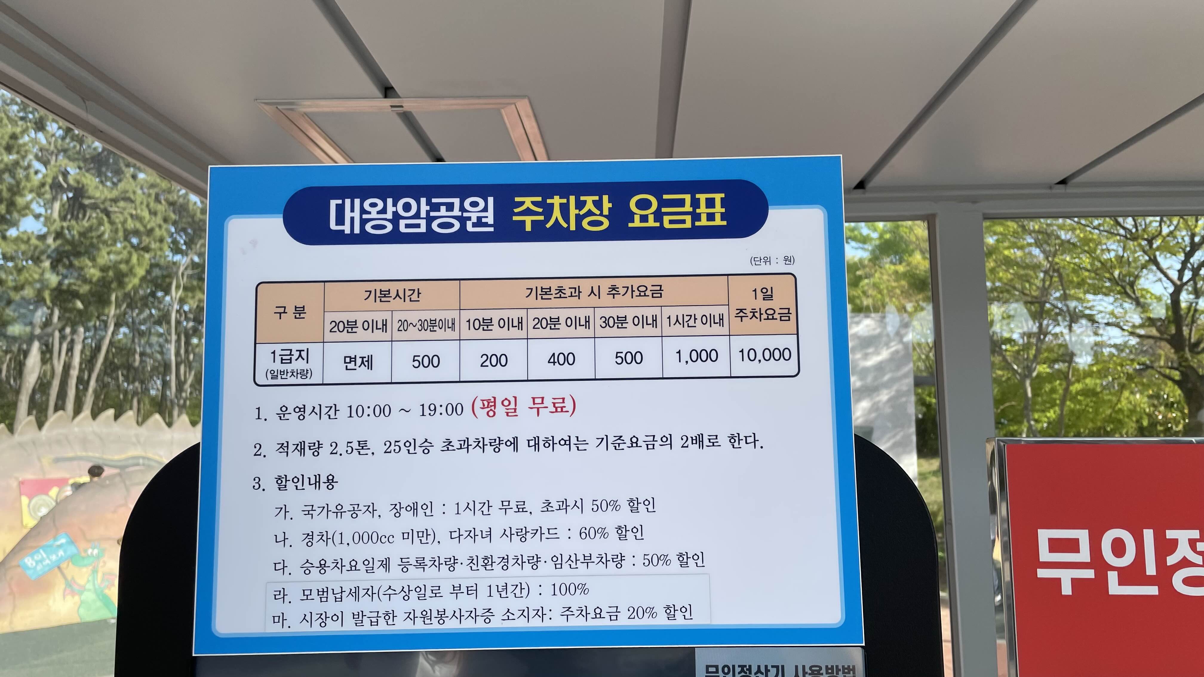 대왕암공원은 평일 주차는 무료이며, 주말에는 주차비를 지불해야 하는데요.