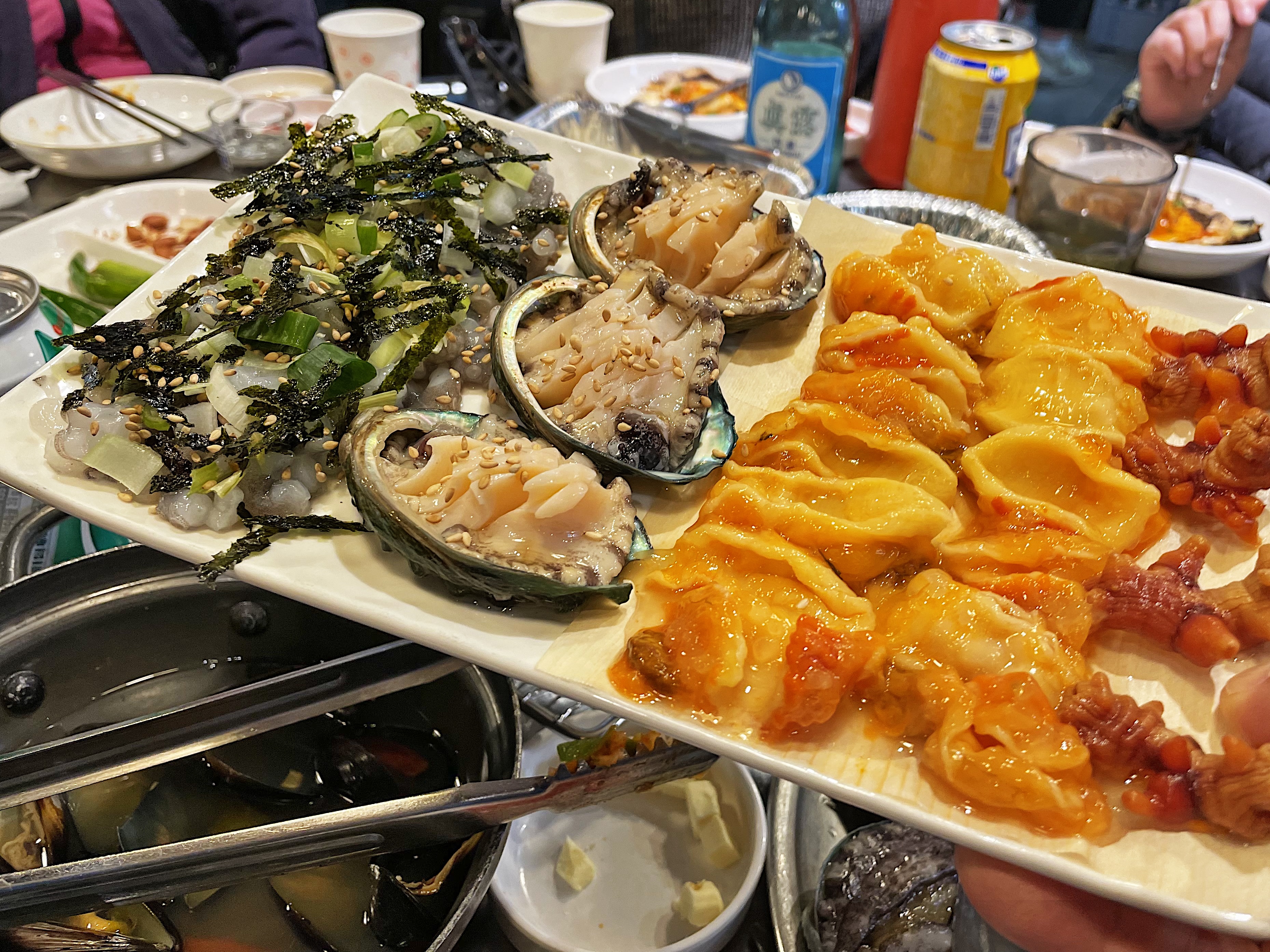 그래서 해산물(낙지, 전복, 멍게)을 추가로 주문하였습니다.