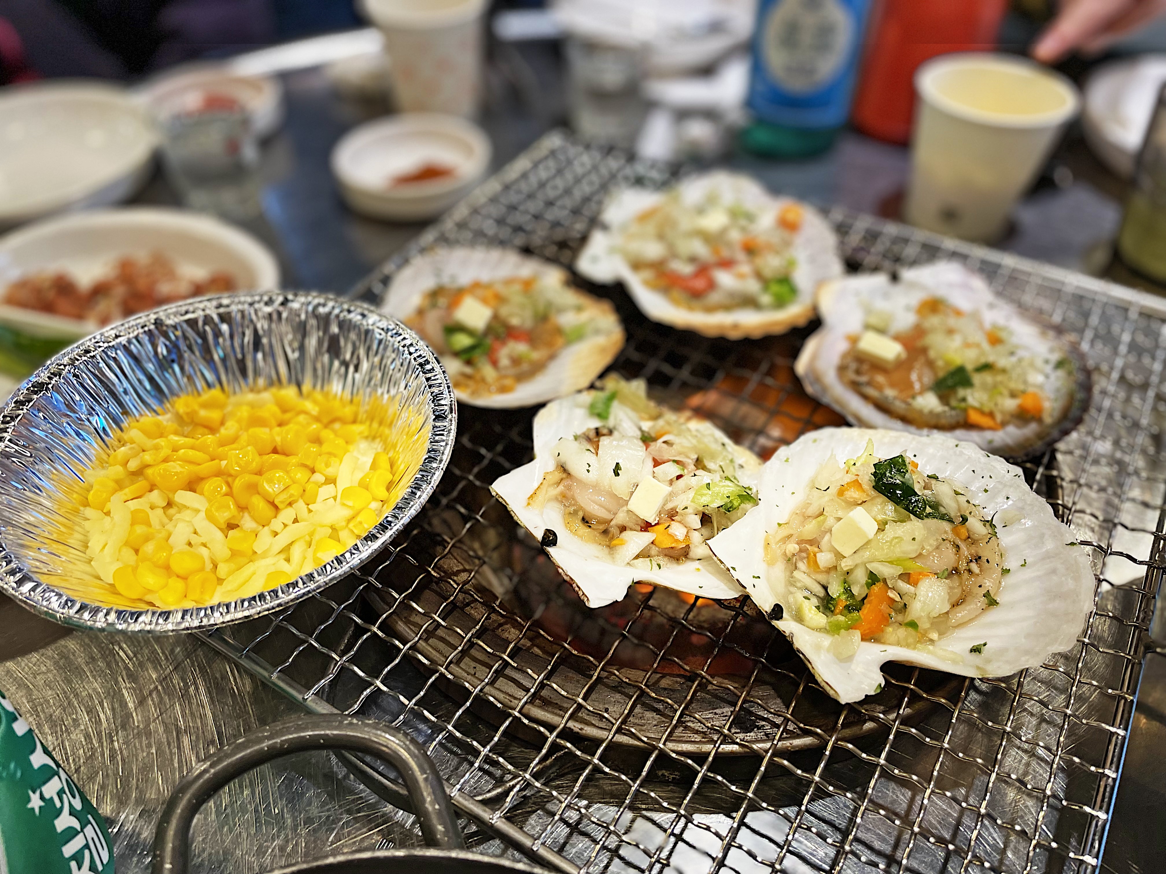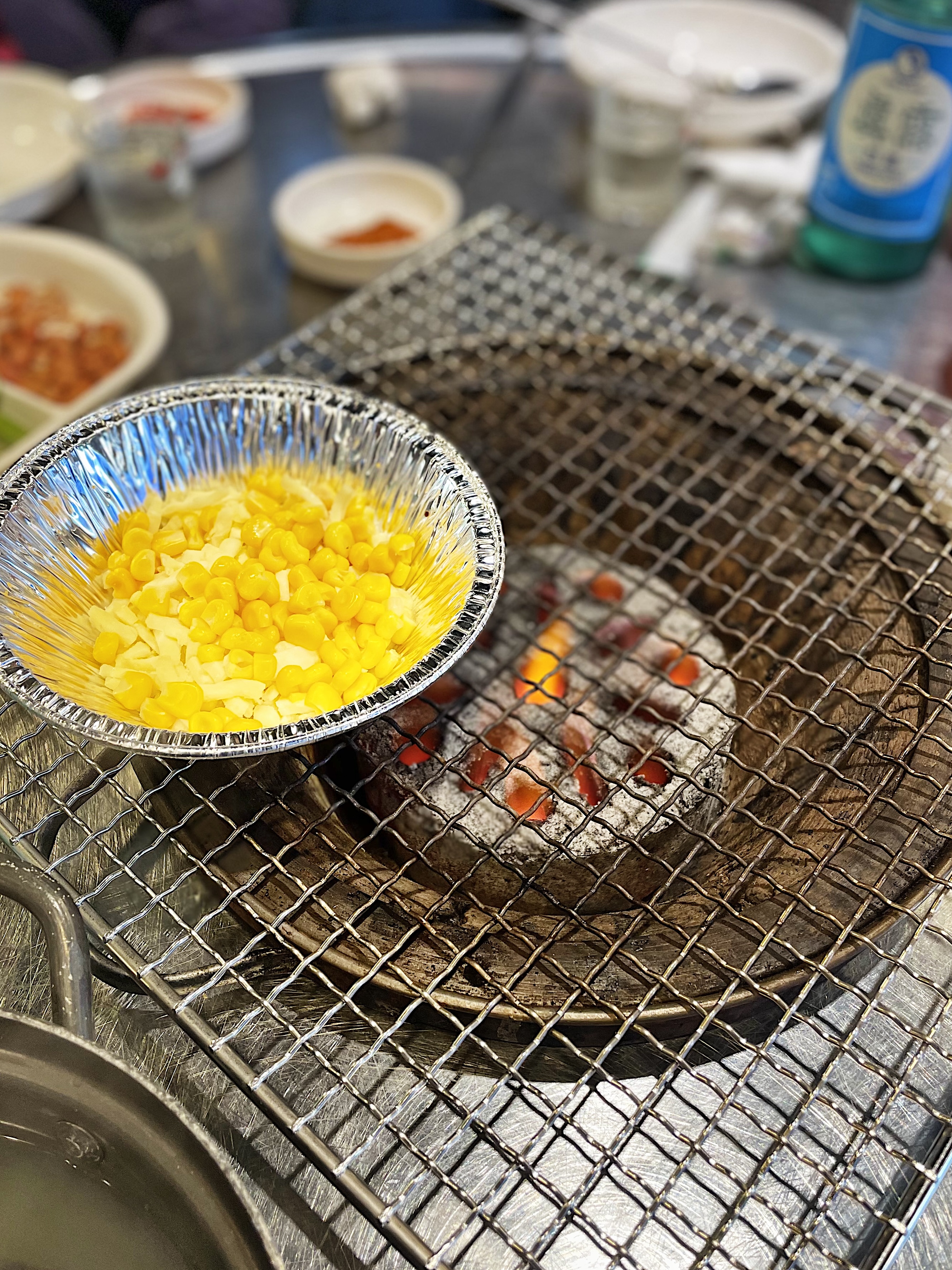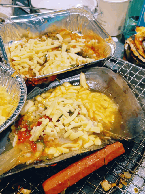 셀프바에는 옥수수콘과 치즈도 있기 때문에 치즈를 원 없이 가져와서 구워진 조개구이 위에 올려 먹을 수 있습니다.