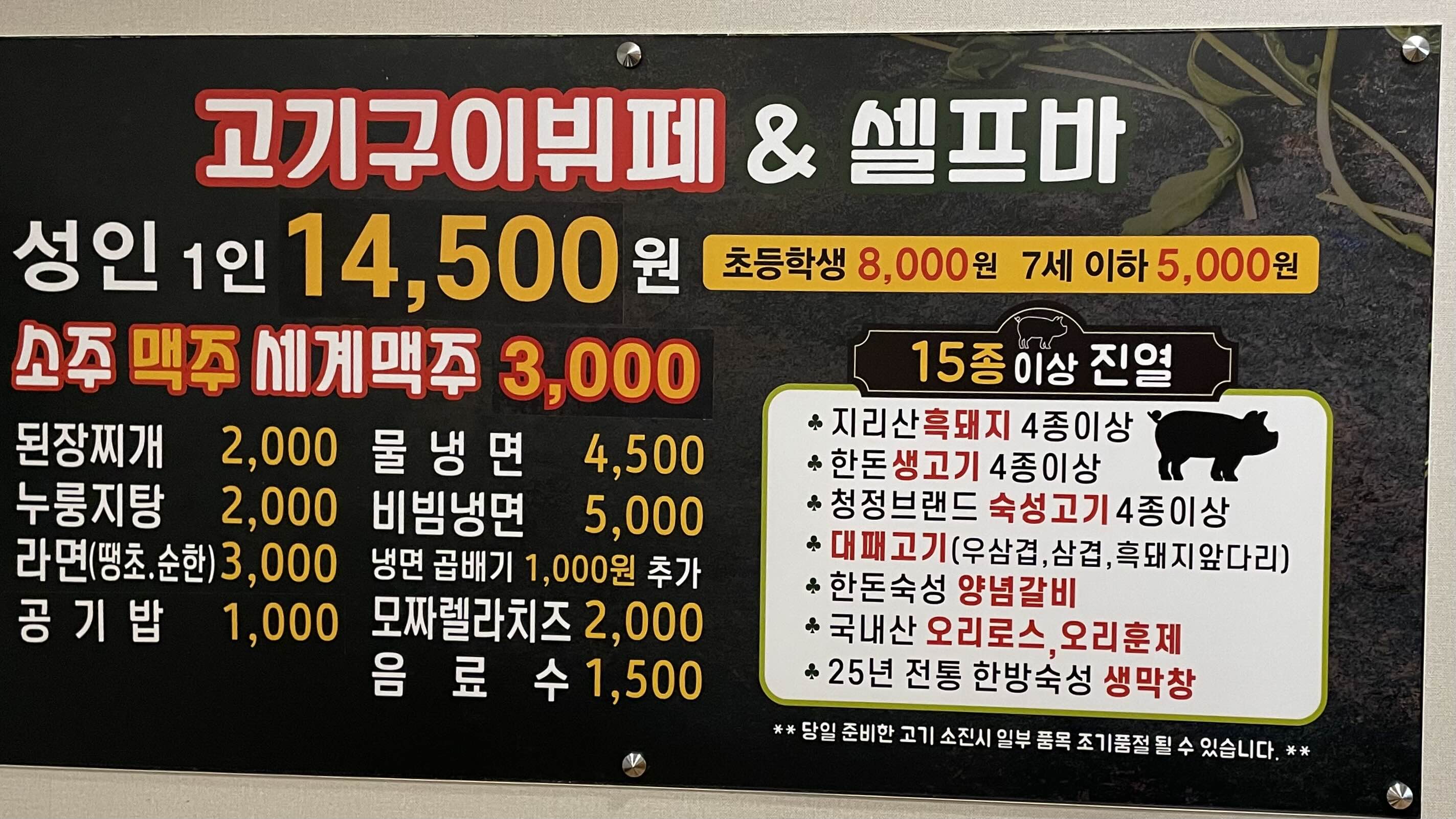 14,500원 무한리필이라는 걸 감안한다면 상당히 괜찮은 식당이라고 느껴졌습니다.