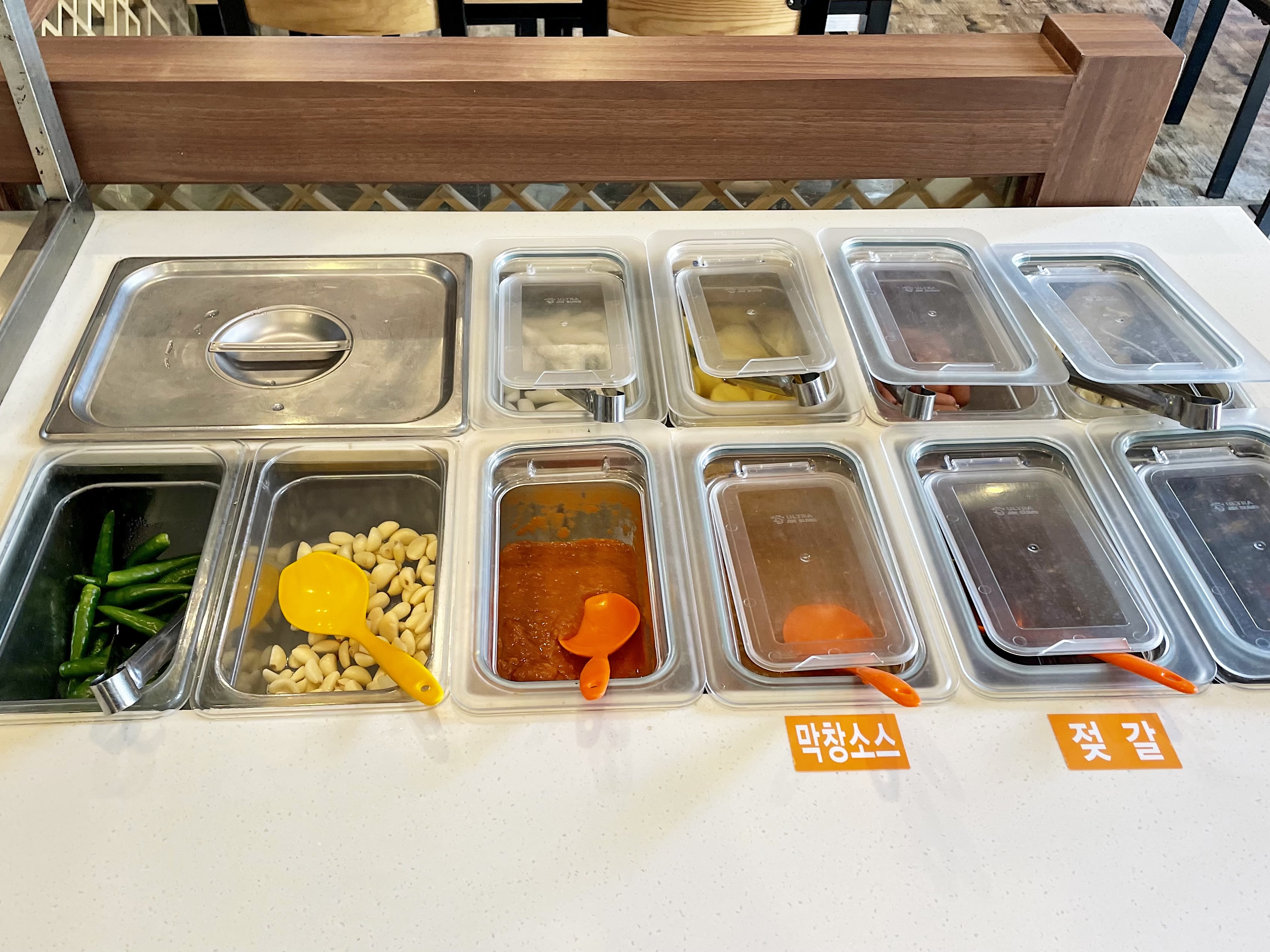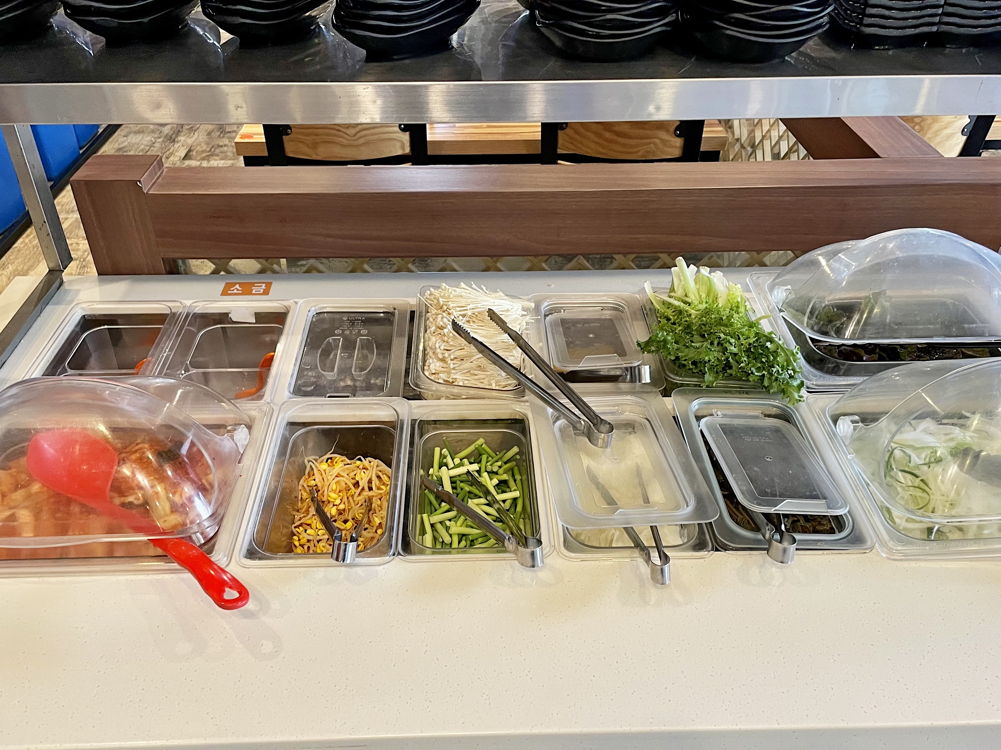 야채와 소스 등 필요한 모든 재료는 셀프바에서 직접 가져와서 차려서 먹으면 됩니다.