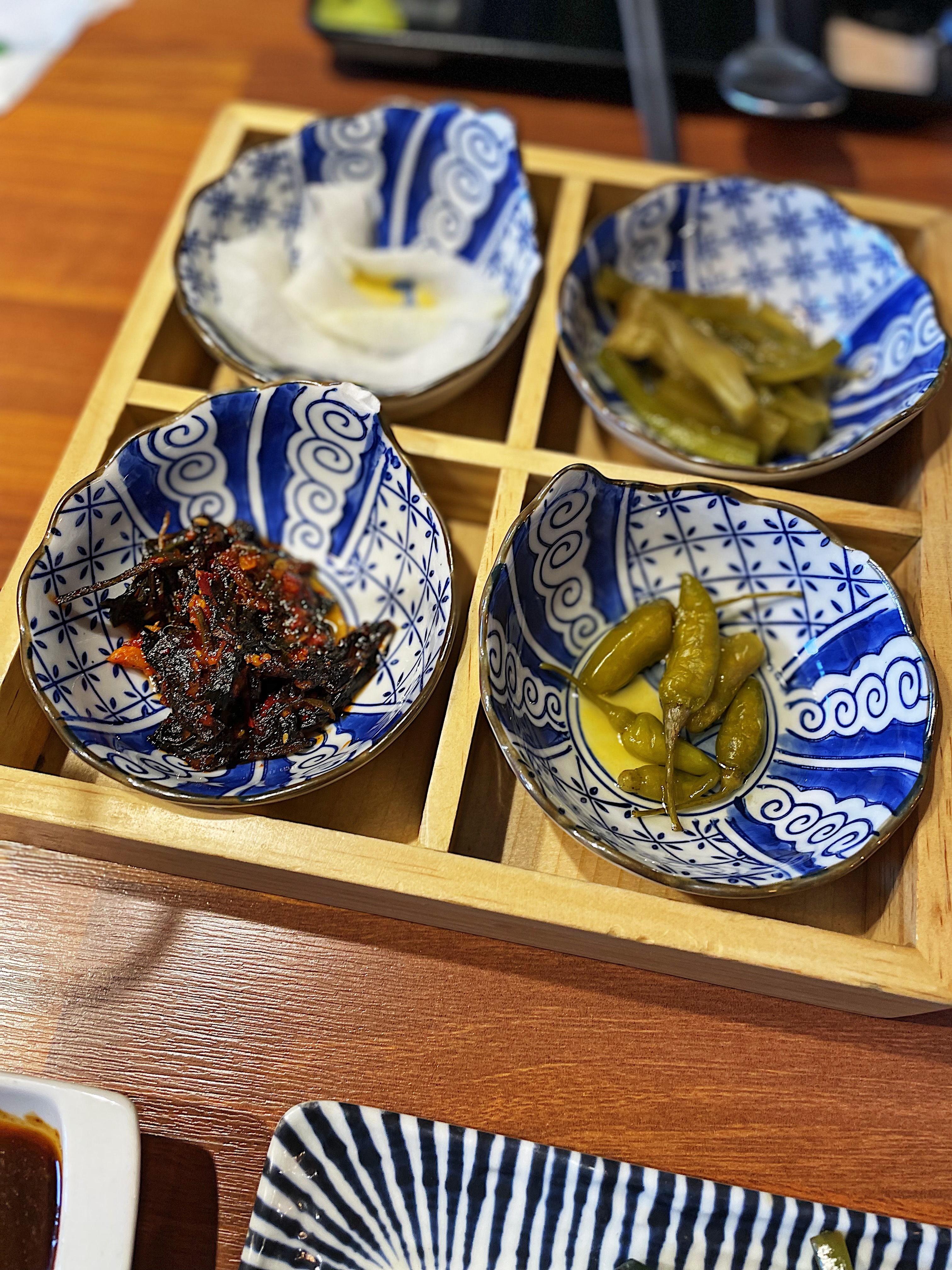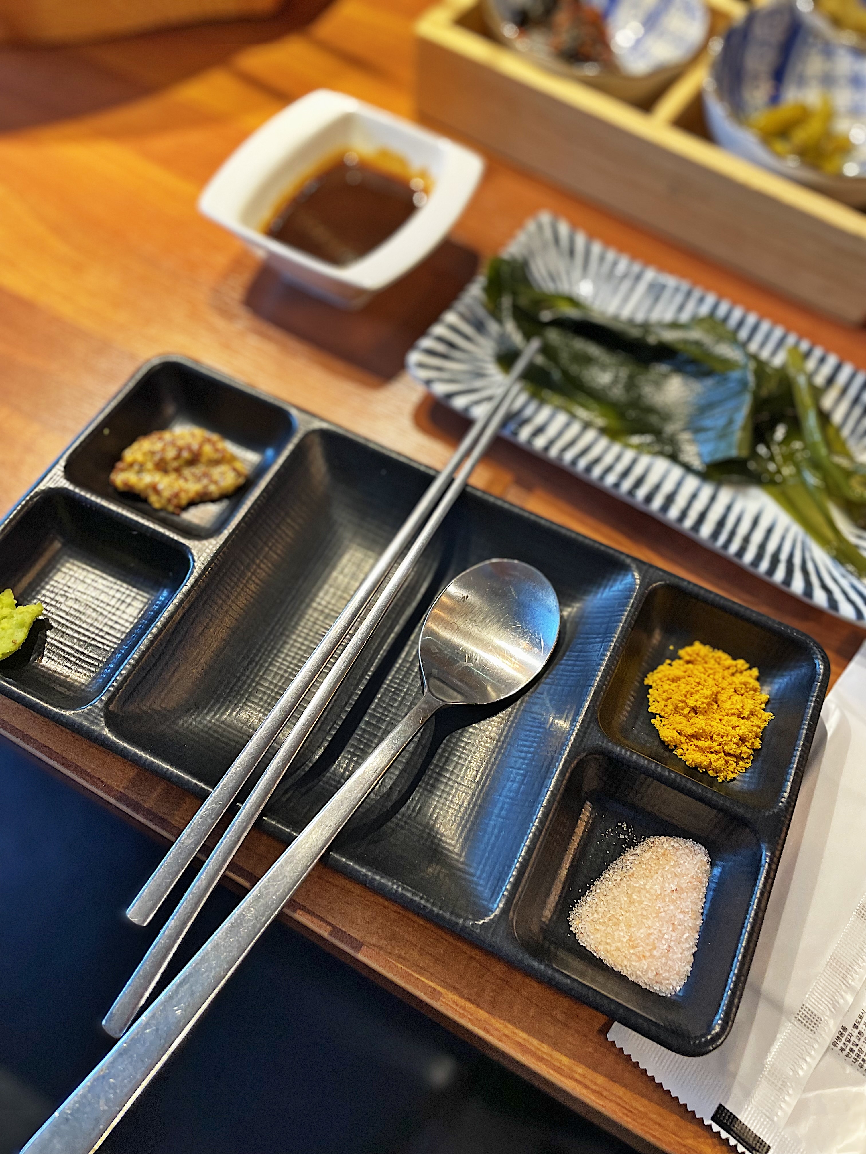개인 앞접시에는 가운데 고기를 담는 공간과 좌우 4칸에는 다양한 소스가 담겨져 있어 아주 마음에 들었습니다.