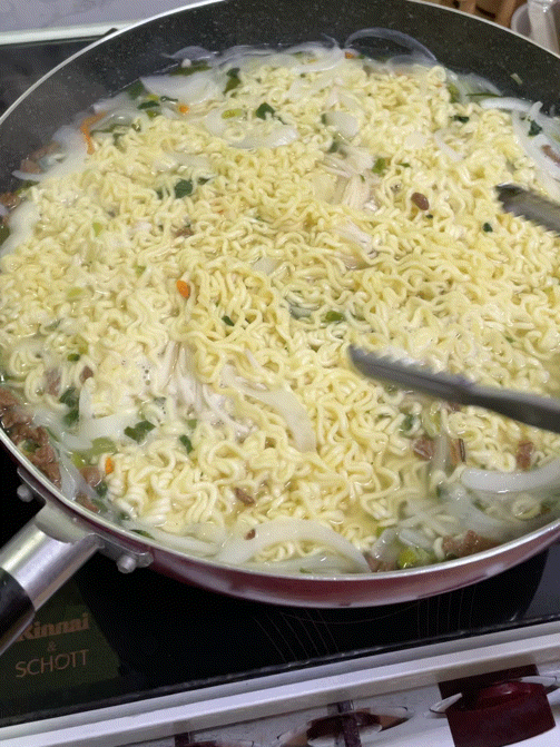 라면은 한 번씩 들어서 찬바람 쐬어주면 면이 꼬돌꼬돌해진다고 하는데 솔직히 차이는 잘 모르겠습니다.ㅋ