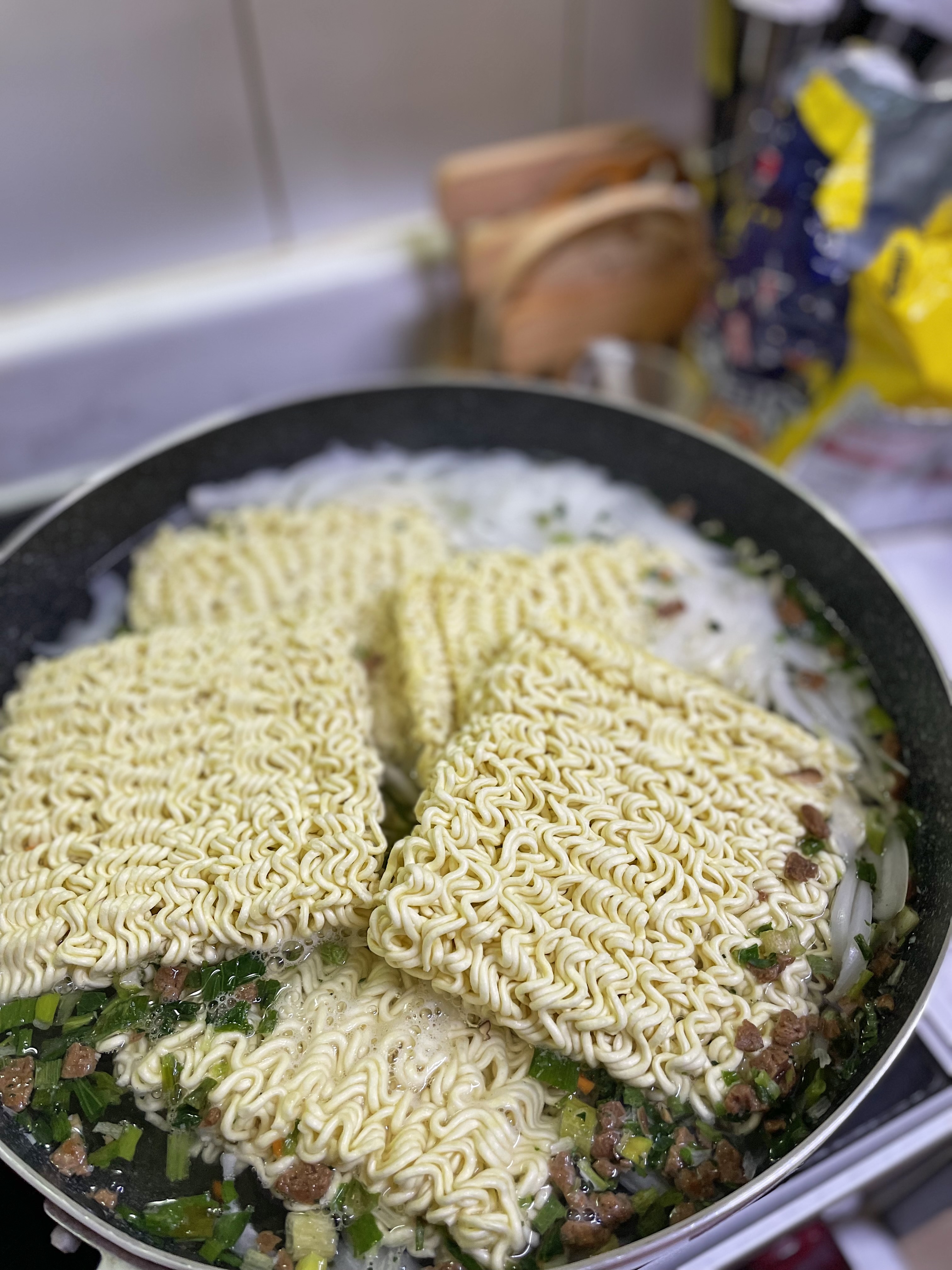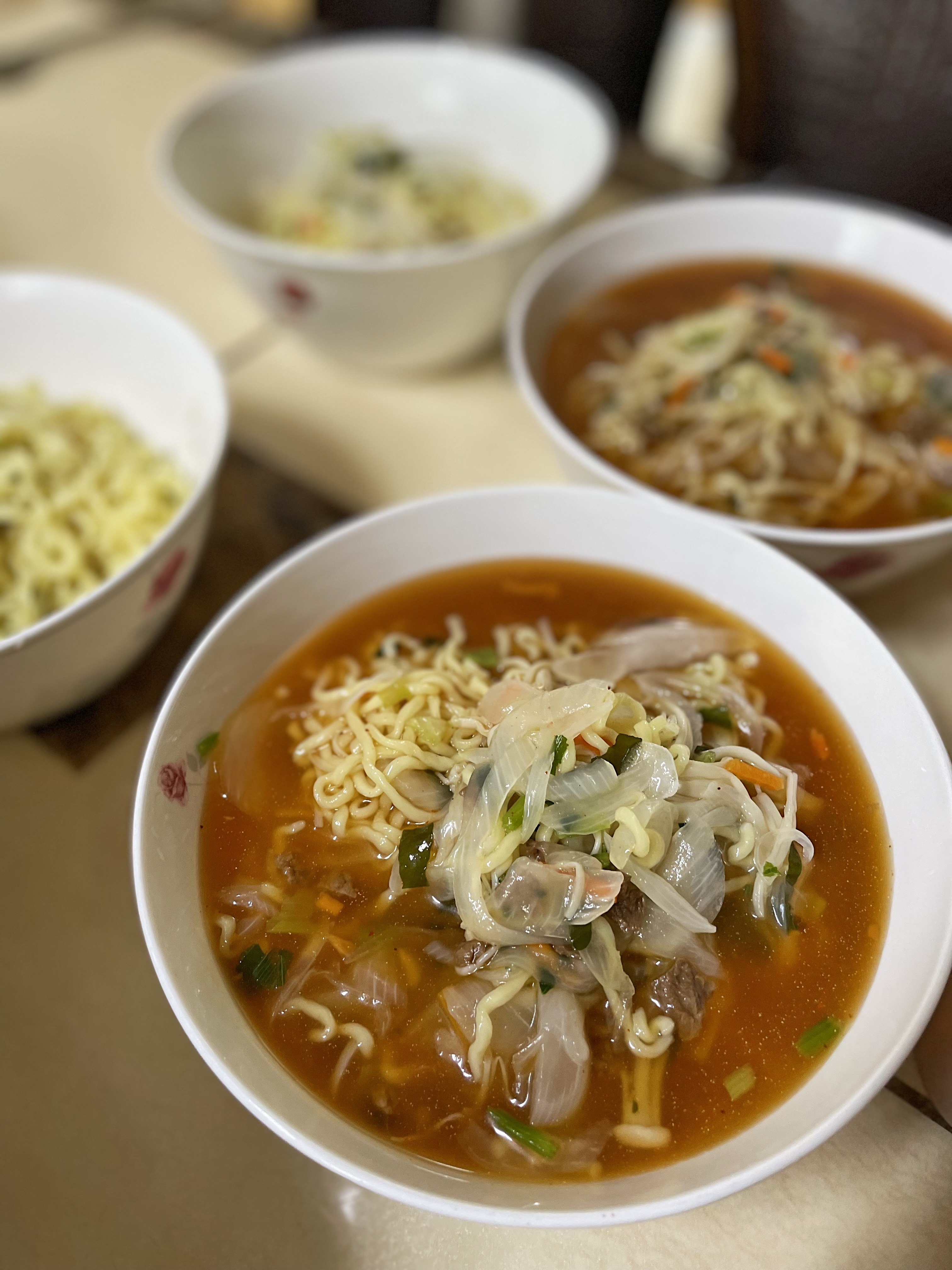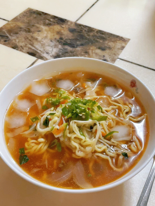 - 필수재료 : 진라면(1개), 콩나물(한 줌), 양파(1/6개), 얼음