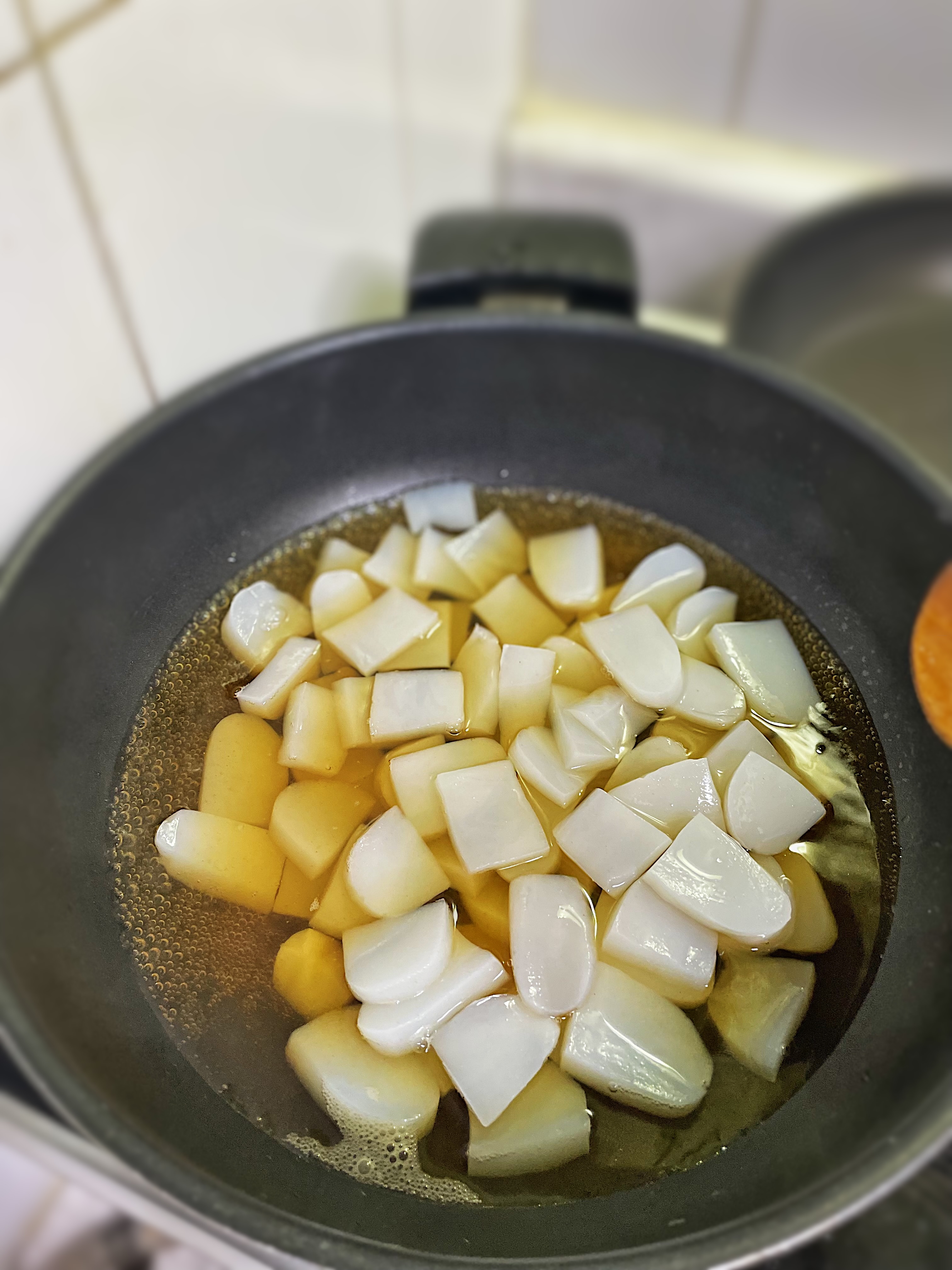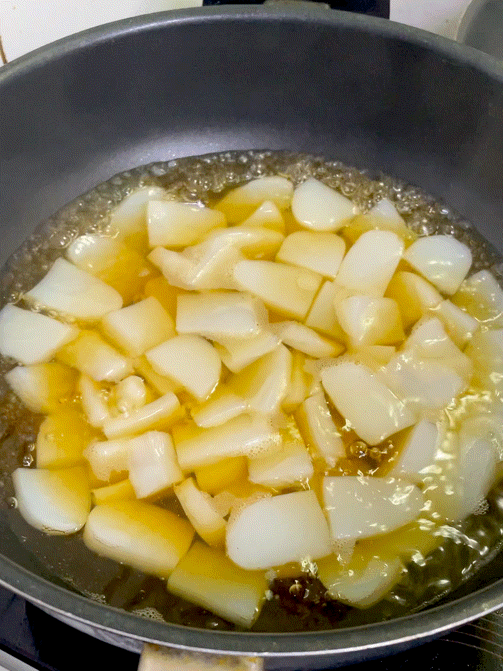 언뜻 보면 키조개 관자 같기도 하고, 감자조림 같기도 하네요.