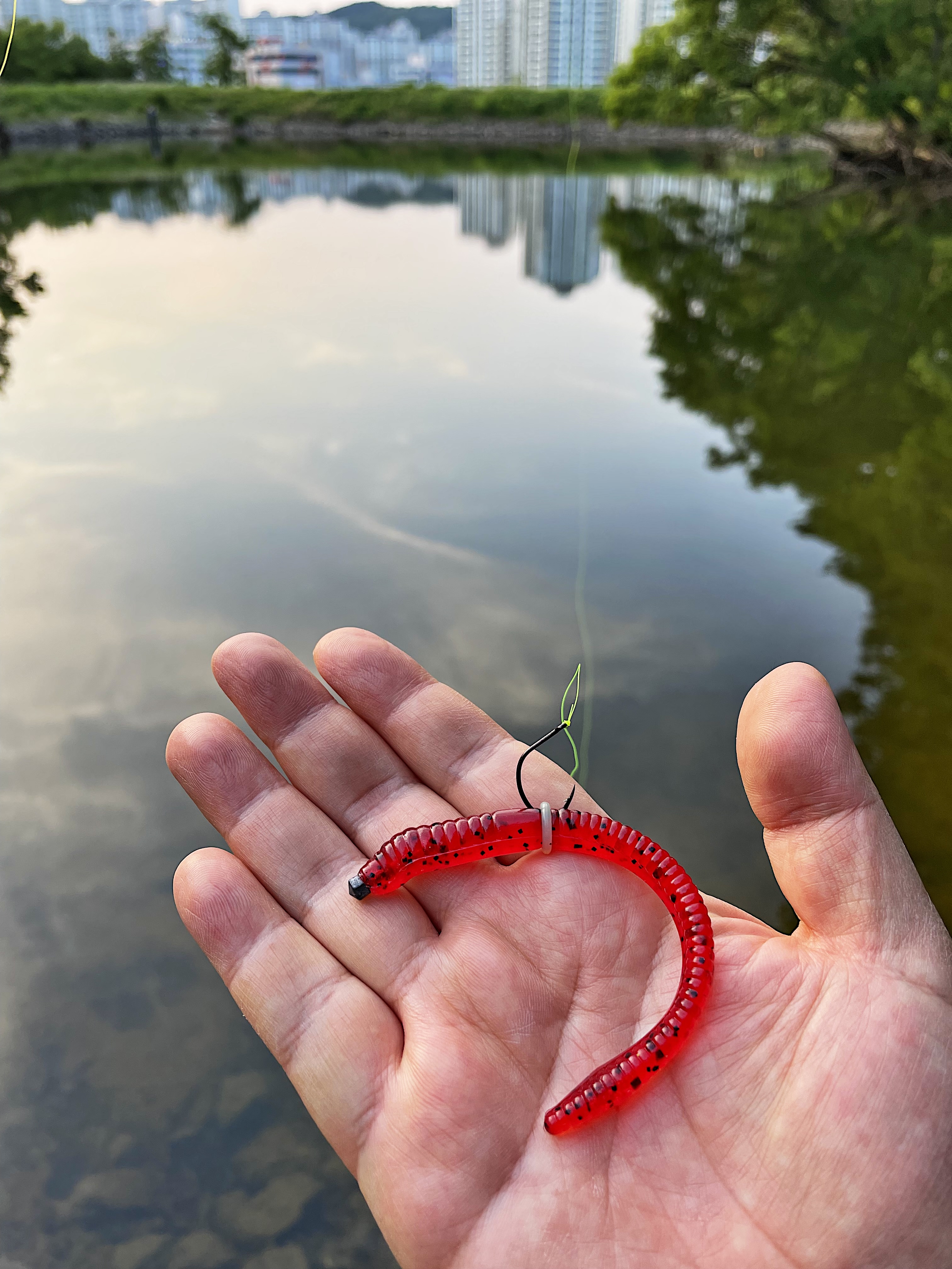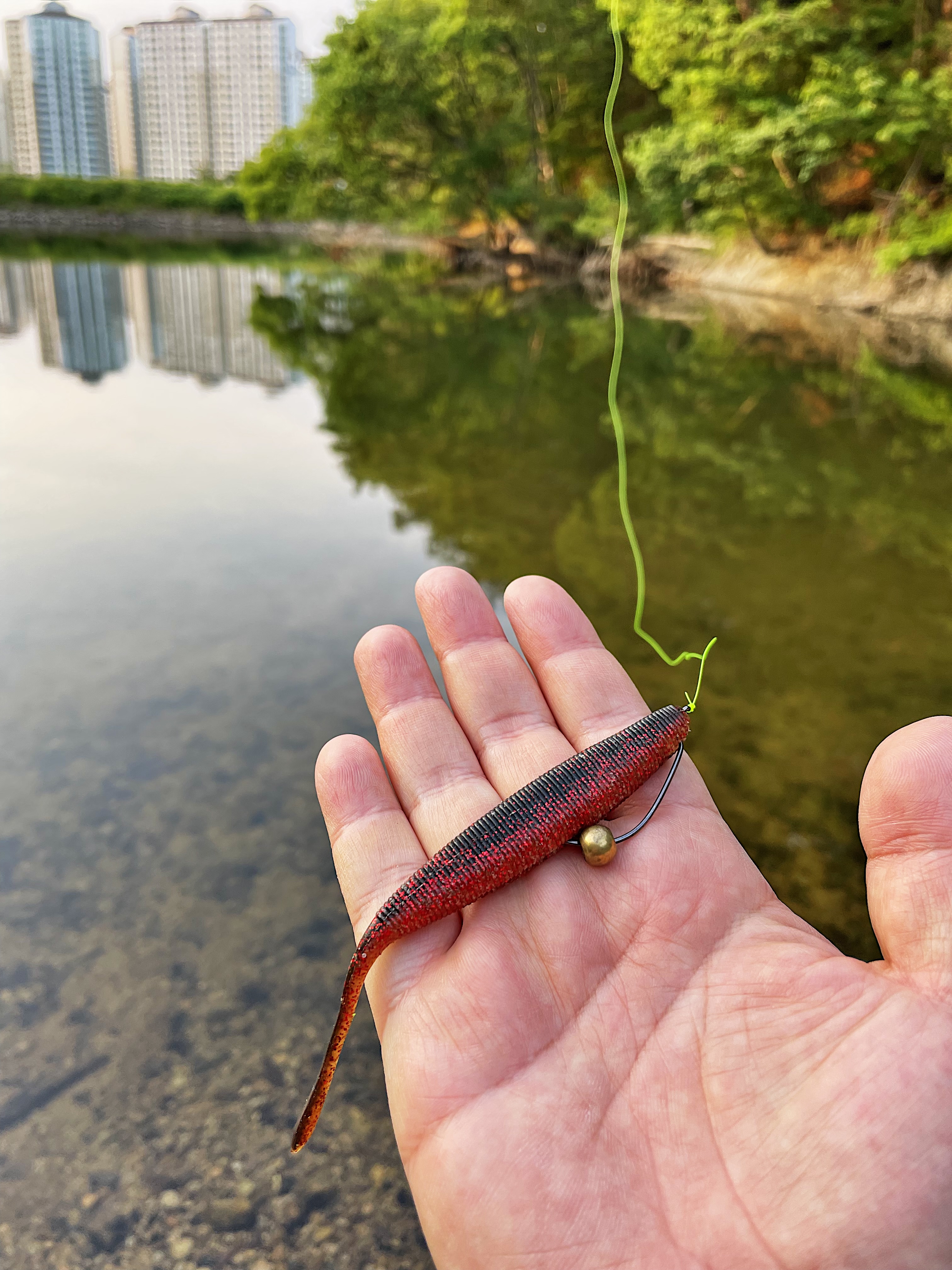 움직이는 모습을 영상으로 담아보려 했는데 혼자 폰으로 찍고 루어까지 움직이려니 쉽지 않네요.