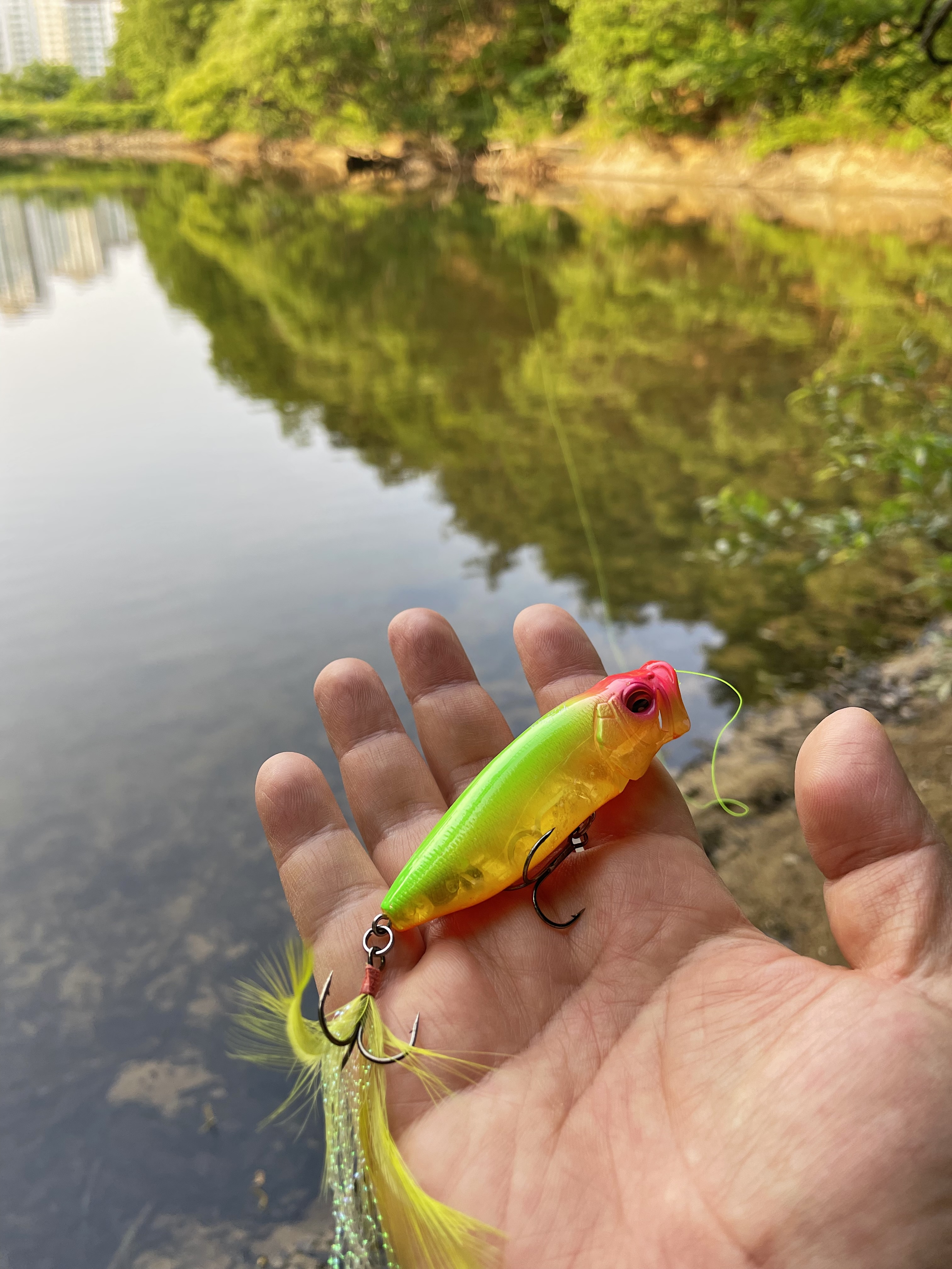 탑워터 루어로 공략해 보았지만 반응이 없었습니다.