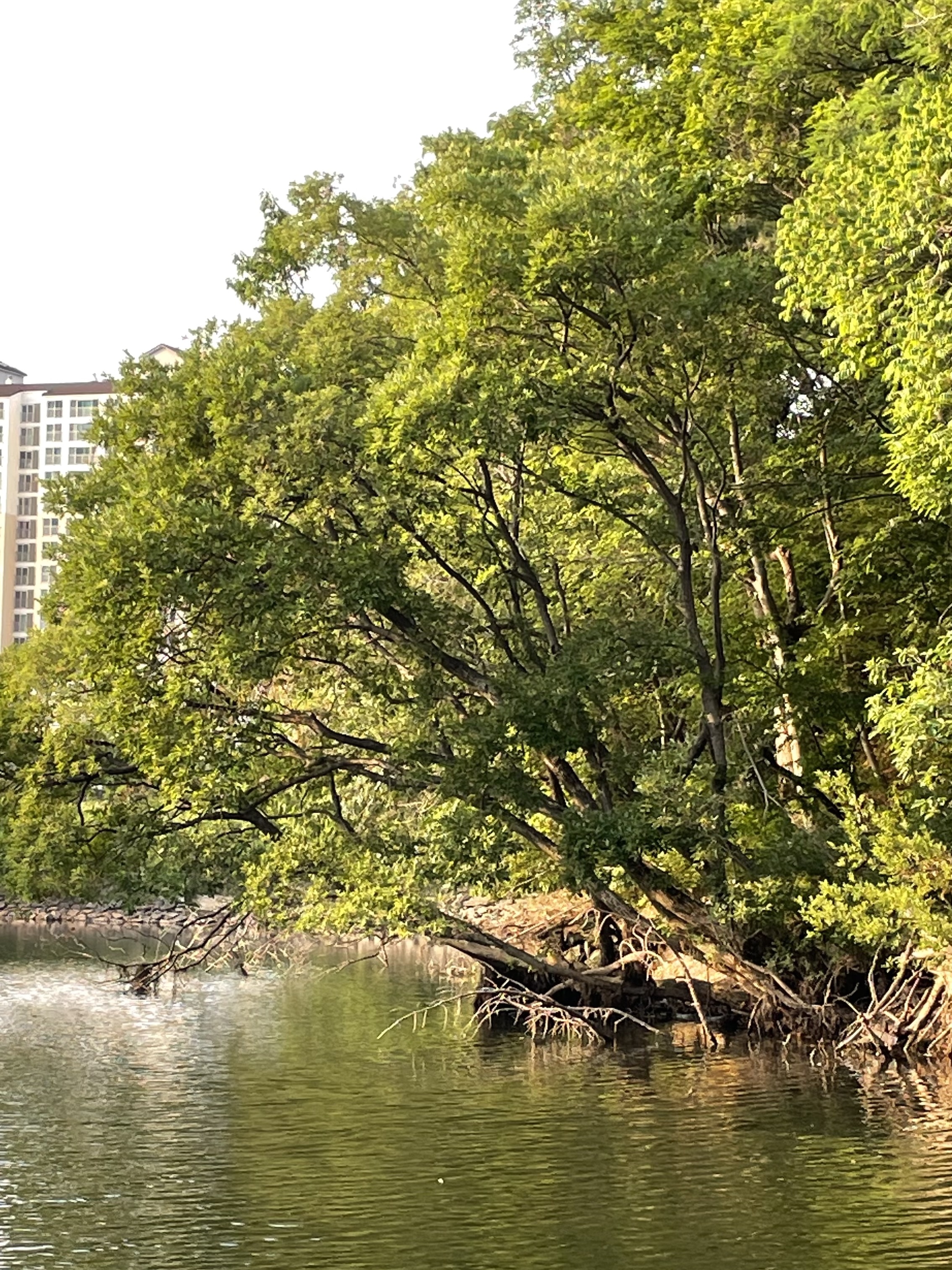 나무 아래 깊숙히 던지려다 나무에 루어가 걸리면 이렇게 수면에 살짝 담궜다 뺏다 하면