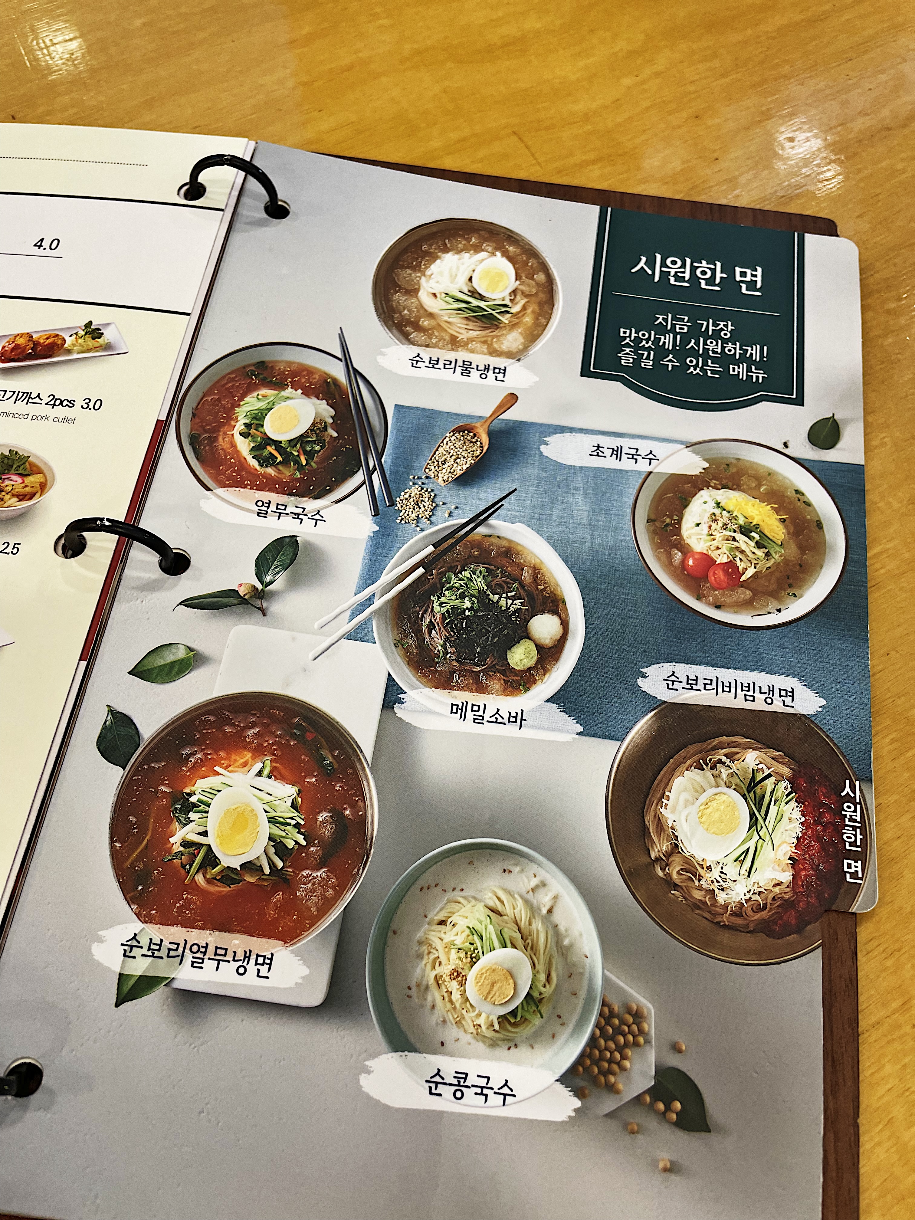메뉴판에는 시원한 면만 따로 한 페이지를 만들어 고객들이 쉽게 고를 수 있도록 마련해 놓았습니다.