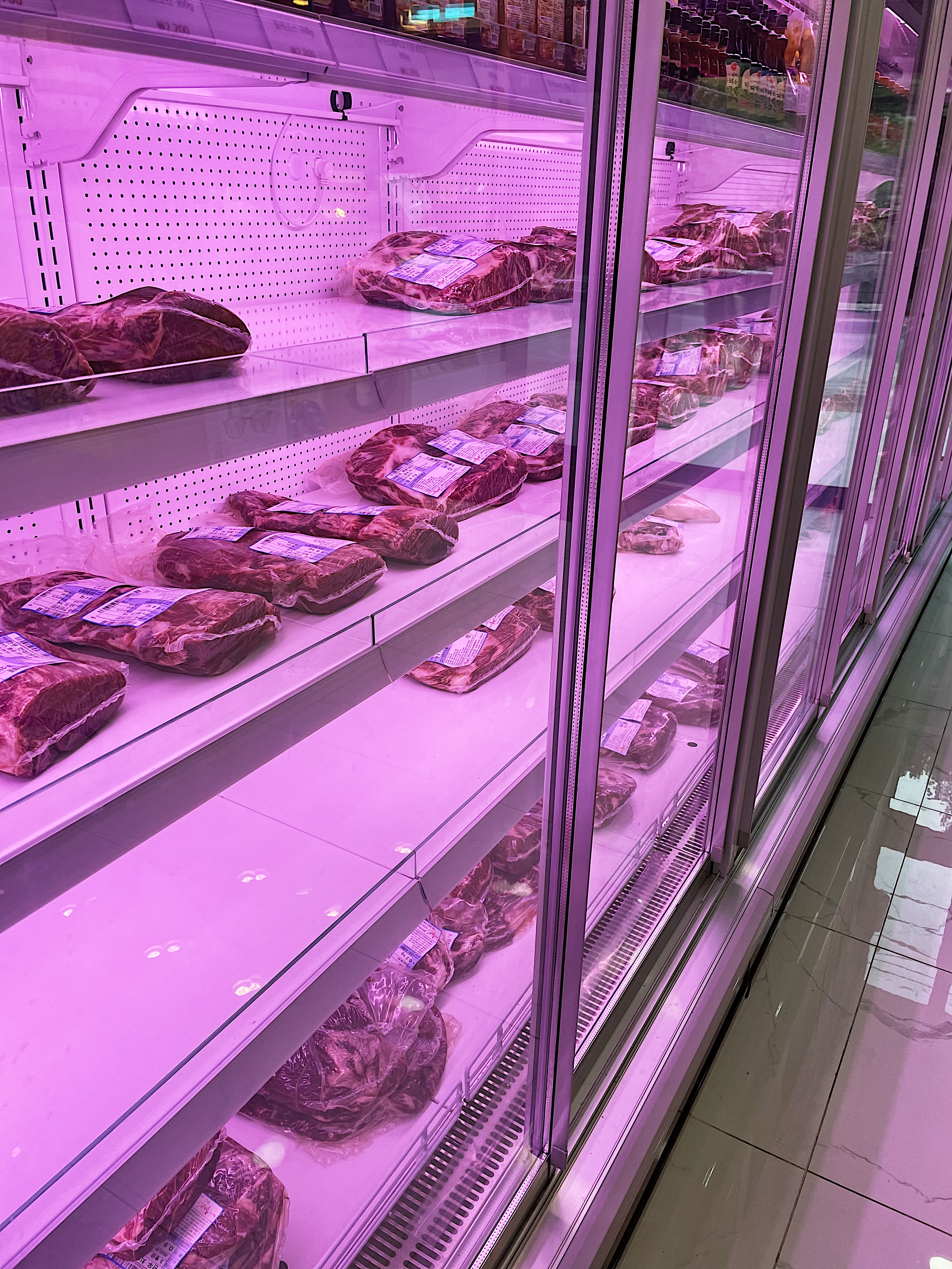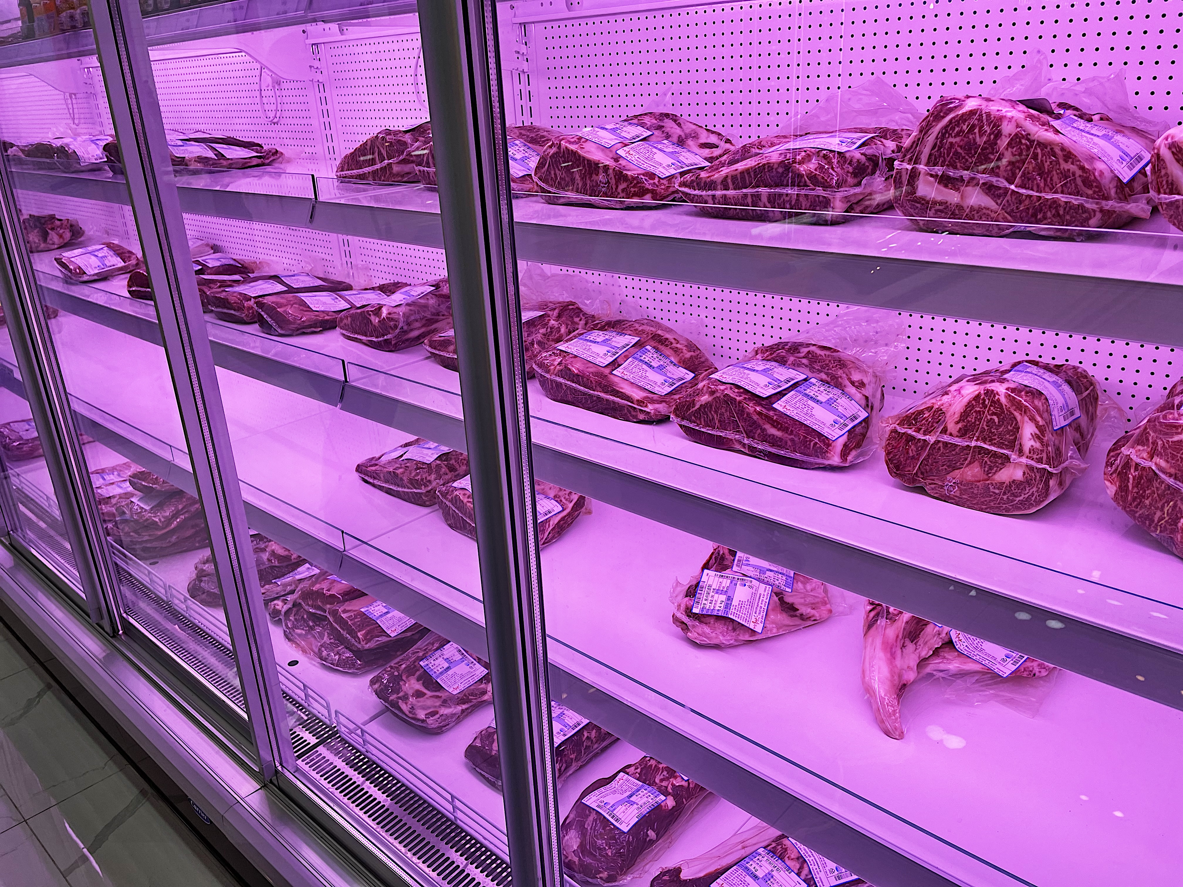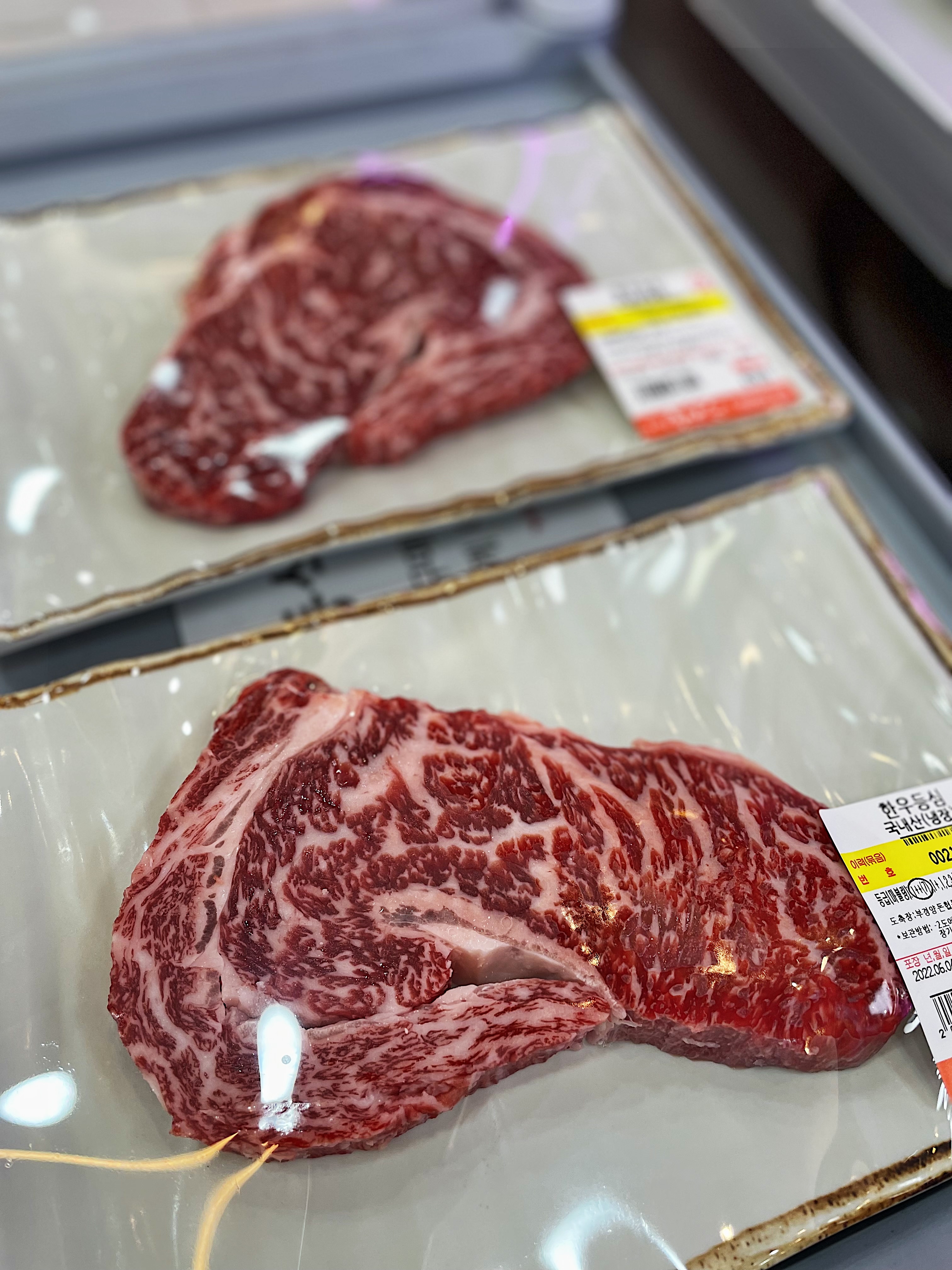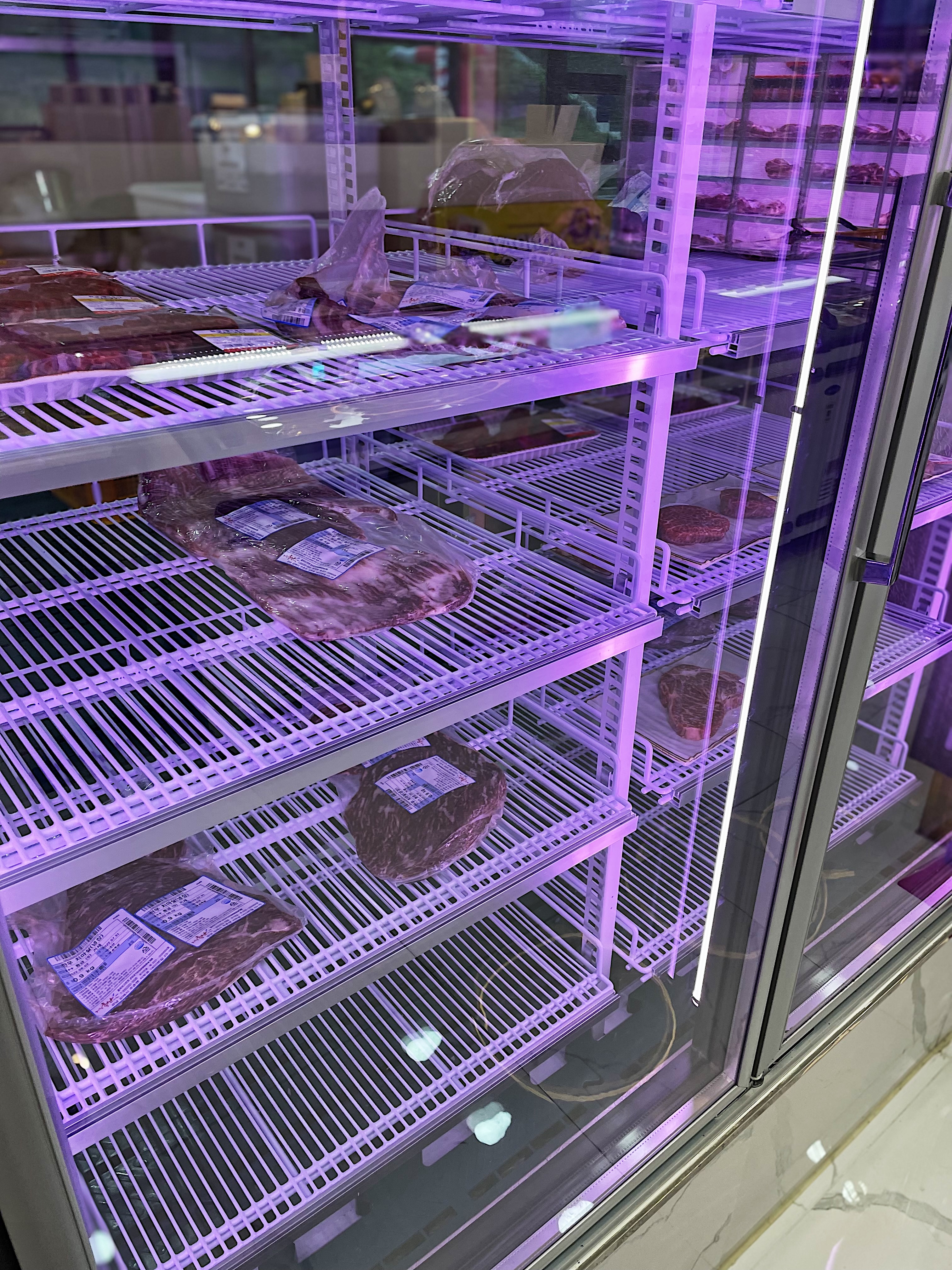 가게에 들어서자 다양한 한우가 냉장고 속에 자리를 잡고 있었고, 정면에는 직접 가공하고 있는 모습도 볼 수 있었습니다.
