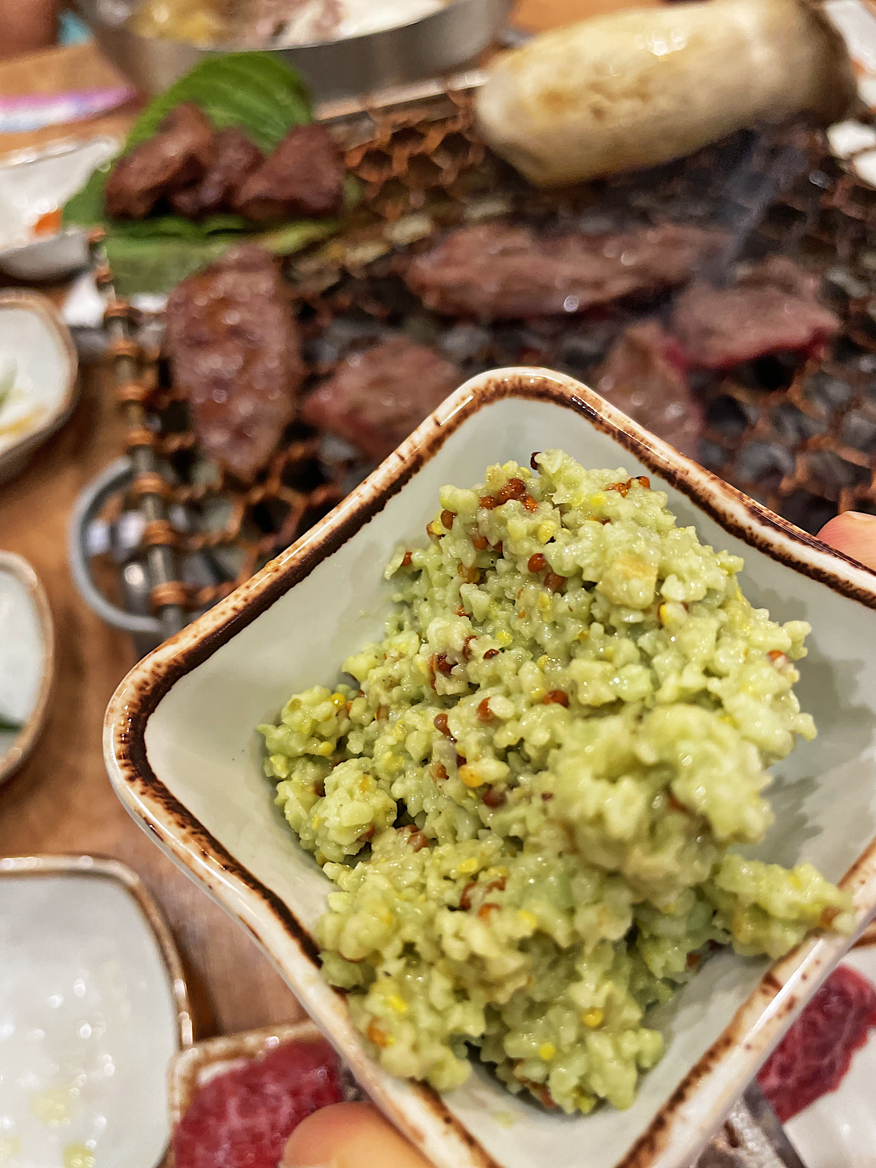 홀그레인 머스터드에 보이는 겨자씨가 와사비 중간중간 섞여 있었습니다.