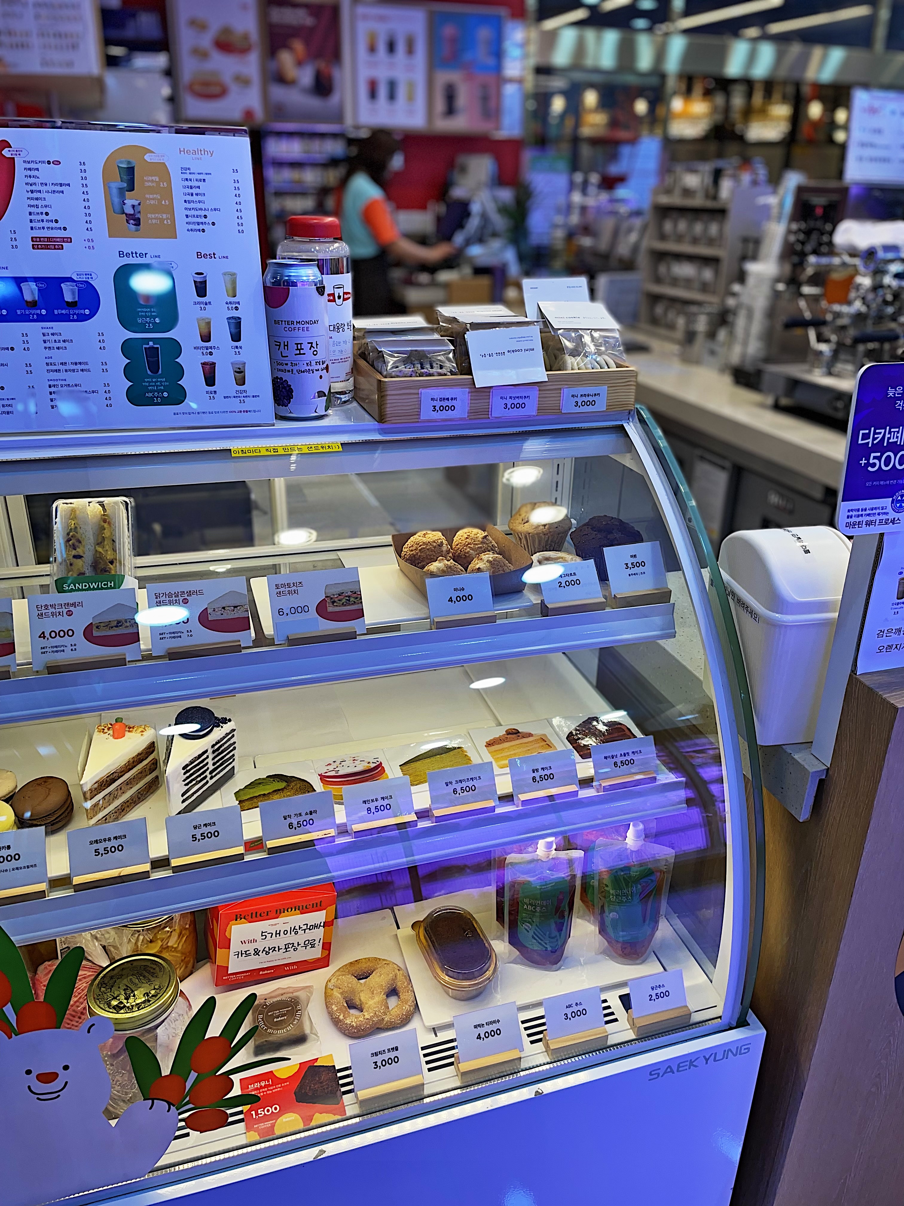 특이하게 진열공간 한편에는 카페도 운영하고 있어 커피나 음료, 그리고 여러 디저트 종류도 취급하고 있었답니다.