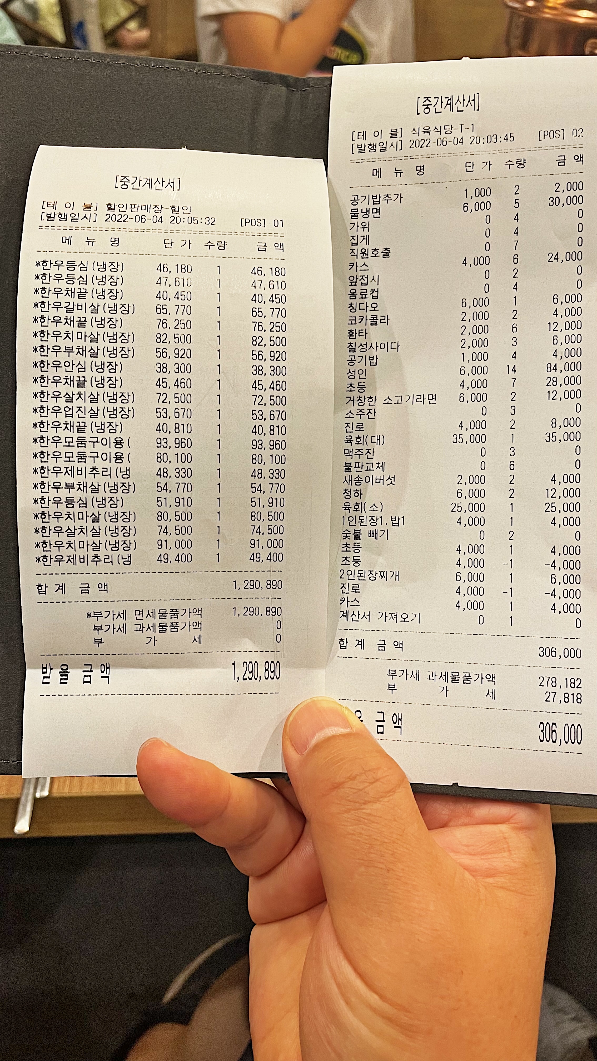 약 160만 원 상당의 금액을 결제했으면 음료 가격 정도는 센스 있게 빼줄 줄 알았는데, 서비스라곤 수박밖에 못 받았다는 게 내심 섭섭한 마음이 들 수밖에 없었네요.