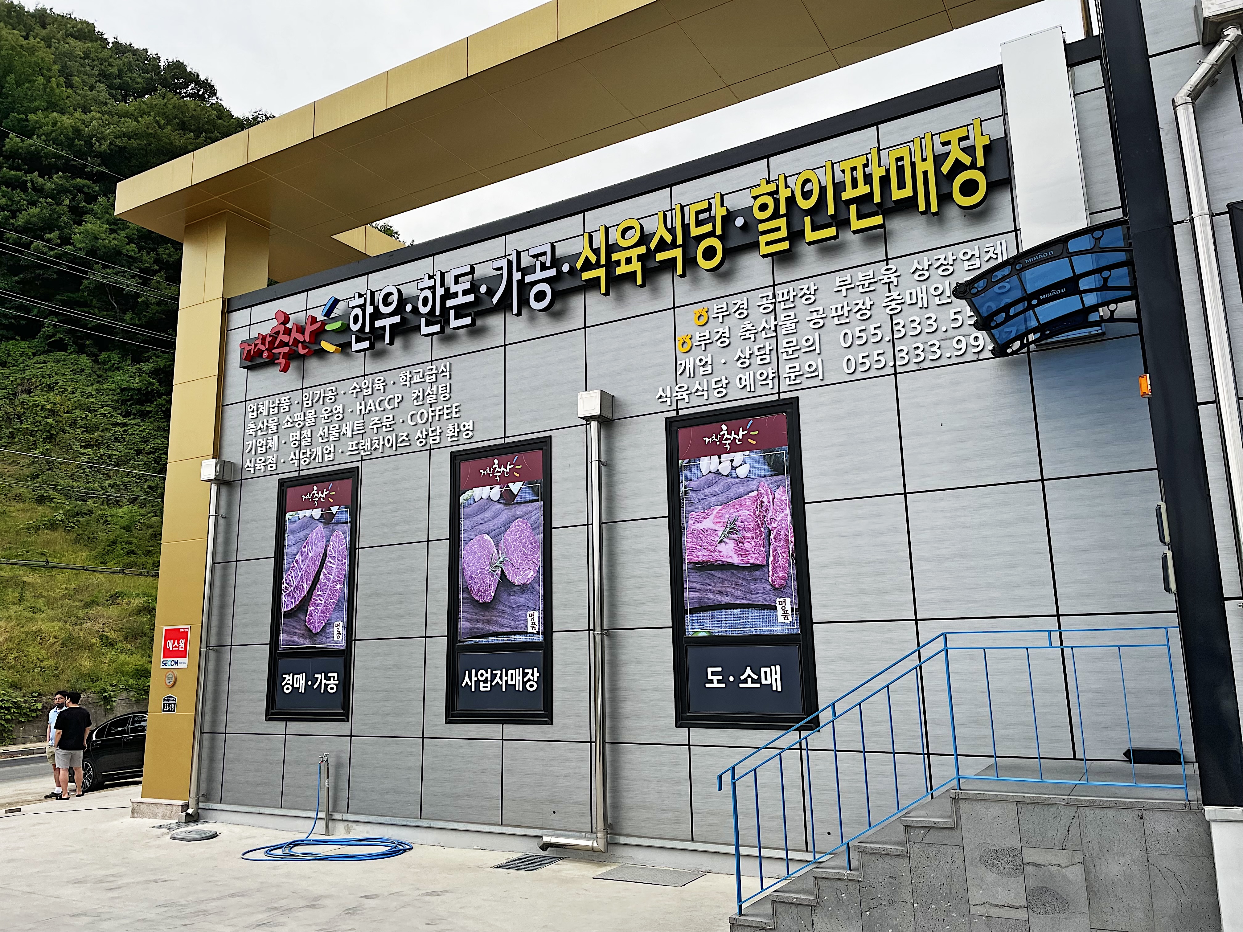 거창축산은 지은 지 얼마 안 된 것 같은 깔끔한 외관에 직접 가공도 하고, 도. 소매 판매뿐만 아니라,