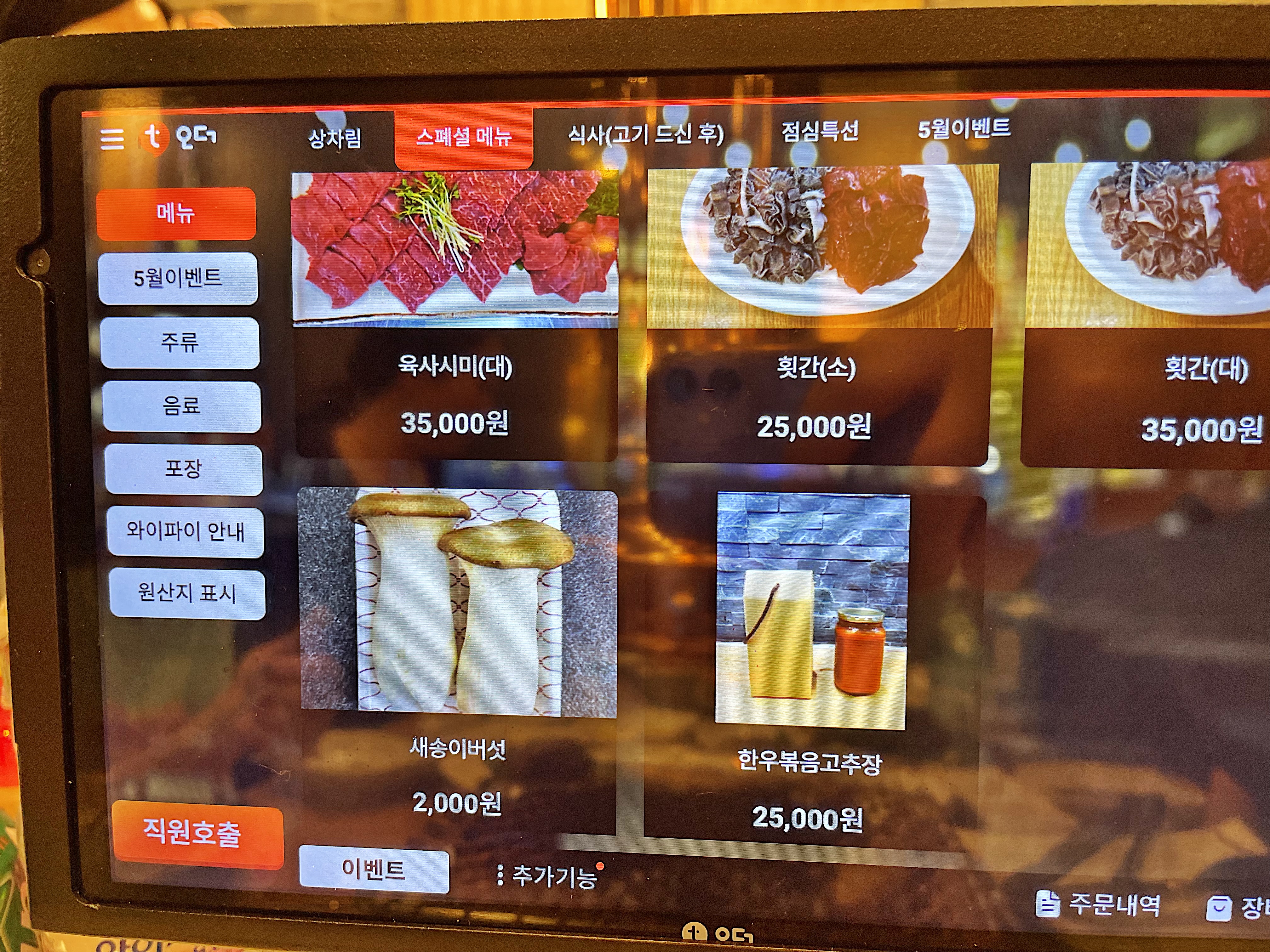 육회와 육사시미는 테이블 오더를 통해 주문 가능합니다.