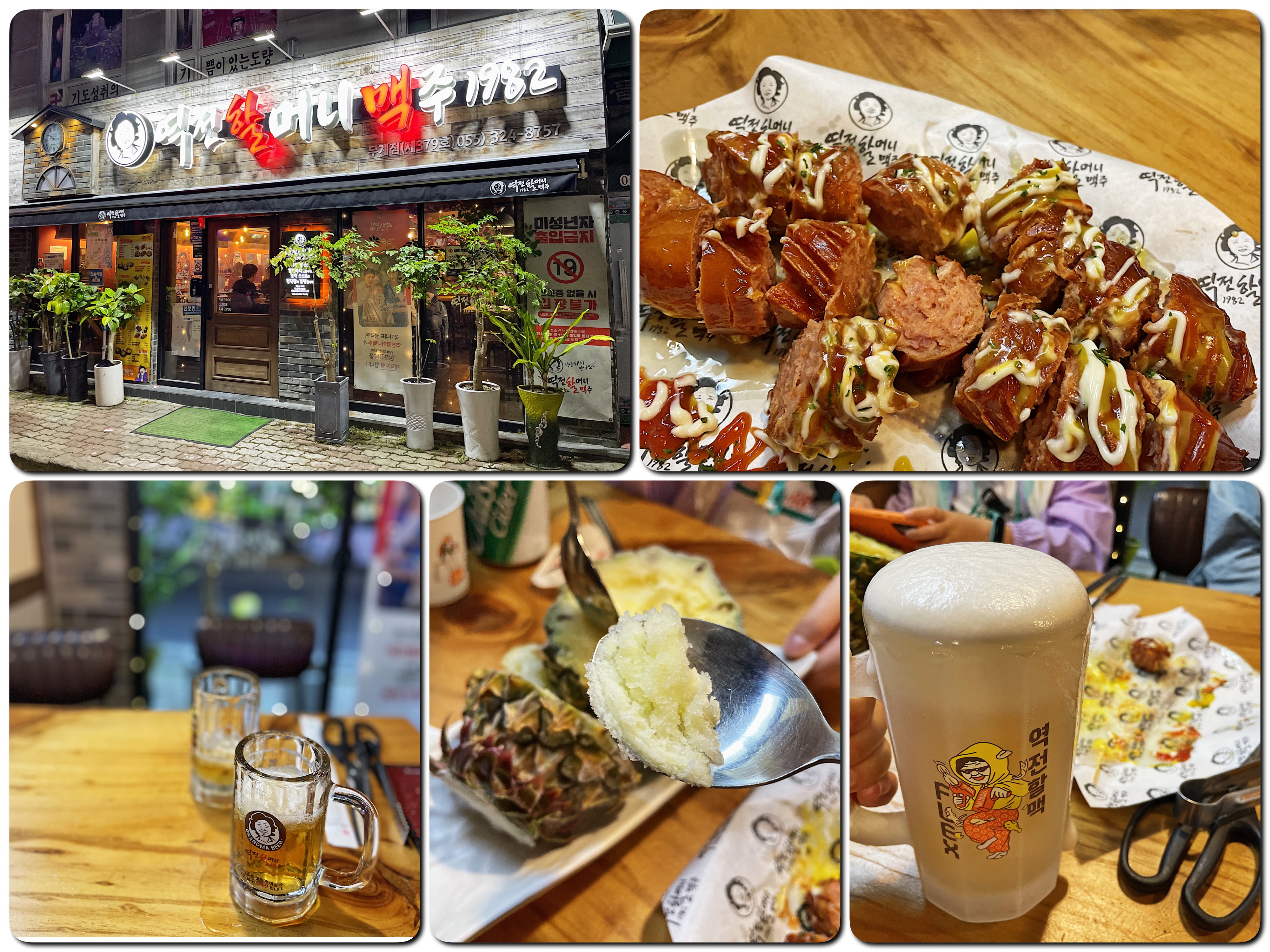 배가 불러 간단하게 수제소세지와 살얼음 파인애플, 그리고 역전할머니맥주의 시그니쳐 생맥주 할맥을 주문했습니다.