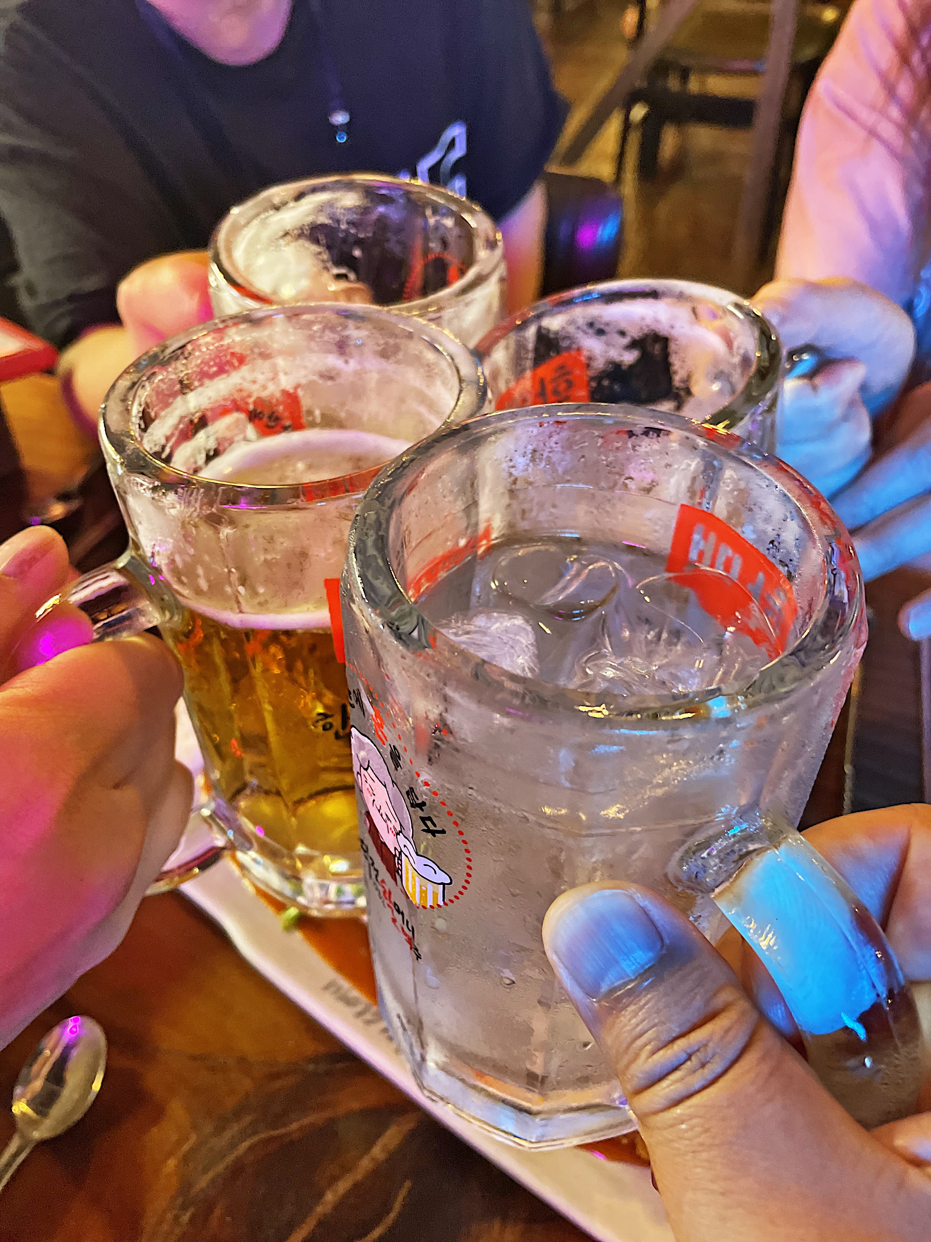 맥주잔까지 아주 제대로 히야시(?)가 되었습니다.