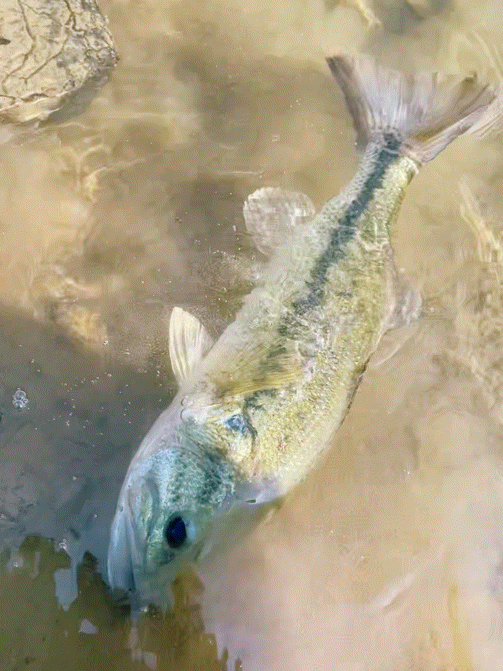 운 좋게 작은 배스 한 마리가 물고 나오다가 바늘털이 한 번에 훌러덩 빠져 버리네요.