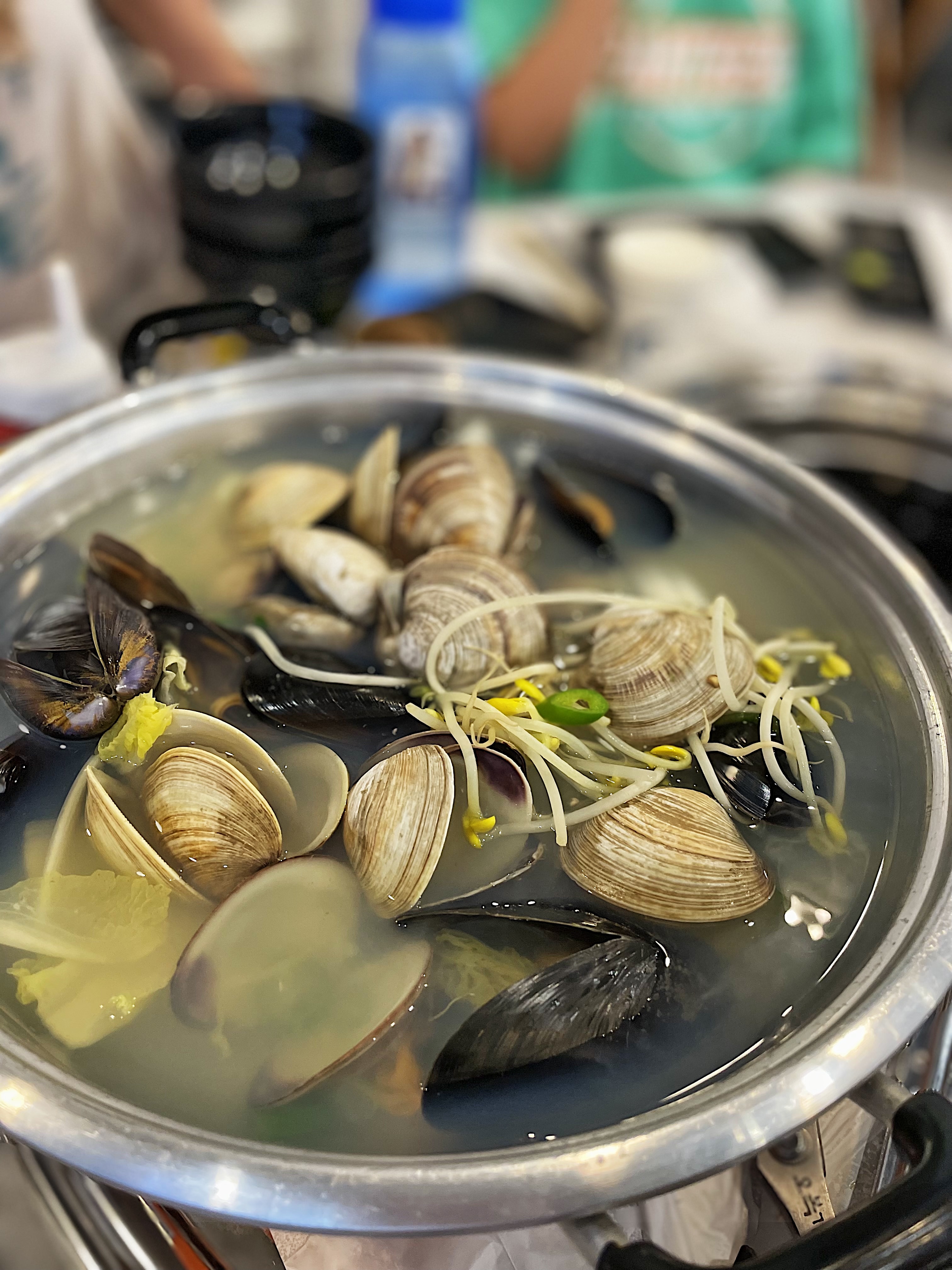 바지락, 홍합이 들어간 조개탕 하나만으로도 소주 몇 병은 거뜬하겠더라구요.