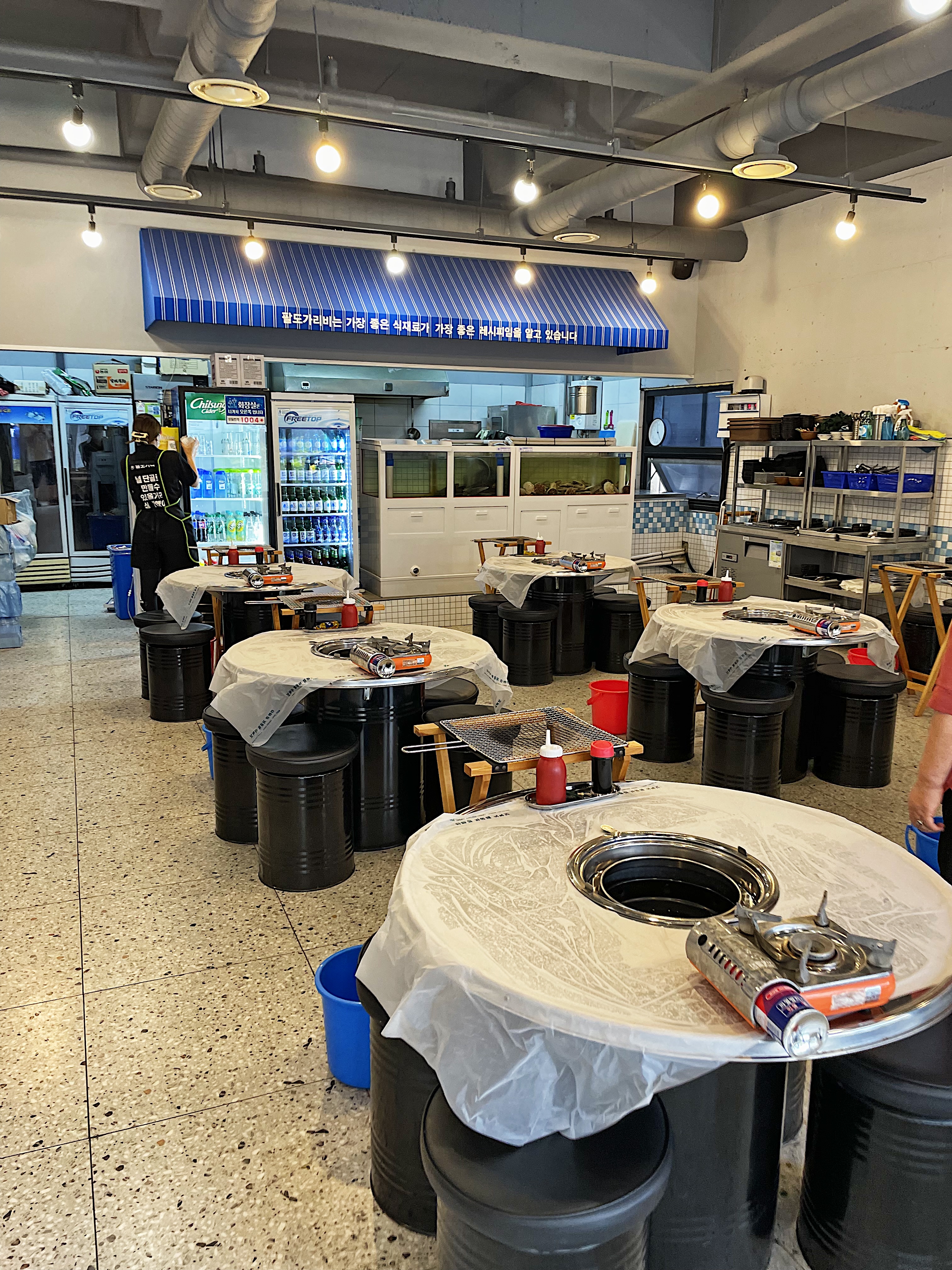 특이하게 수족관이 외부에 있지 않고 식당 내부에 있습니다.