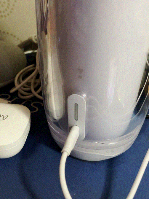 충전 중일 때는 흰색 LED 가 깜빡깜빡거립니다.