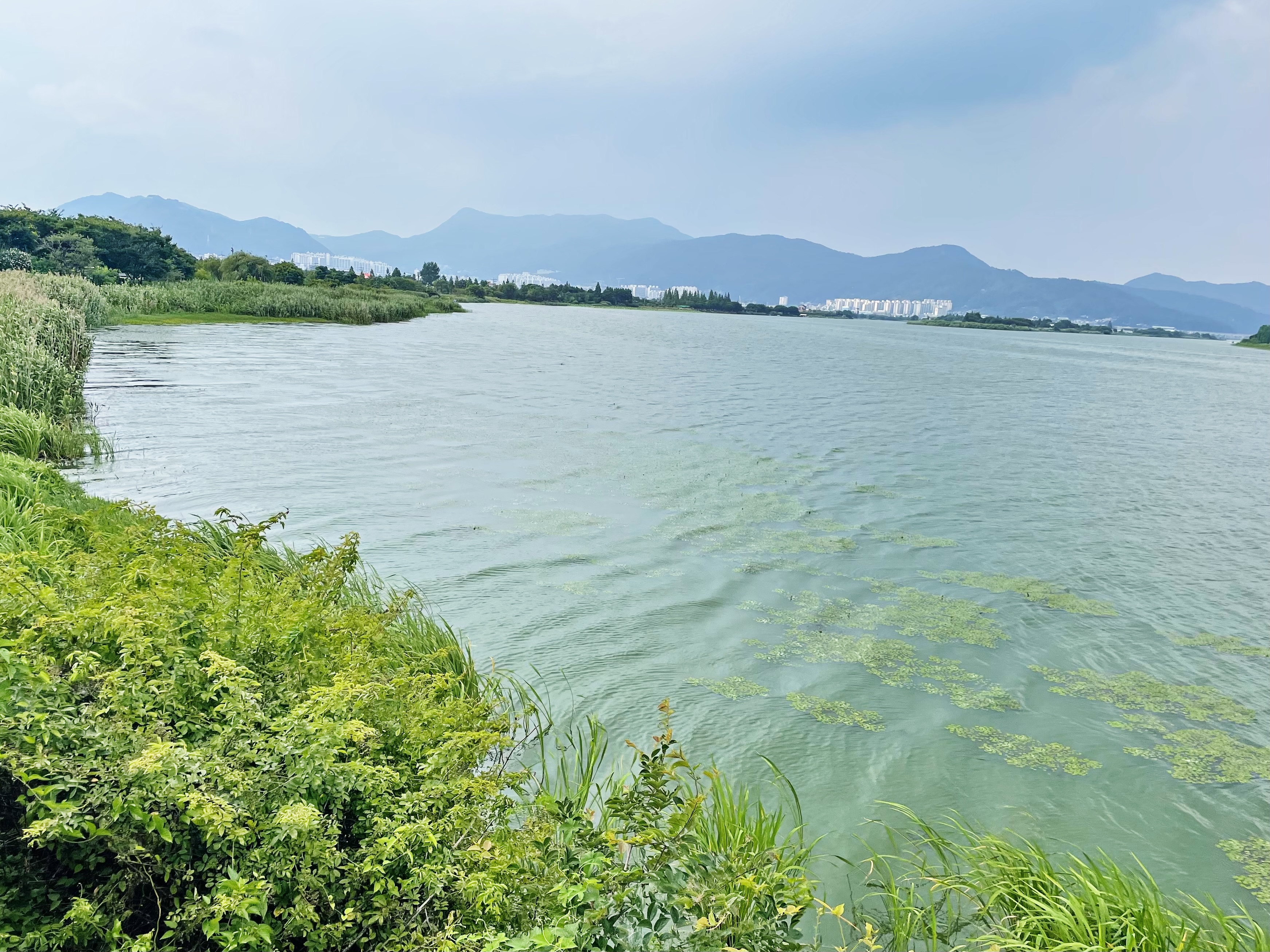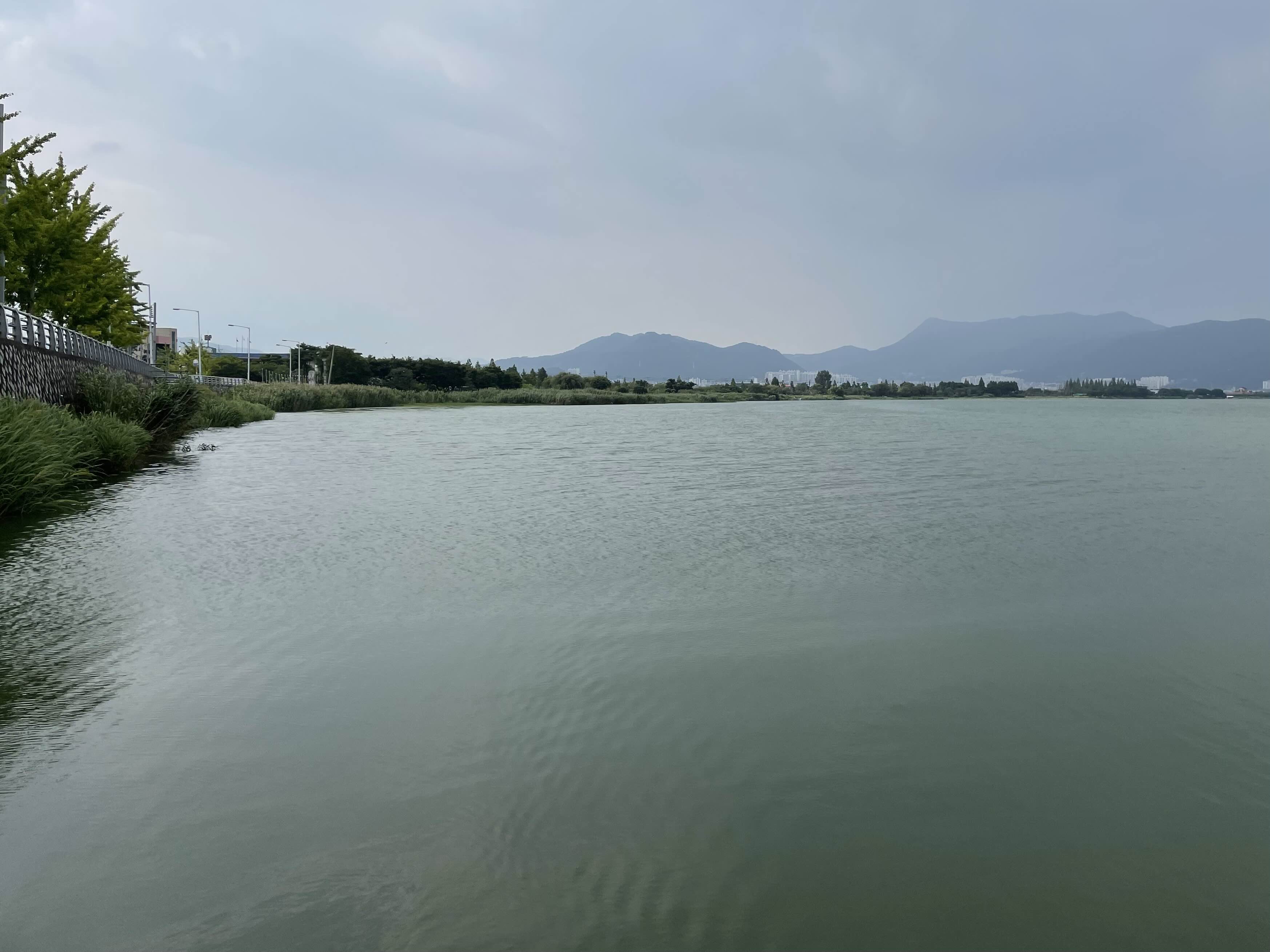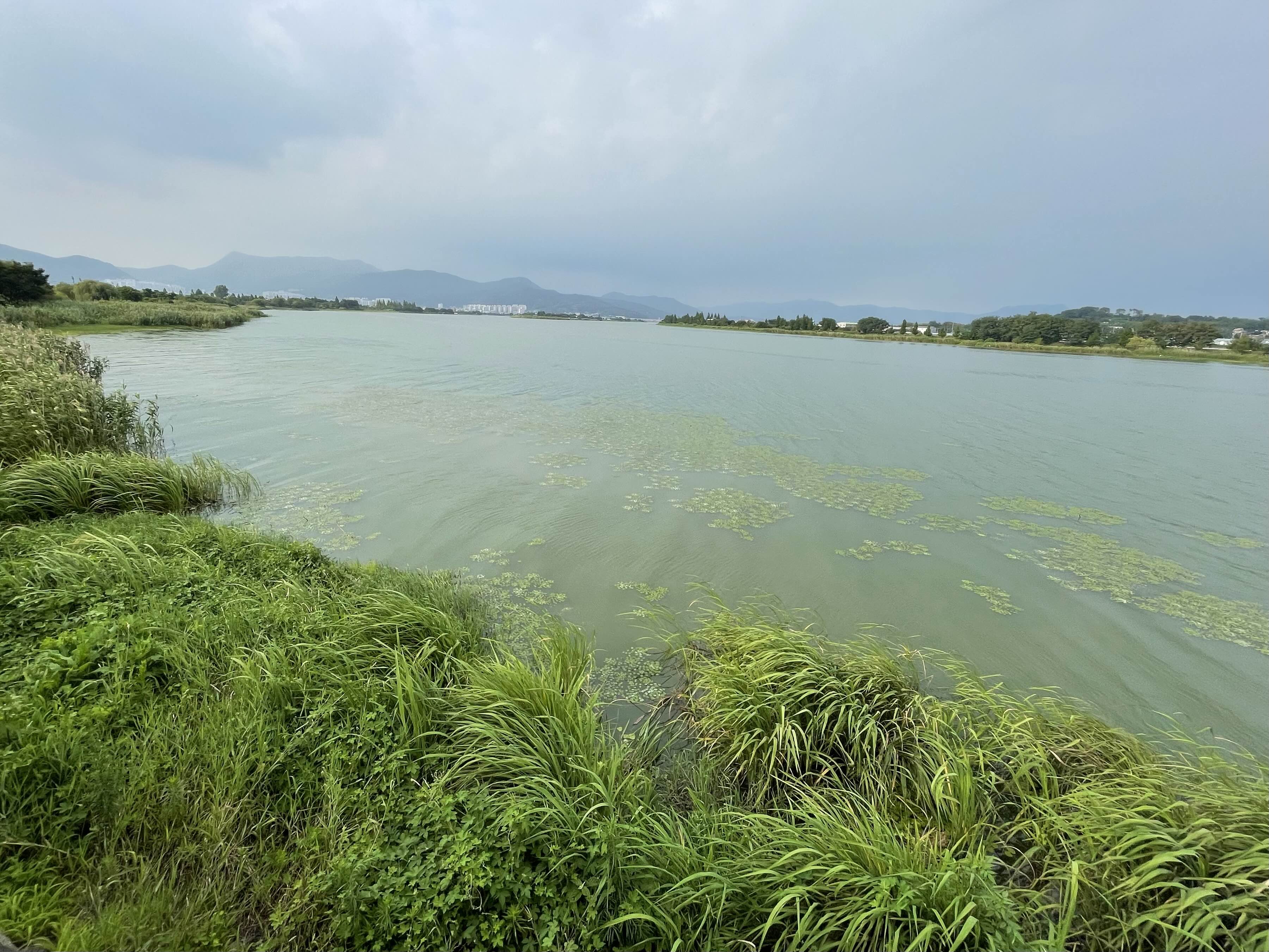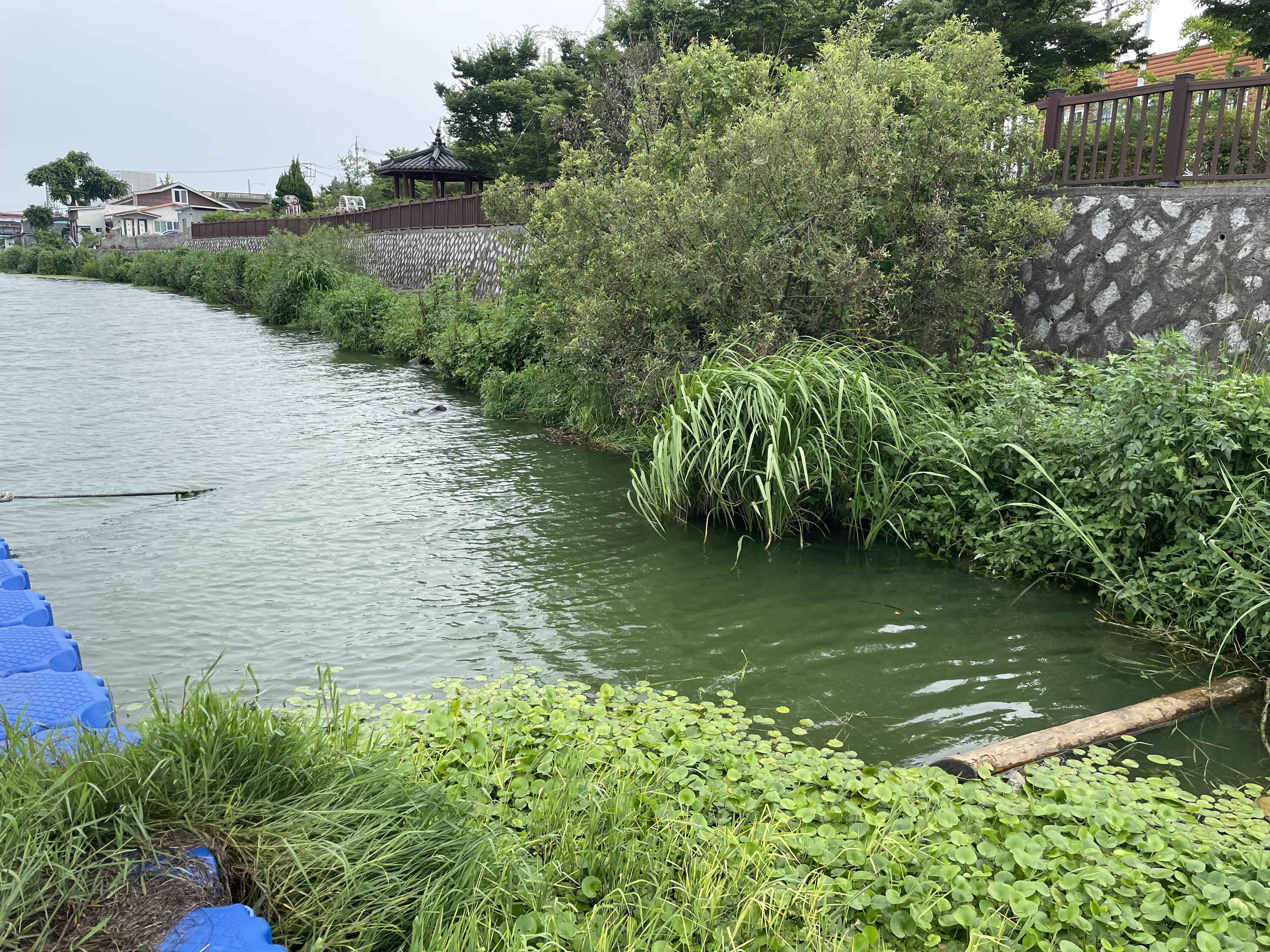 녹조가 좀 있긴 하지만 물색도 나쁘지 않고, 연안에는 돌무더기와 수초, 그리고 그 위로 드리워진 나무 그늘,