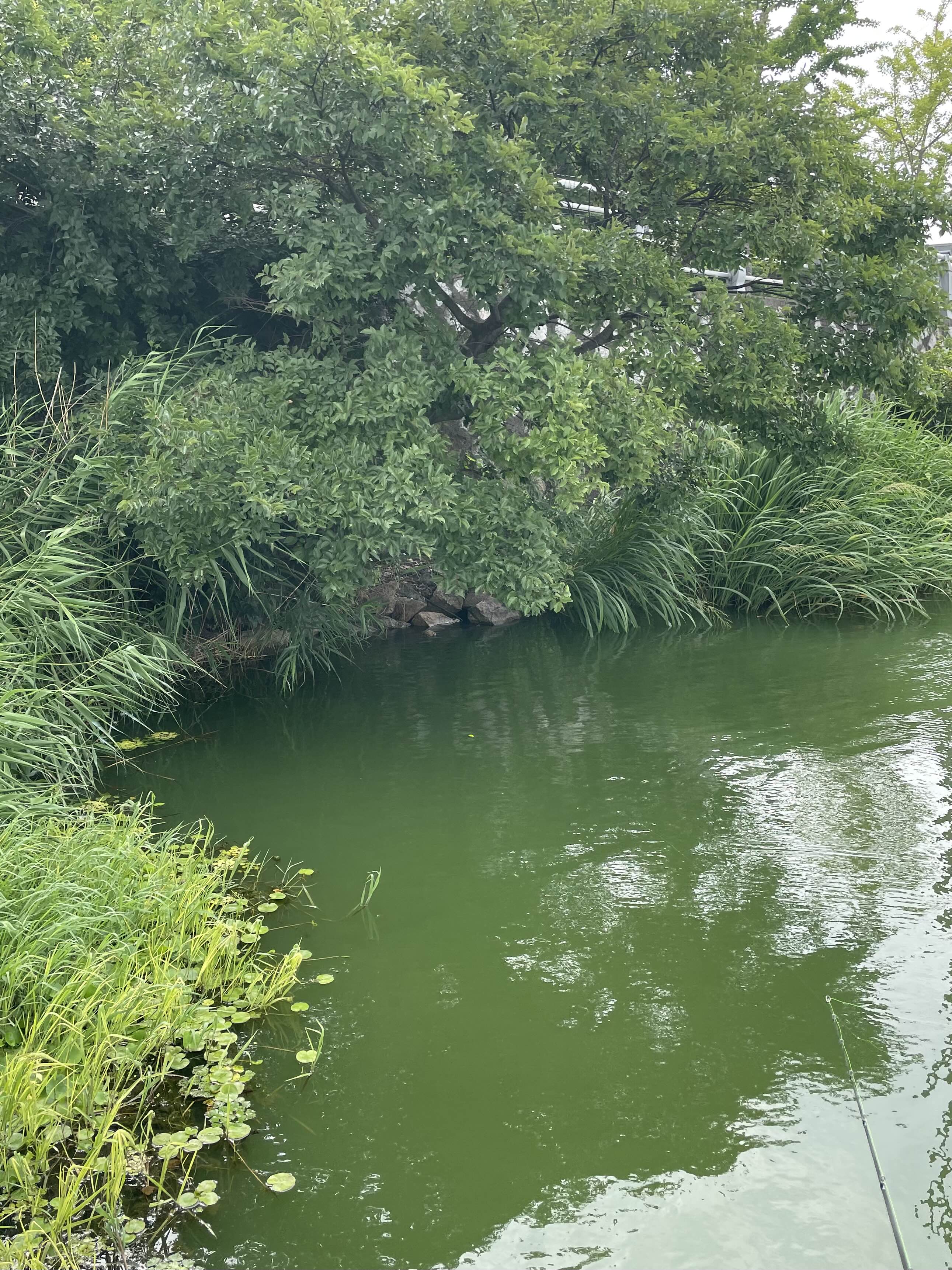 수초 아래에서 이따만한 잉어가 뻐끔뻐끔 거리길래 루어를 던져 봤지만, 쳐다도 안 보네요.