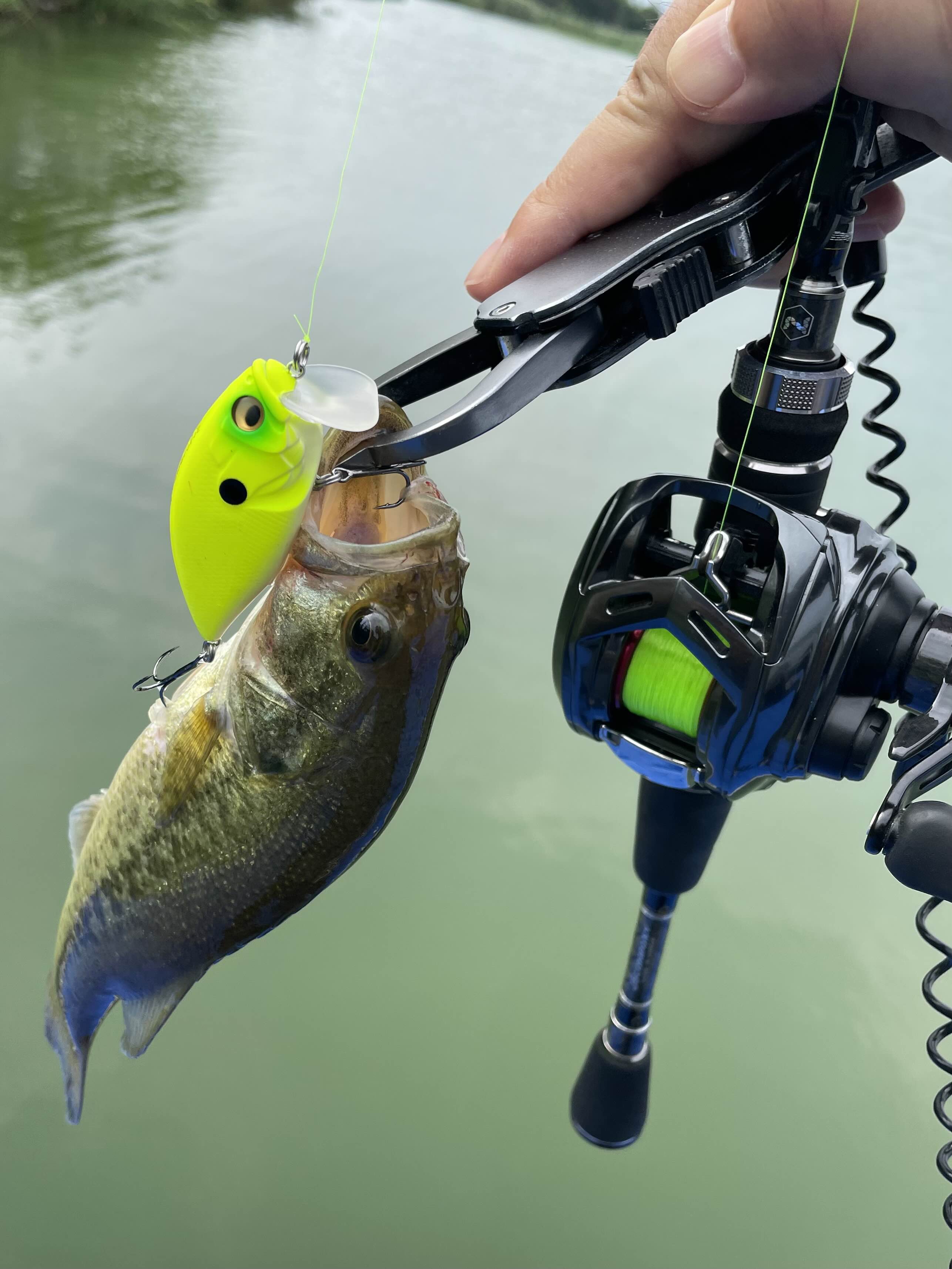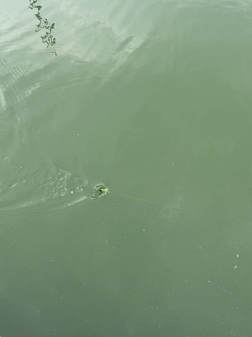 요 녀석은 저 멀리 수초 앞쪽에 캐스팅 후 감아들이는데 뒤따라 오면서 세 번을 공격하더니 결국 루어를 덮치는데 성공하네요.