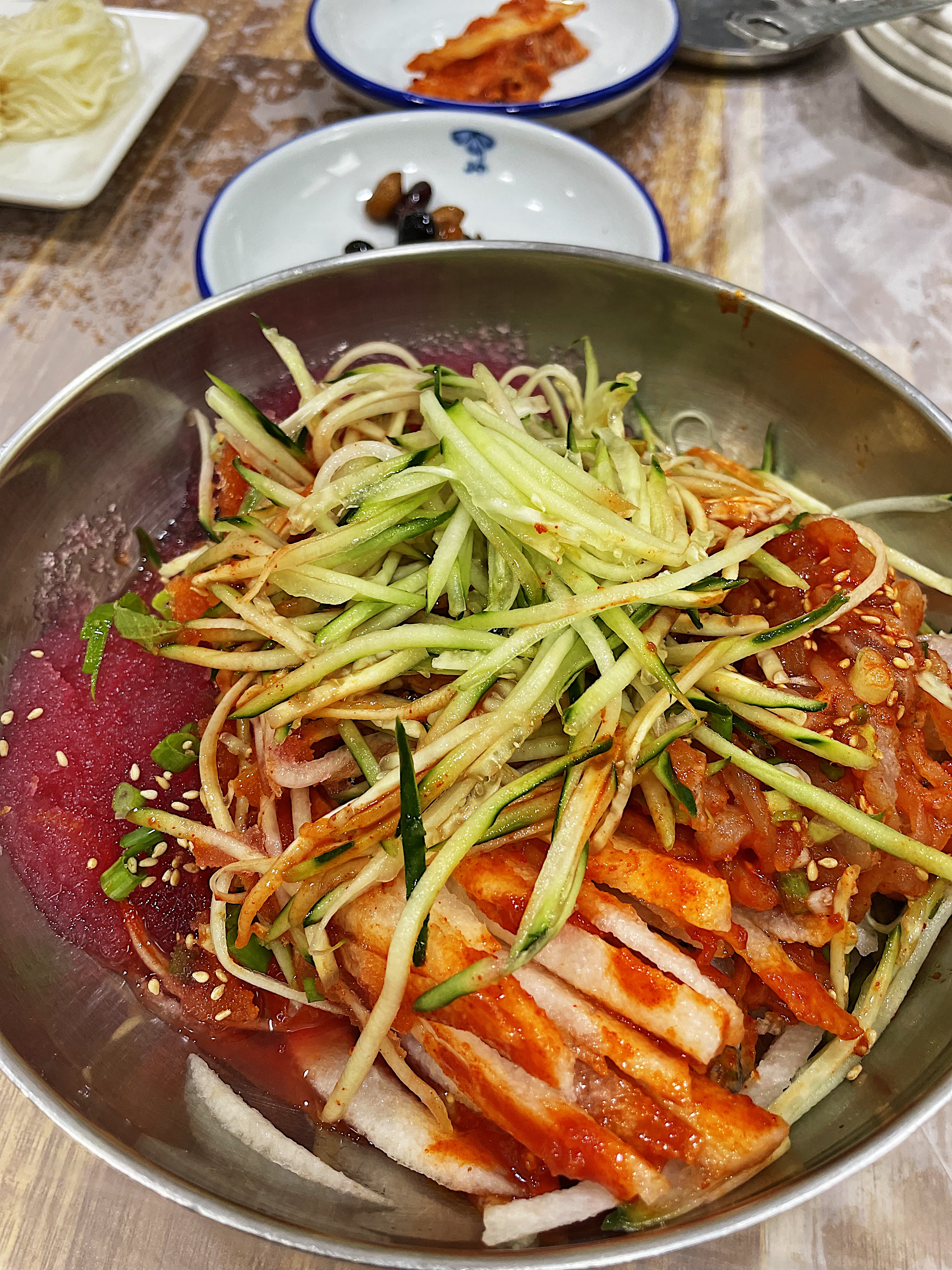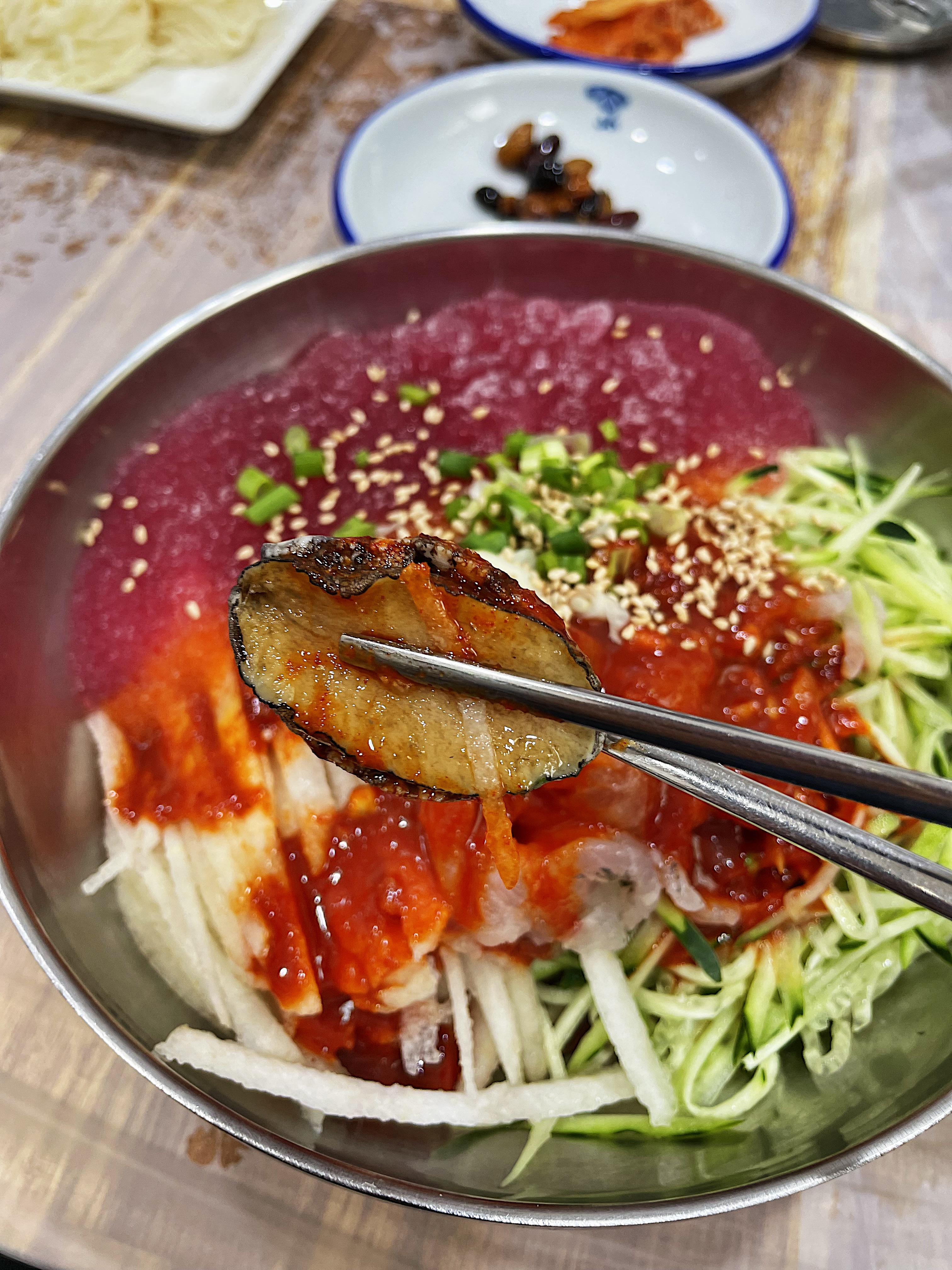 물회에 비트가 들어가는 건 처음 보는데 색도 예쁘고 독특하네요.