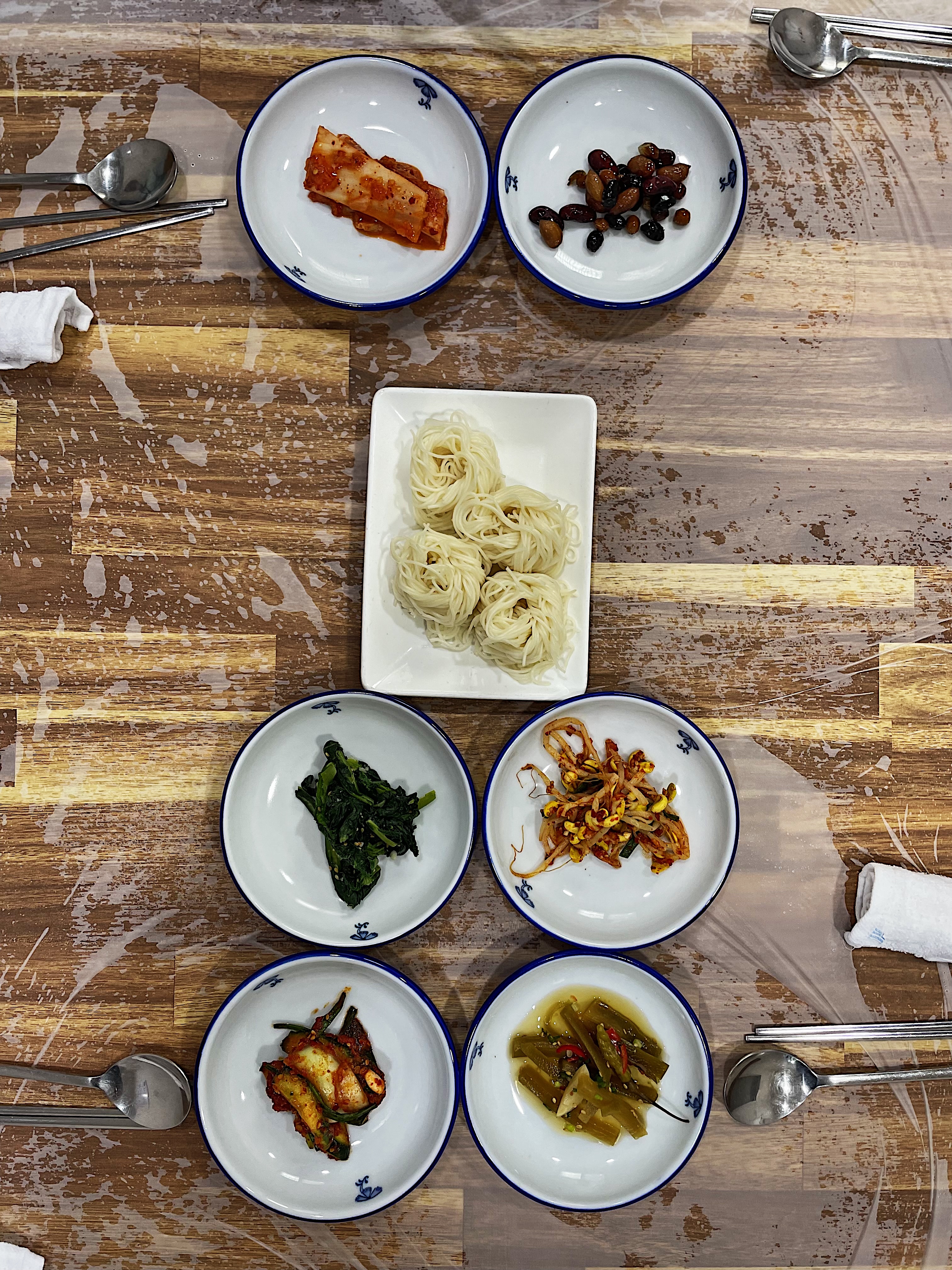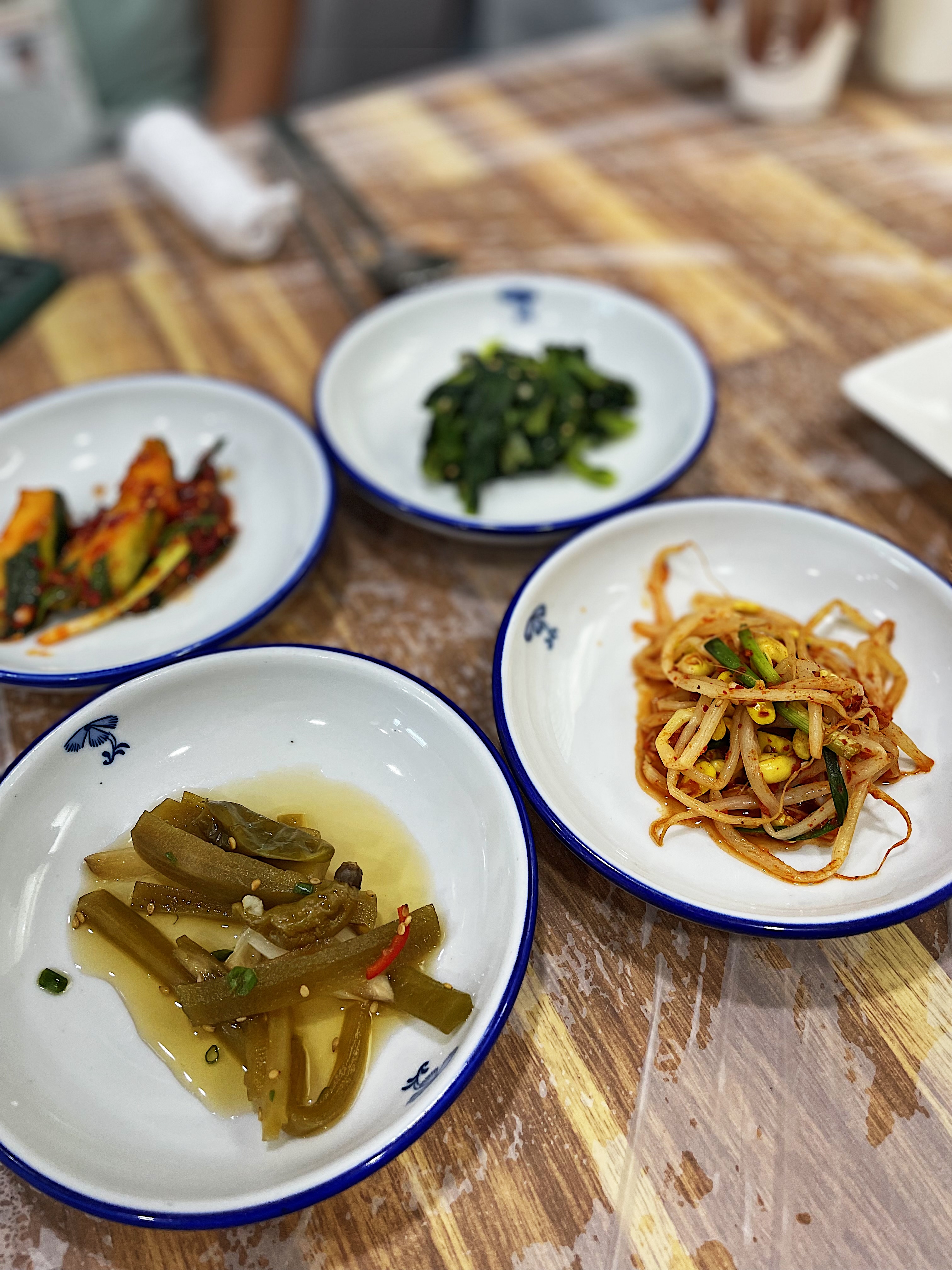 콩나물 무침, 오이무침, 땅콩조림 등 딱히 특색 있는 반찬은 보이지 않습니다.