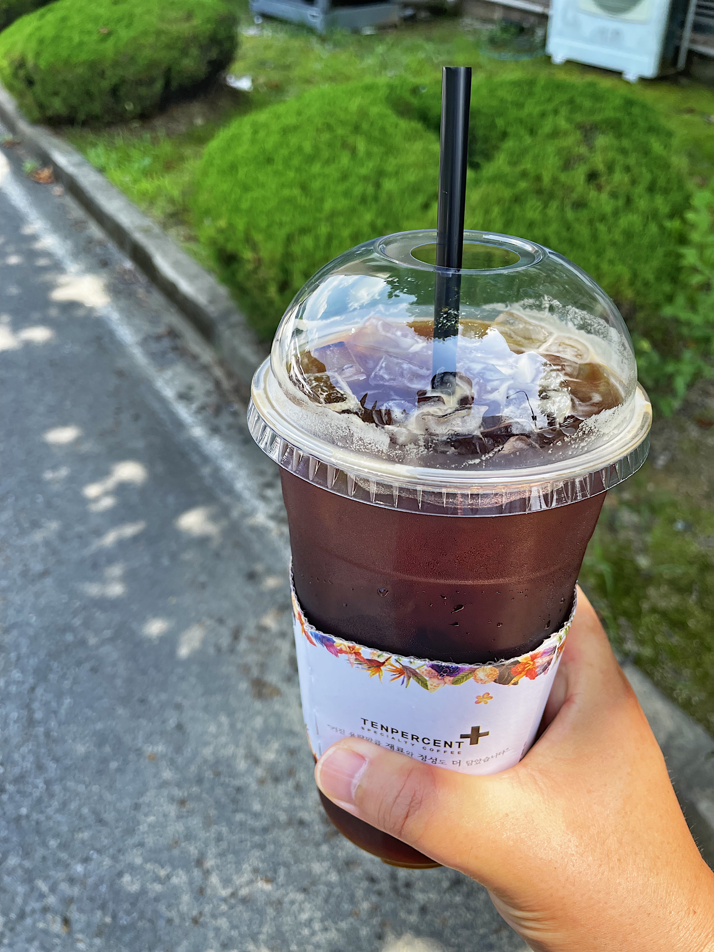 저는 "텐 퍼센트" 커피에서 아이스 아메리카노 곱빼기로 들고 나왔는데 양이 어마어마합니다.