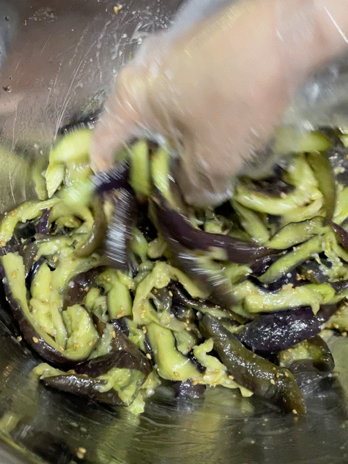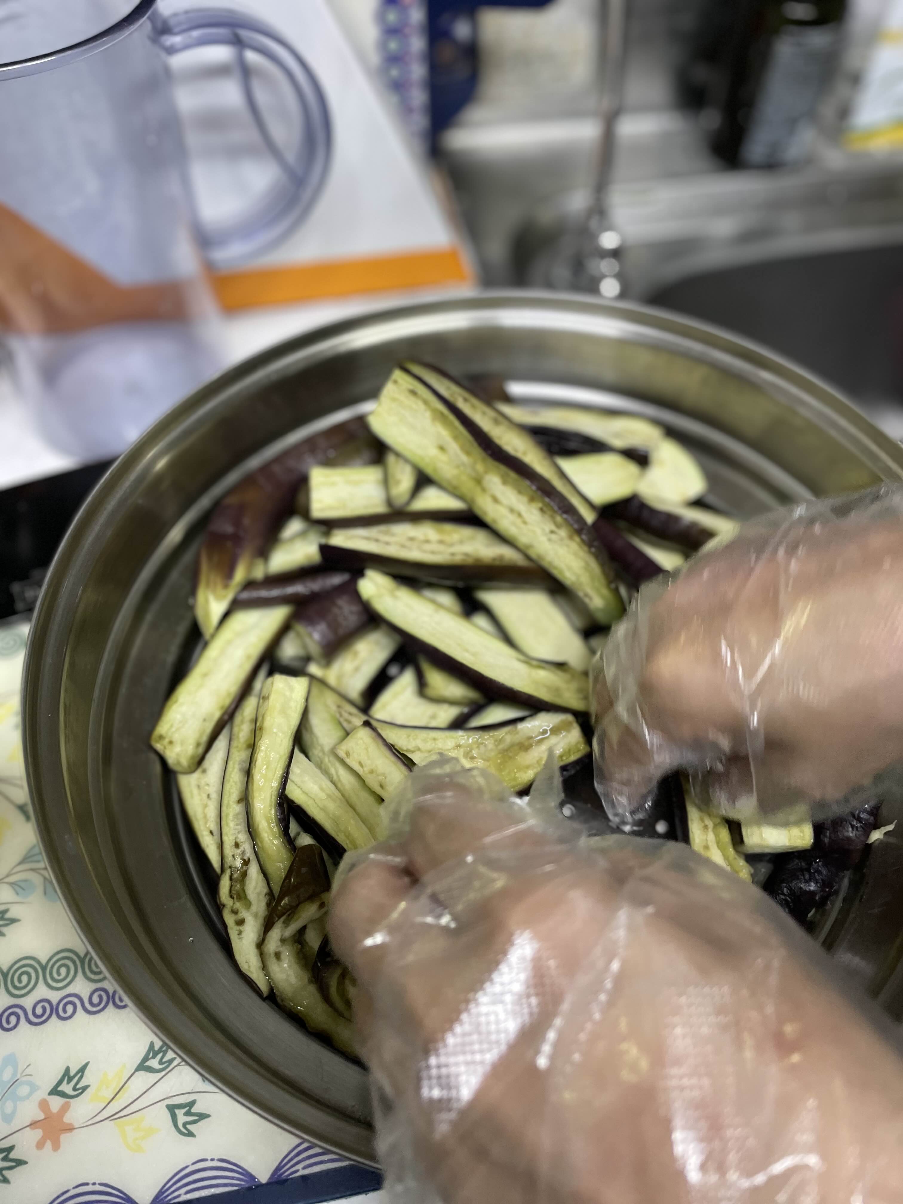뜨거운 가지는 한 김 식혀준 다음 먹기 좋은 크기로 한 번 더 찢어 줍니다.