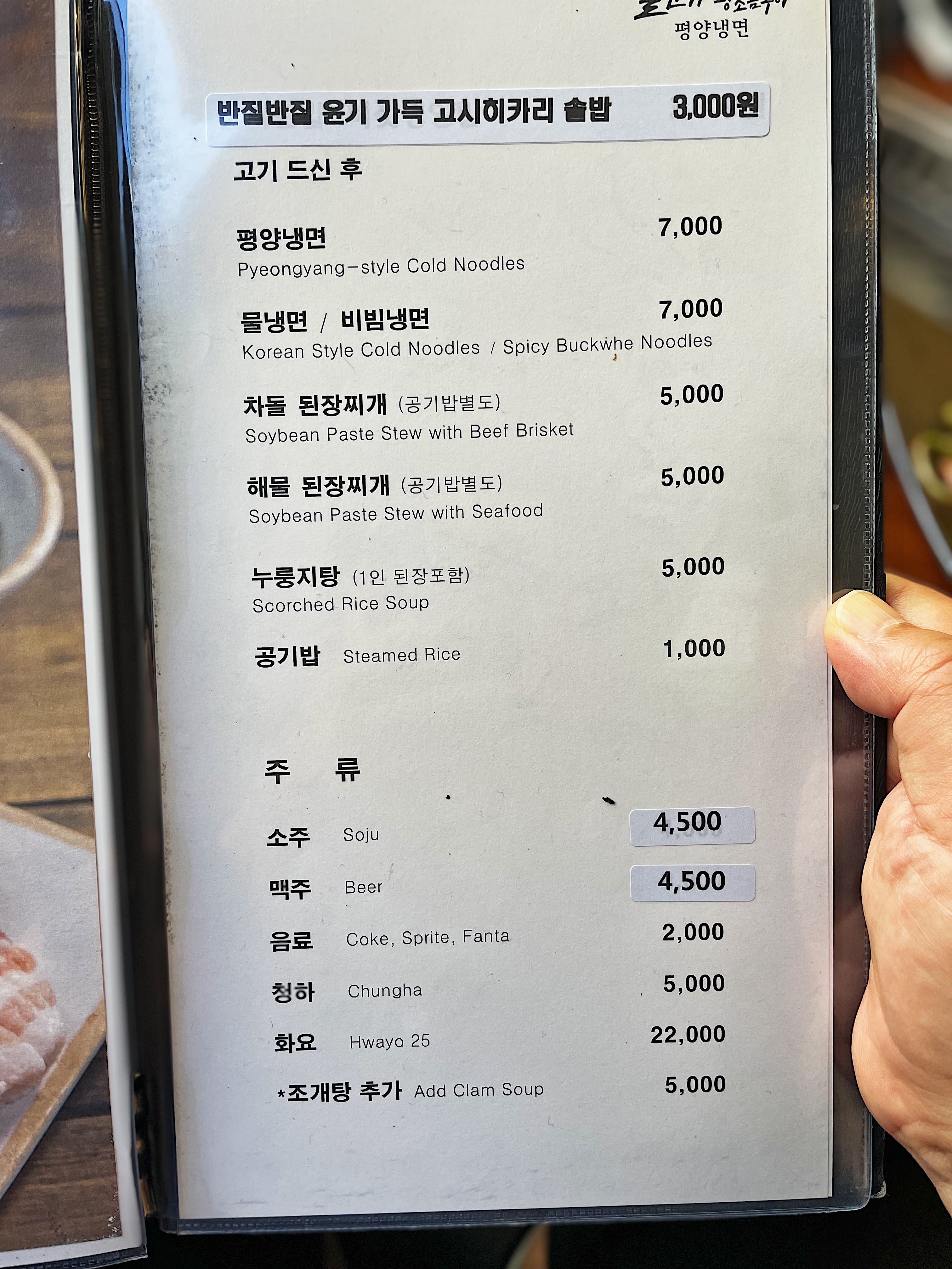 후식으로 냉면, 된장찌개, 누룽지탕, 솥밥도 있습니다.