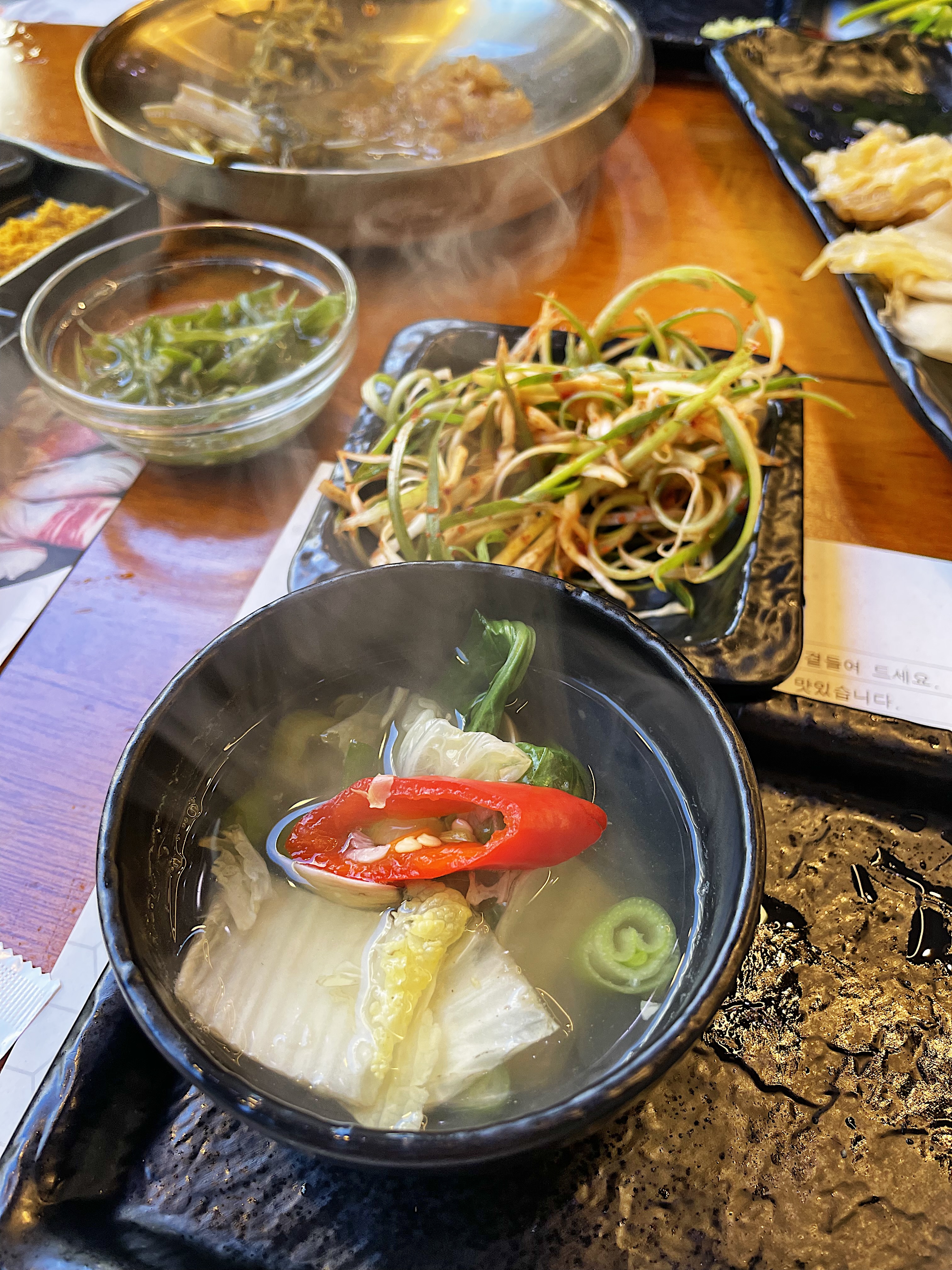식전에 갖다 주신 조개탕이 아주 시원 칼칼해서 좋았어요.